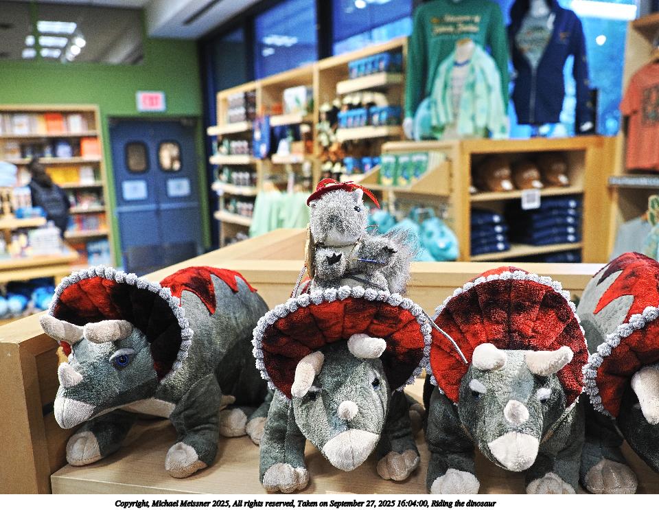 Picture #10: Squirrels and dinosaurs Thumb: 480x360, 59,095 bytes (58K) Small: 960x743, 160,807 bytes (158K), (html file) Copyright, Michael Meissner 2025, All rights reserved OM OM1 camera with Olympus-m43 12-40mm f/2.8 lens f/2.8, ISO 2000, 1/60 sec, 17.0mm, auto mode, vivid color, matrix metering, IS Auto, anti-shock 35mm equivalent focal length 34.0mm Programs used: crop, raw therapee Taken by Michael Meissner on September 27, 2025 16:11:00 Last modified on September 28, 2025 at 03:12 |