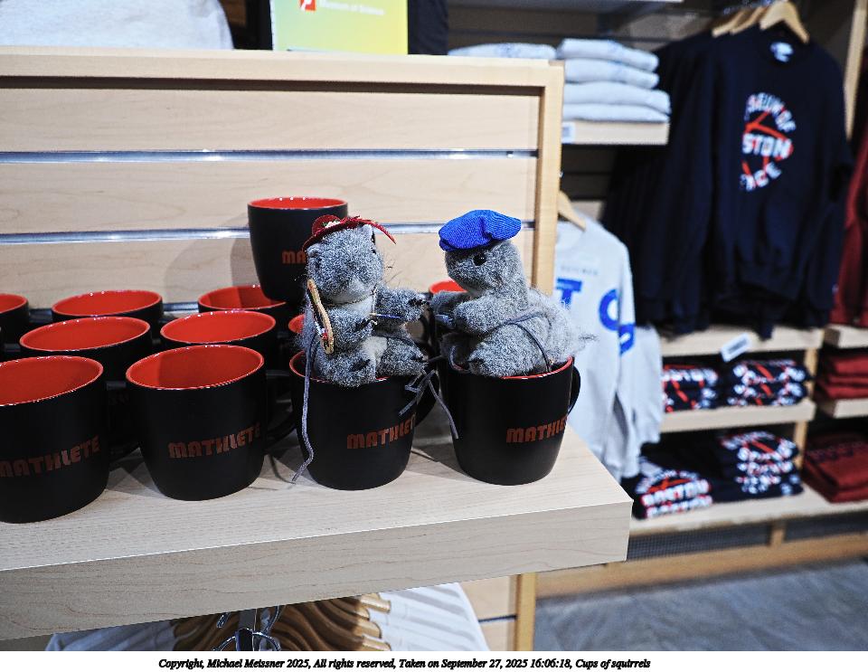 Picture #6: Cups of squirrels Thumb: 480x360, 53,433 bytes (53K) Small: 960x743, 125,886 bytes (123K), (html file) Copyright, Michael Meissner 2025, All rights reserved OM OM1 camera with Olympus-m43 12-40mm f/2.8 lens f/2.8, ISO 250, 1/60 sec, 12.0mm, auto mode, vivid color, matrix metering, IS Auto, anti-shock 35mm equivalent focal length 24.0mm Programs used: crop, raw therapee Taken by Michael Meissner on September 27, 2025 16:06:18 Last modified on September 28, 2025 at 03:11 |