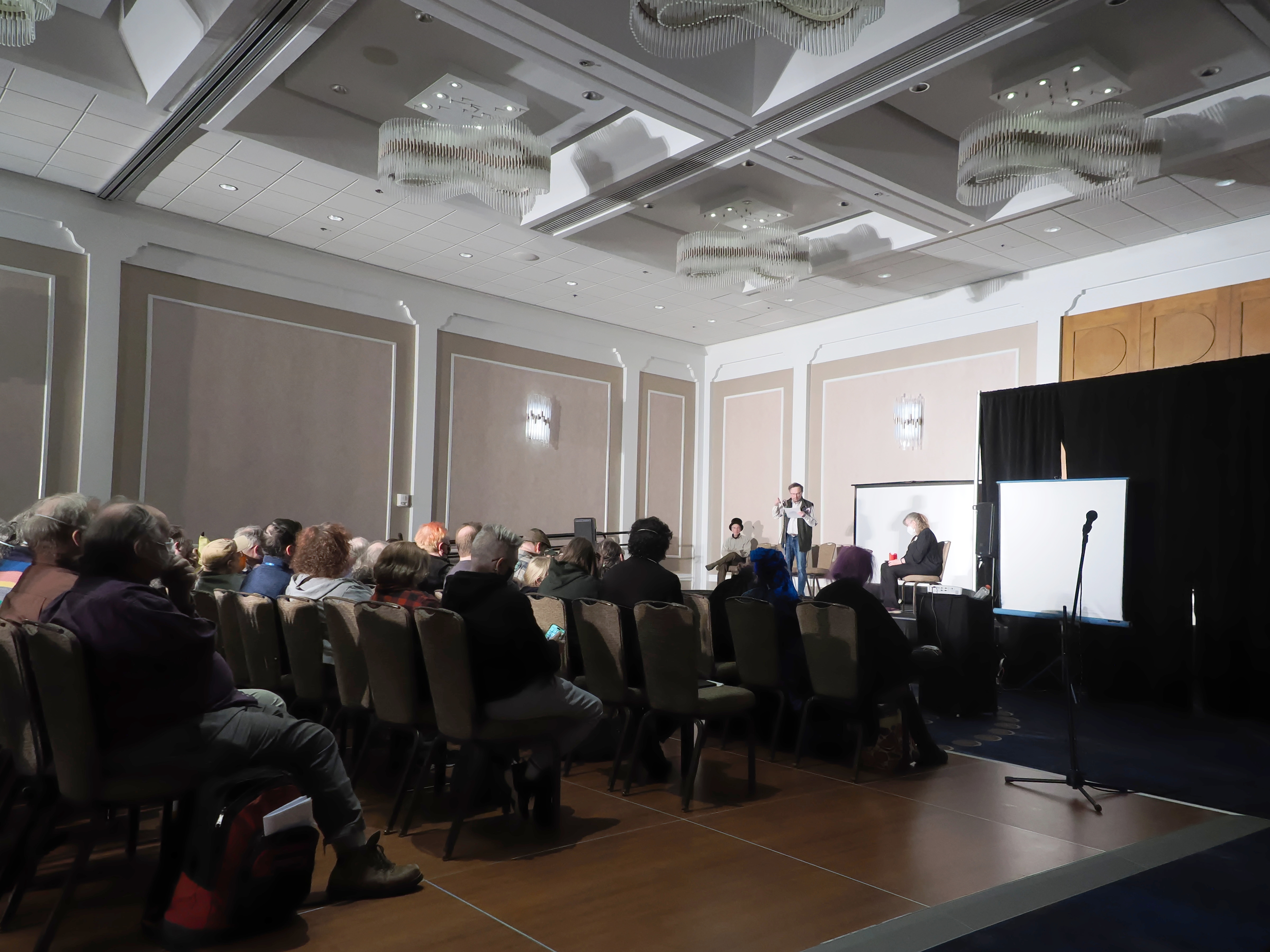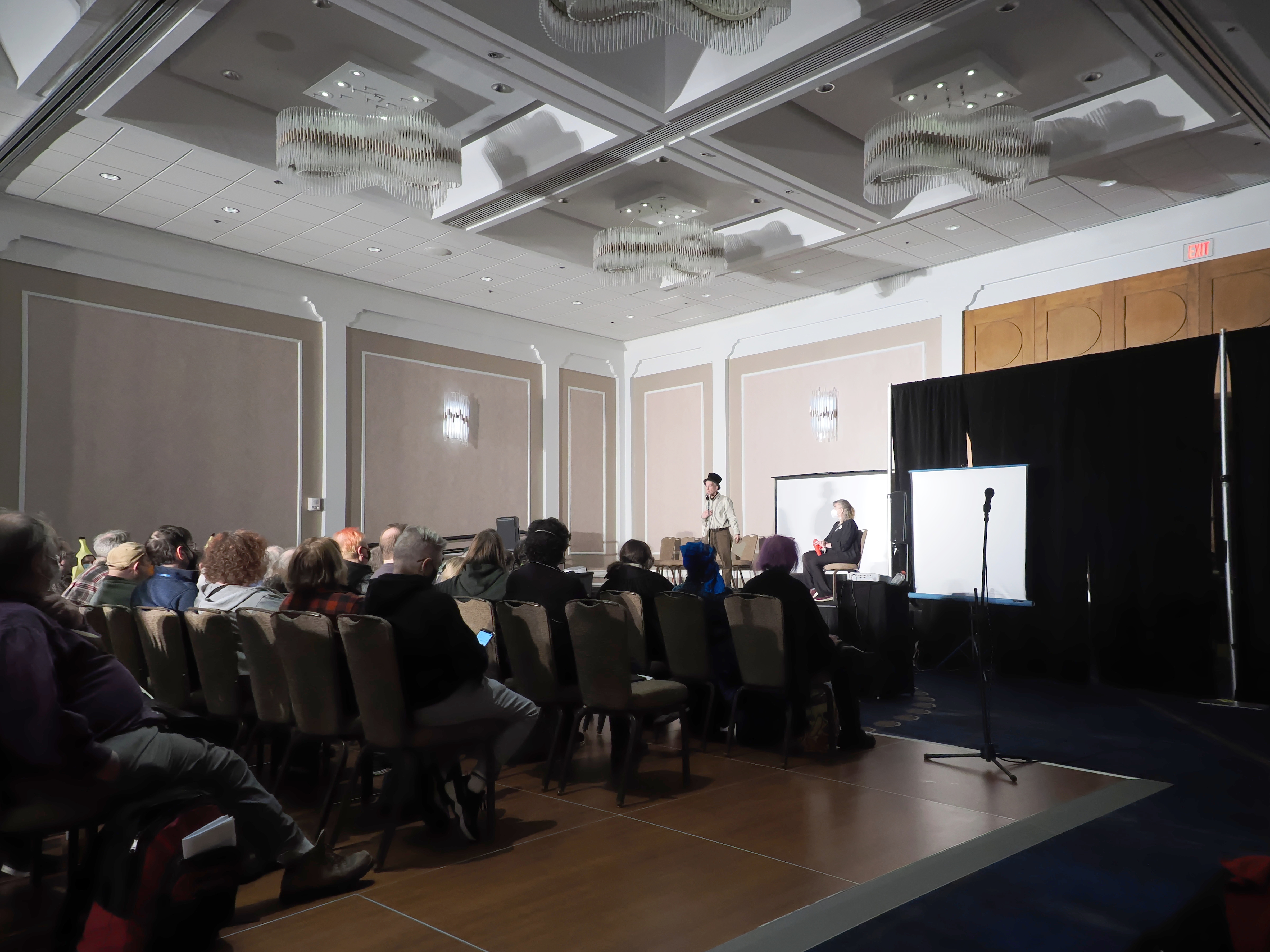 Picture #7: Dramatic readings from the Ig Nobel prizes #4 Thumb: 480x360, 45,780 bytes (45K) Small: 960x743, 129,925 bytes (127K), (html file) Large: 4800x3600, 4,591,961 bytes (4.4M), (html file) Copyright, Michael Meissner 2026, All rights reserved OM OM1 camera with Olympus-m43 12-40mm f/2.8 lens f/2.8, ISO 1250, 1/125 sec, 35.0mm, auto mode, vivid color, matrix metering, digital zoom x2, IS Auto, face detection, anti-shock 35mm equivalent focal length 140.0mm, digital zoom x2 Programs used: crop, raw therapee Taken by Michael Meissner on January 17, 2026 15:19:51 Last modified on January 25, 2026 at 02:36 |