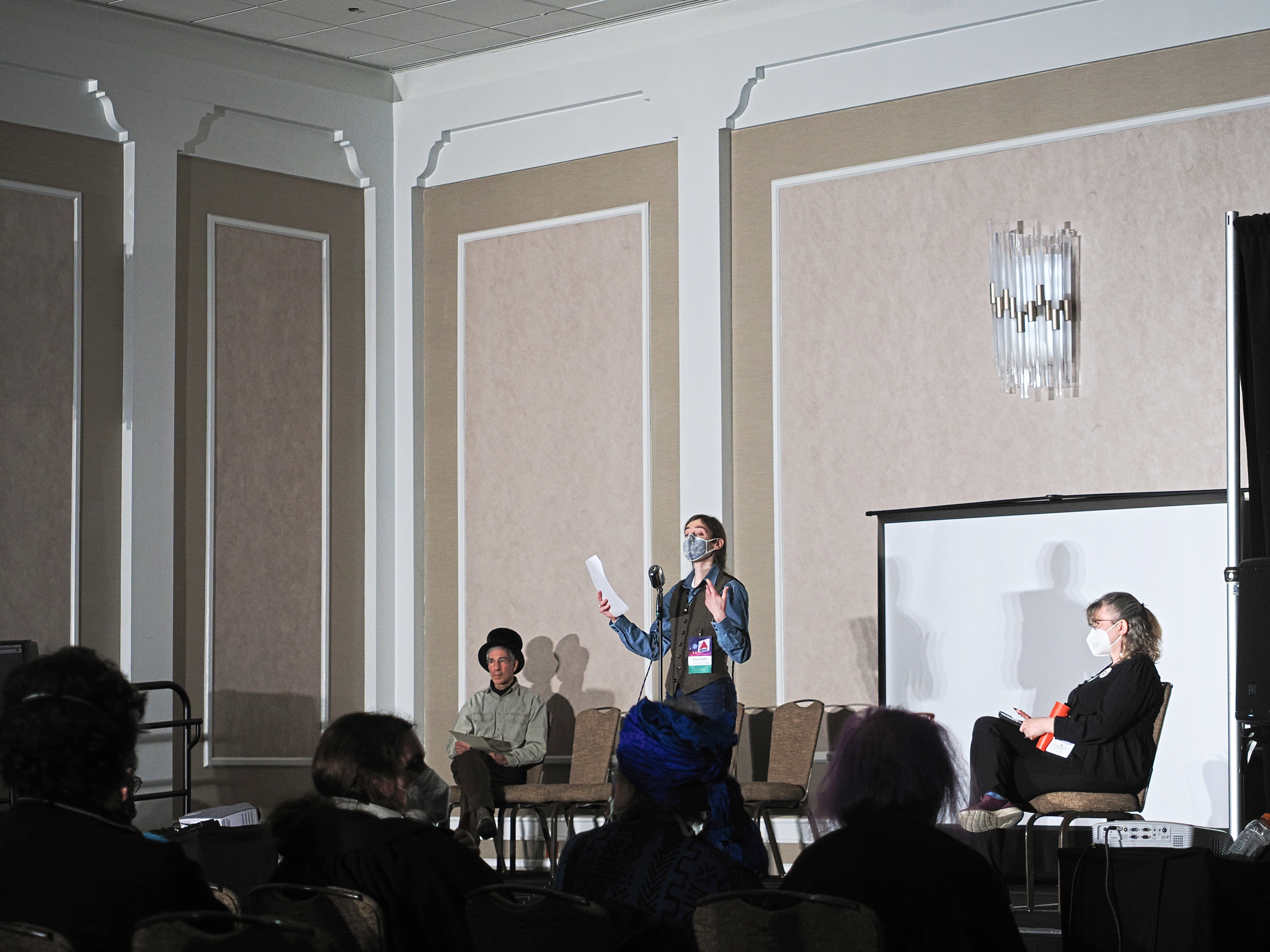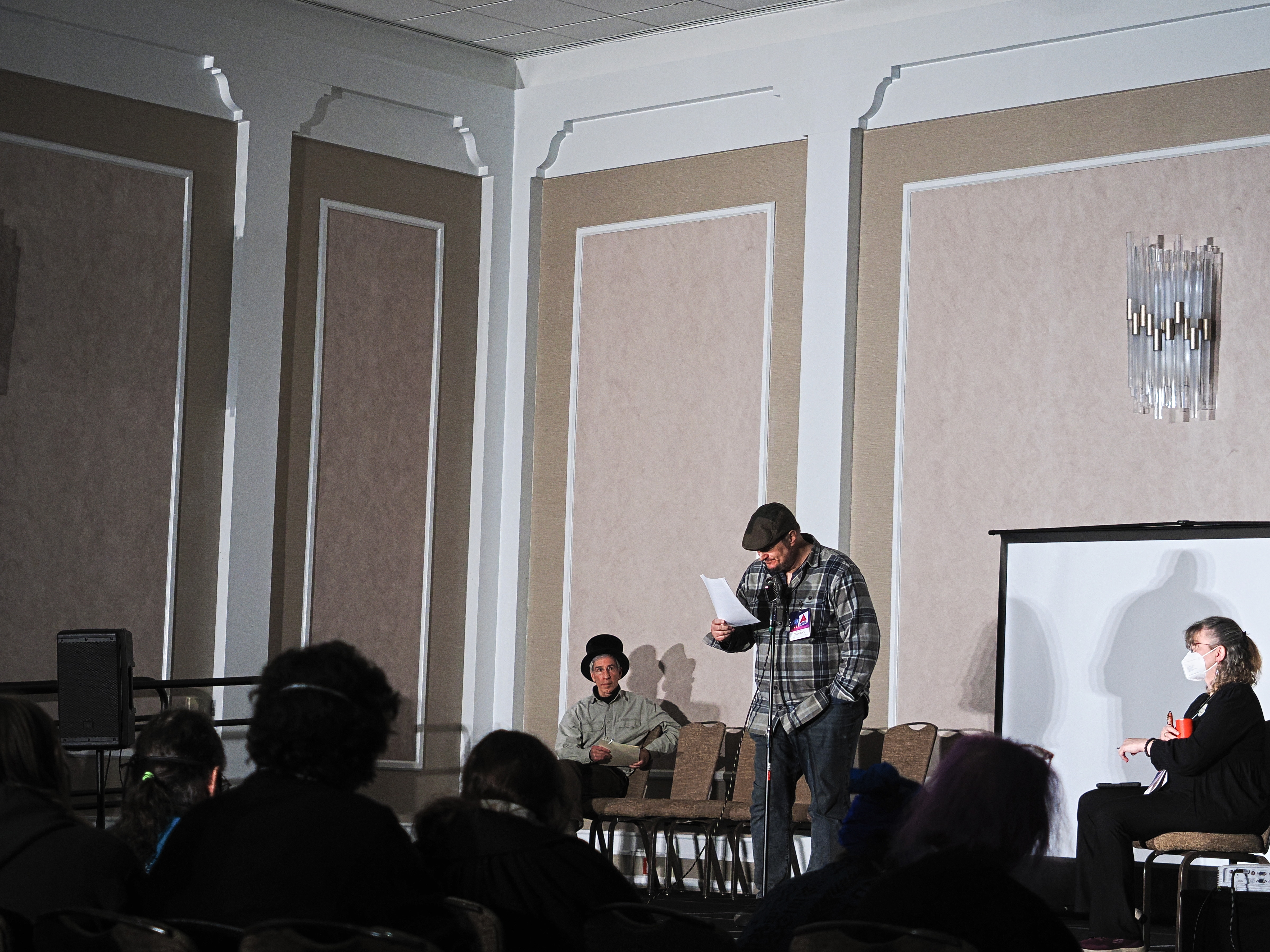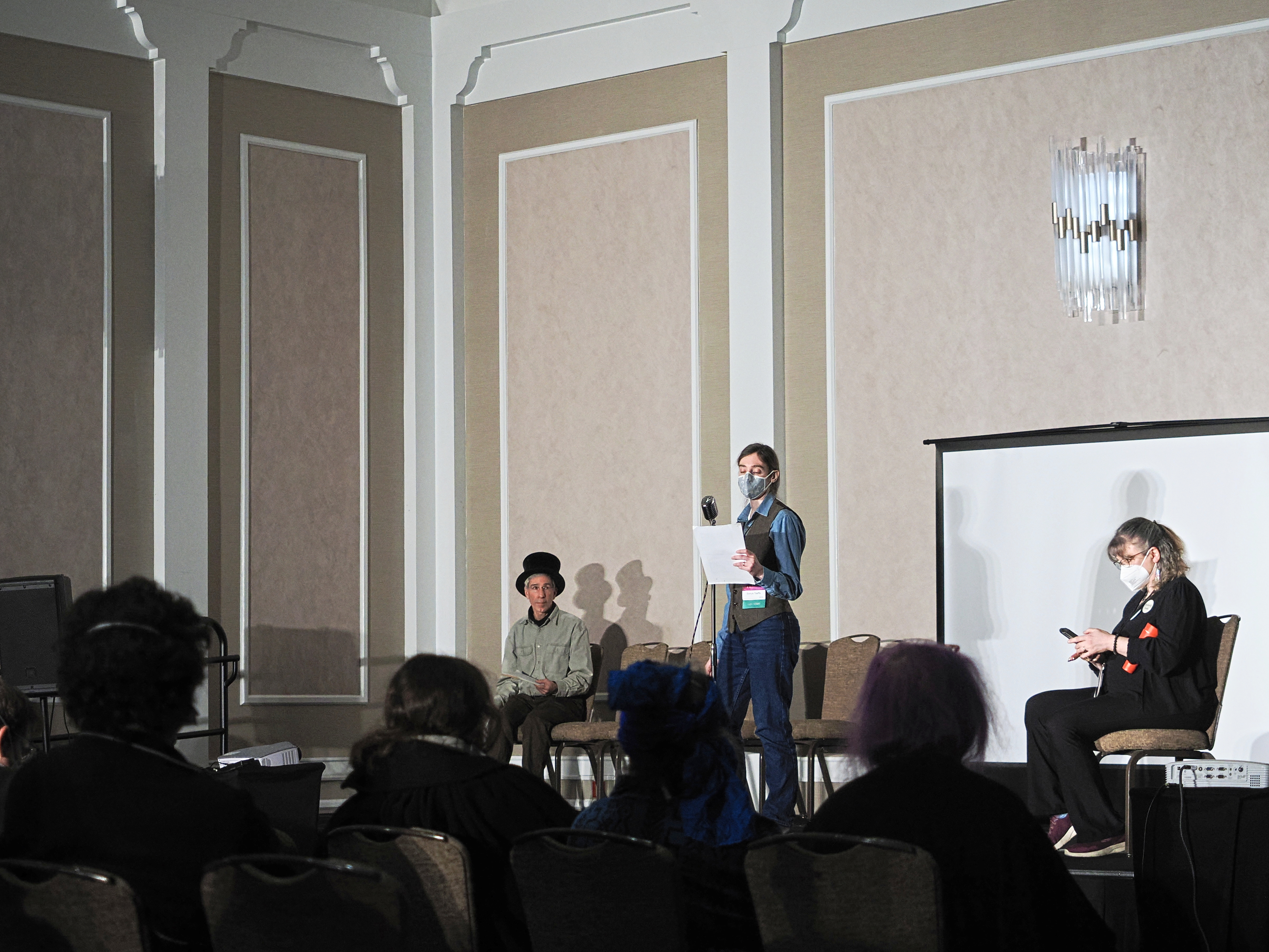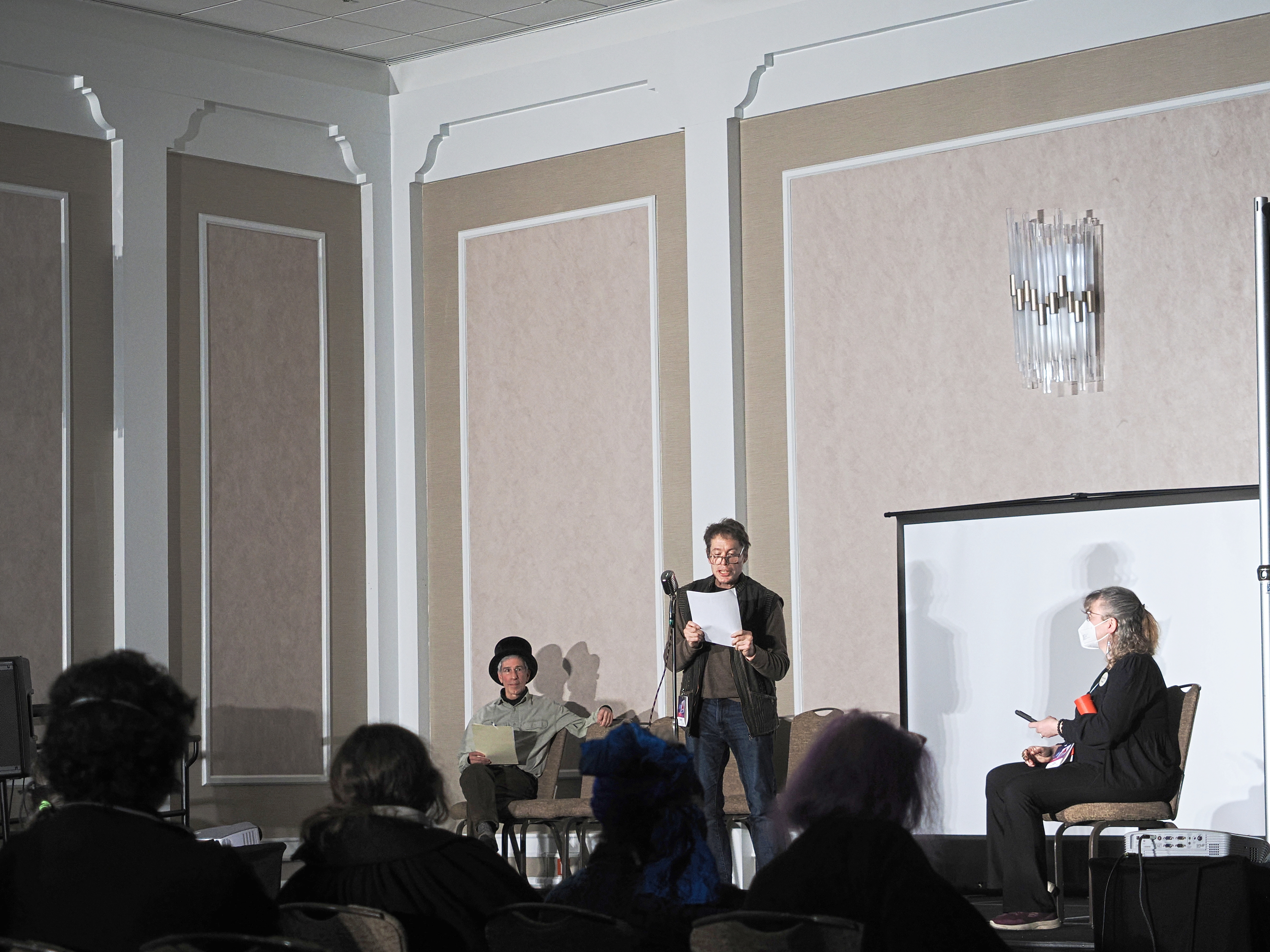 Picture #2: Dramatic readings from the Ig Nobel prizes #2 Thumb: 480x360, 46,202 bytes (46K) Small: 960x743, 121,819 bytes (119K), (html file) Large: 4800x3600, 9,146,648 bytes (8.7M), (html file) Copyright, Michael Meissner 2026, All rights reserved OM OM1 camera with Olympus-m43 12-40mm f/2.8 lens f/2.8, ISO 1600, 1/125 sec, 40.0mm, auto mode, vivid color, matrix metering, IS Auto, face detection, anti-shock 35mm equivalent focal length 80.0mm Programs used: crop, gimp, raw therapee Taken by Michael Meissner on January 17, 2026 15:15:17 Last modified on January 25, 2026 at 02:32 |
