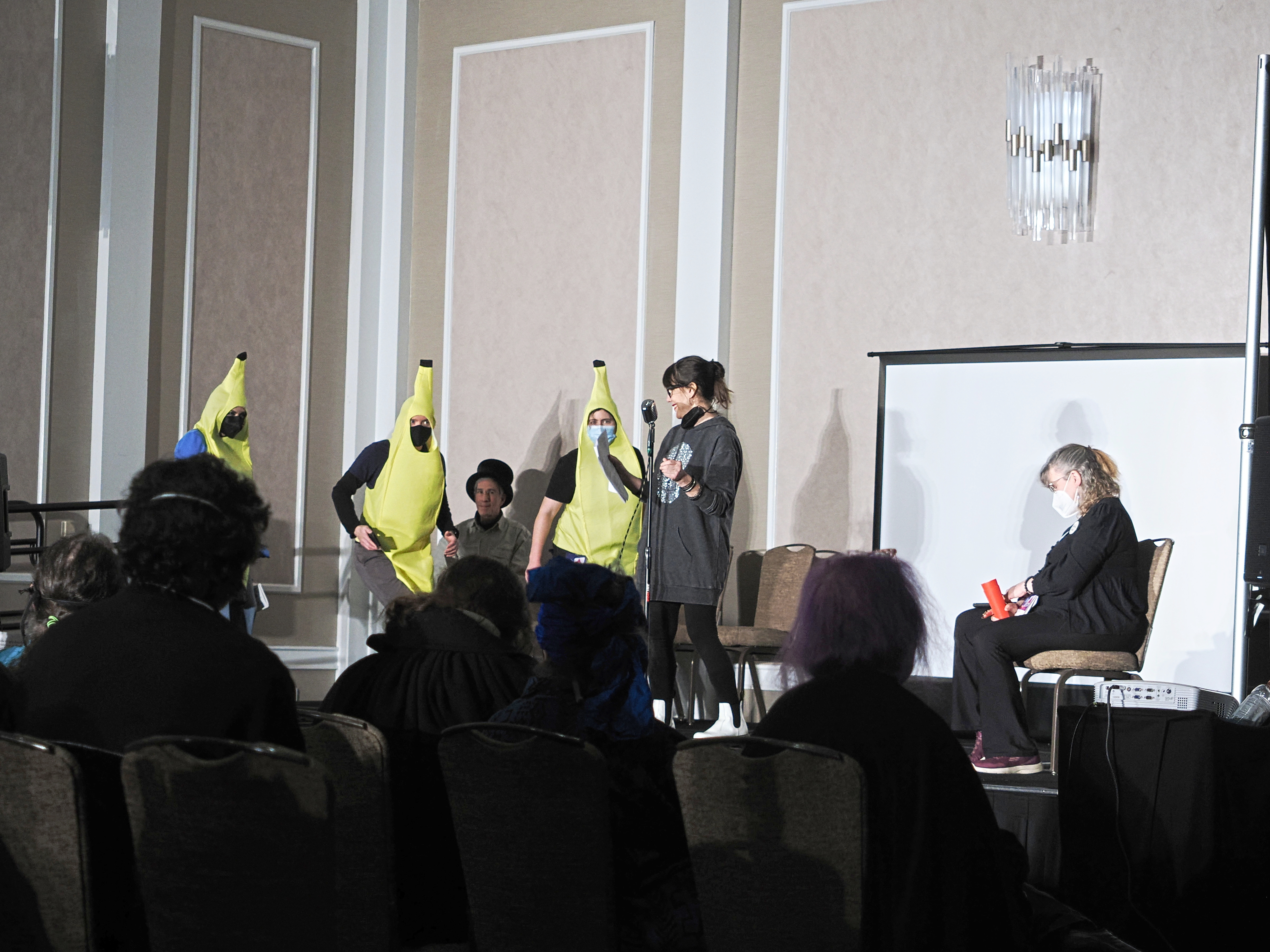 Picture #9: Dramatic readings from the Ig Nobel prizes #6 Thumb: 480x360, 48,966 bytes (48K) Small: 960x743, 113,750 bytes (112K), (html file) Large: 4800x3600, 5,140,773 bytes (4.9M), (html file) Copyright, Michael Meissner 2026, All rights reserved OM OM1 camera with Olympus-m43 12-40mm f/2.8 lens f/2.8, ISO 4000, 1/125 sec, 12.0mm, auto mode, vivid color, matrix metering, IS Auto, face detection, anti-shock 35mm equivalent focal length 24.0mm Programs used: crop, gimp, raw therapee Taken by Michael Meissner on January 17, 2026 15:20:39 Last modified on January 25, 2026 at 02:37 |