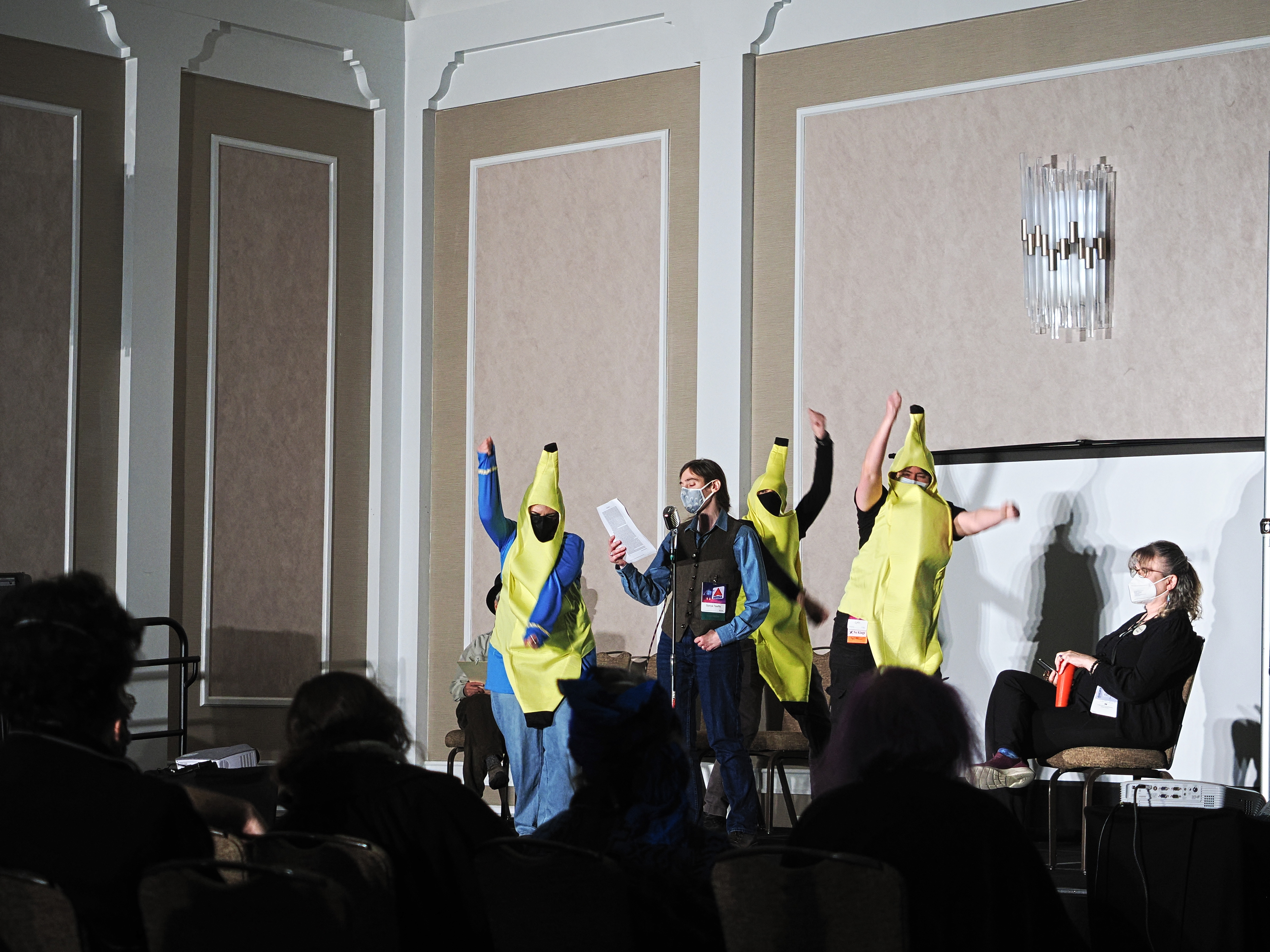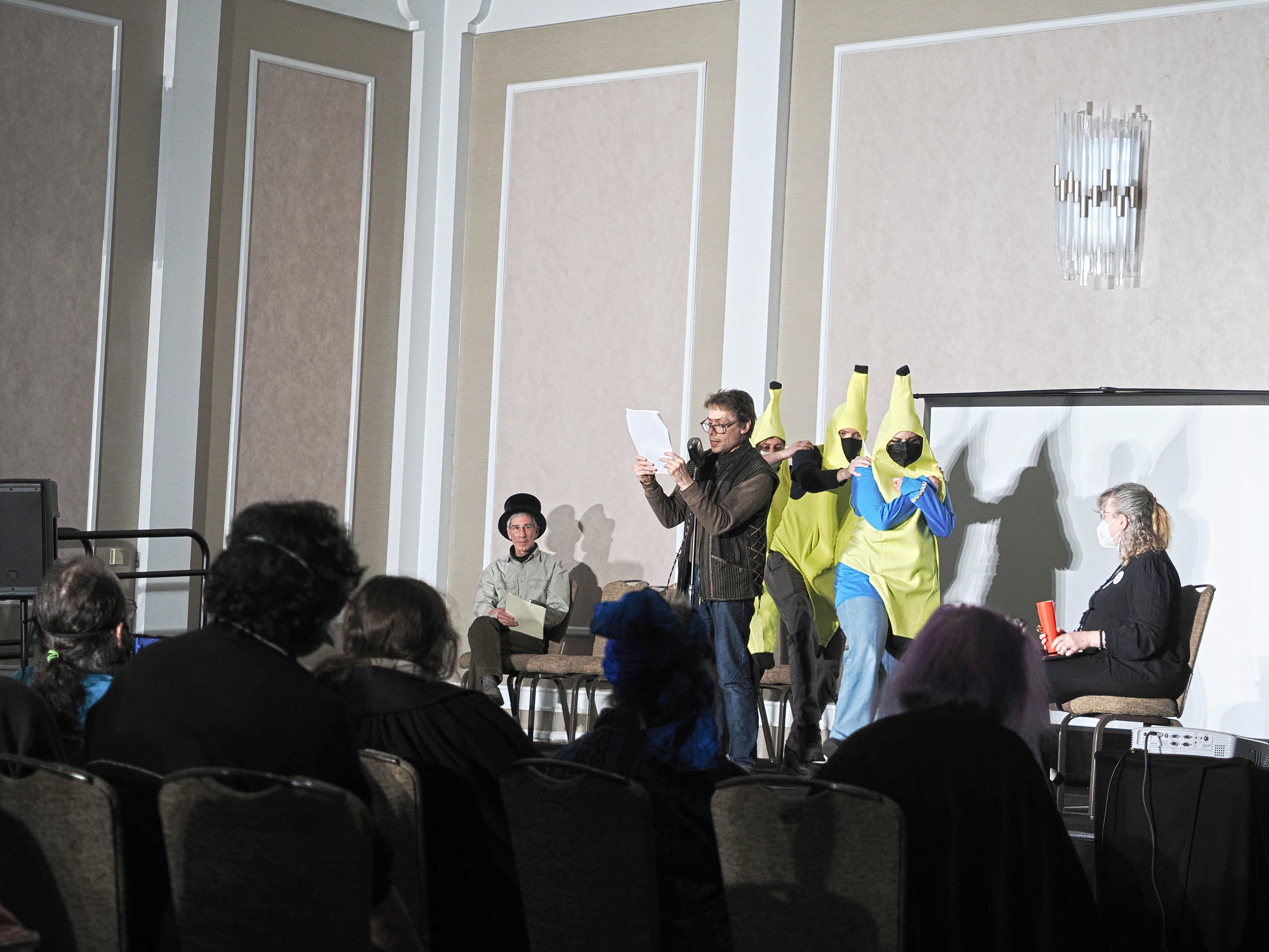 Picture #10: Dramatic readings from the Ig Nobel prizes #7 Thumb: 480x360, 48,172 bytes (48K) Small: 960x743, 131,737 bytes (129K), (html file) Large: 4800x3600, 9,456,213 bytes (9.0M), (html file) Copyright, Michael Meissner 2026, All rights reserved OM OM1 camera with Olympus-m43 12-40mm f/2.8 lens f/2.8, ISO 2000, 1/125 sec, 40.0mm, auto mode, vivid color, matrix metering, IS Auto, face detection, anti-shock 35mm equivalent focal length 80.0mm Programs used: crop, gimp, raw therapee Taken by Michael Meissner on January 17, 2026 15:22:30 Last modified on January 25, 2026 at 02:39 |