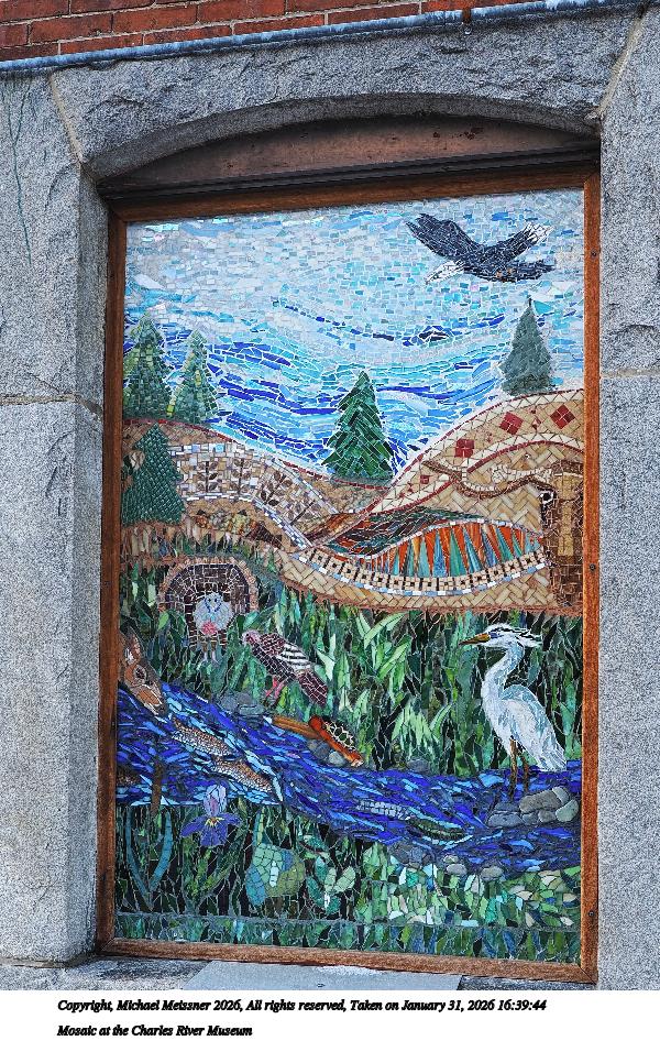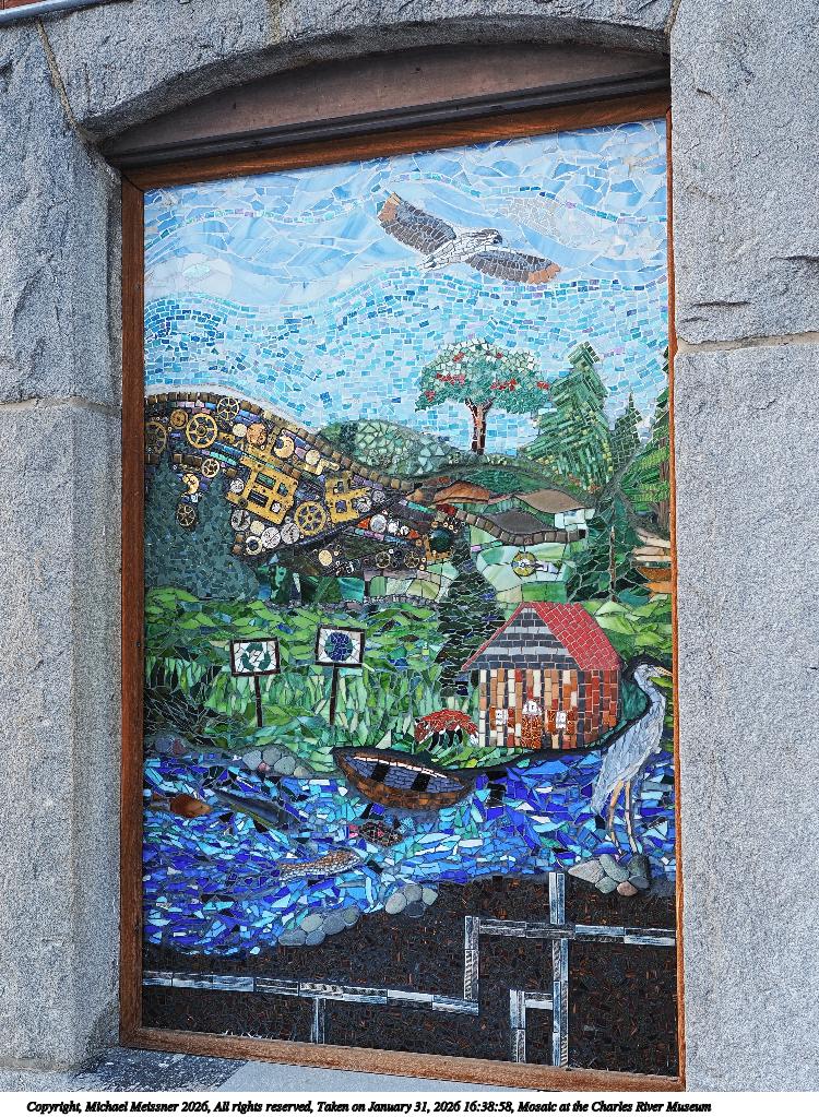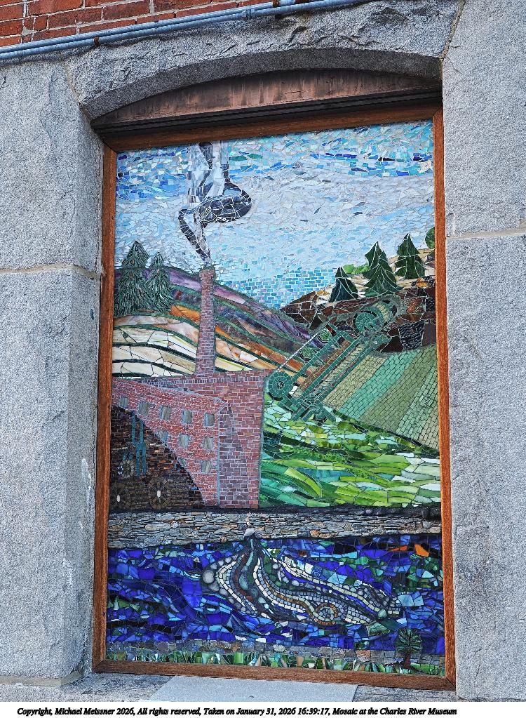 Picture #8: Mosaic at the Charles River Museum #2 750x1023, 319,312 bytes (312K), (html file) Copyright, Michael Meissner 2026, All rights reserved OM OM3 camera with Olympus-m43 12-40mm f/2.8 lens f/3.2, ISO 200, 1/80 sec, 15.0mm, auto mode, vivid color, matrix metering, bias 0.3, IS Auto, face detection, anti-shock 35mm equivalent focal length 30.0mm Programs used: crop, gimp, raw therapee, rotate left Taken by Michael Meissner on January 31, 2026 16:39:17 Last modified on February 01, 2026 at 14:11 |