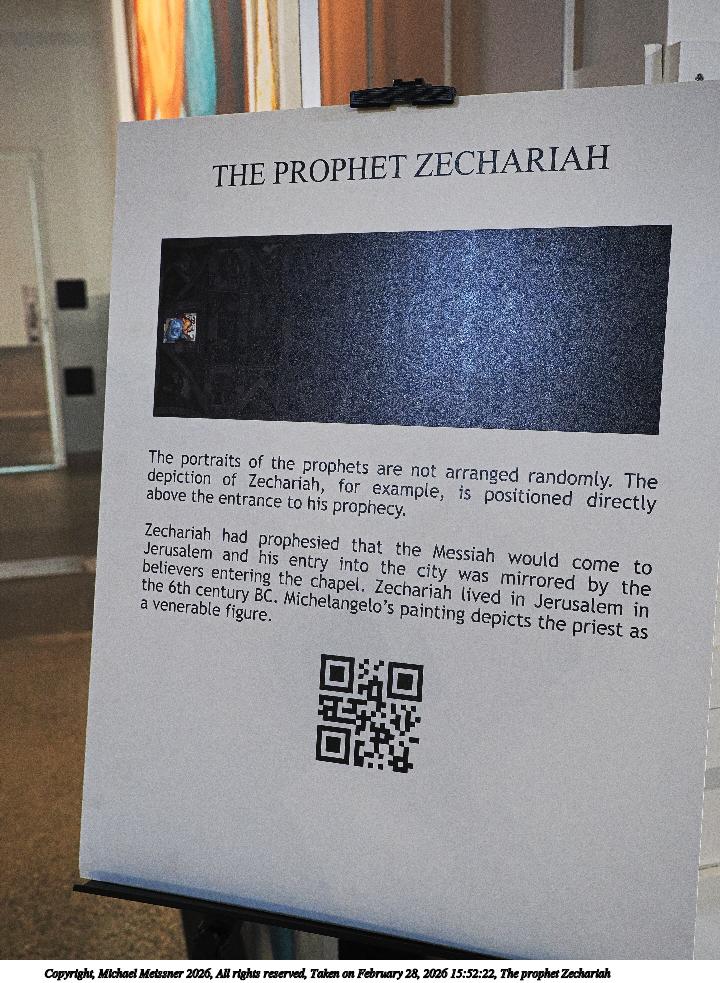 Picture #44: The prophet Zechariah Thumb: 360x480, 47,959 bytes (47K) Small: 720x983, 169,666 bytes (166K), (html file) Copyright, Michael Meissner 2026, All rights reserved OM OM1 camera with Olympus-m43 12-40mm f/2.8 lens f/2.8, ISO 2000, 1/60 sec, 17.0mm, auto mode, vivid color, matrix metering, IS Auto, anti-shock 35mm equivalent focal length 34.0mm Programs used: crop, raw therapee, rotate left Taken by Michael Meissner on February 28, 2026 15:52:22 Last modified on February 28, 2026 at 23:07 |
