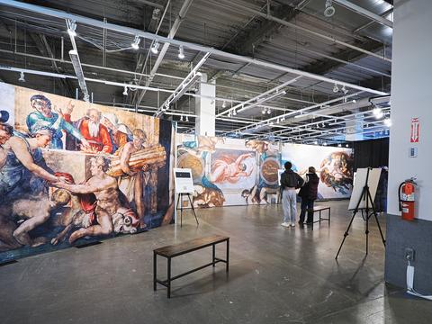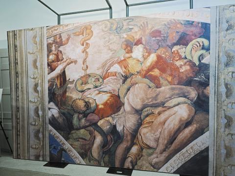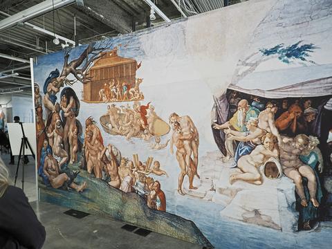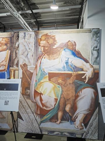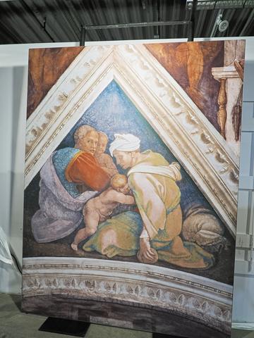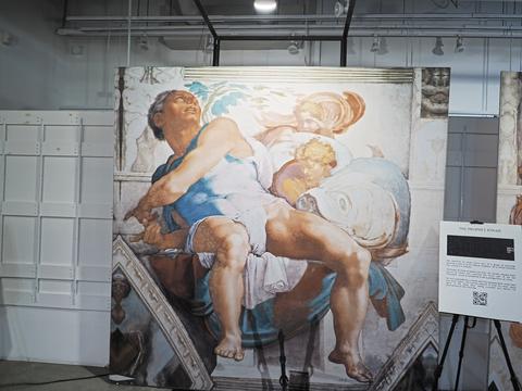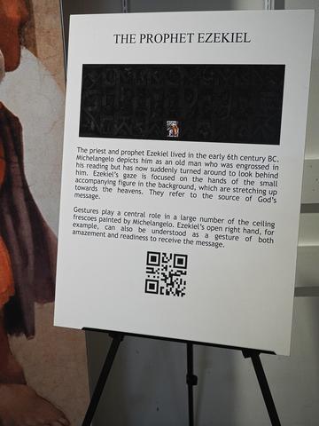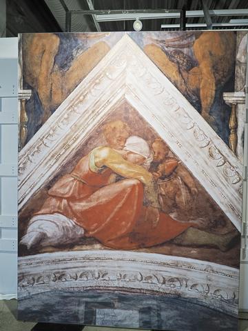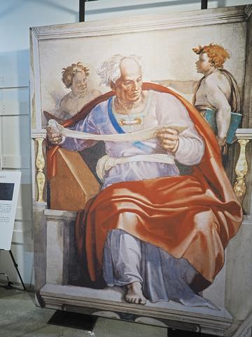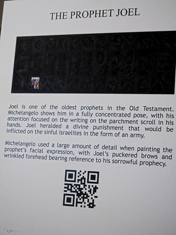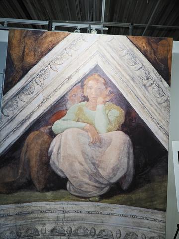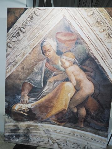 These pictures are taken of the reproductions from the original paintings in the Sistine Chapel in the exhibit. Since many of the figures in the original paintings are nude (both male and female), you may not want to view this album in places that have restrictions on nudity.