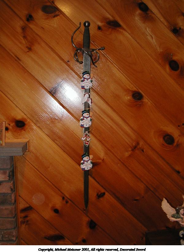 Picture #3: Decorated Sword 600x822, 70,422 bytes (69K), (html file) Copyright, Michael Meissner 2001, All rights reserved Olympus D-510Z camera f/3.0, ISO 200, flash, 1/30 sec, 6.4mm, auto mode, SHQ, matrix metering 35mm equivalent focal length 42.0mm Taken by Michael Meissner Last modified on June 06, 2002 at 22:42 |