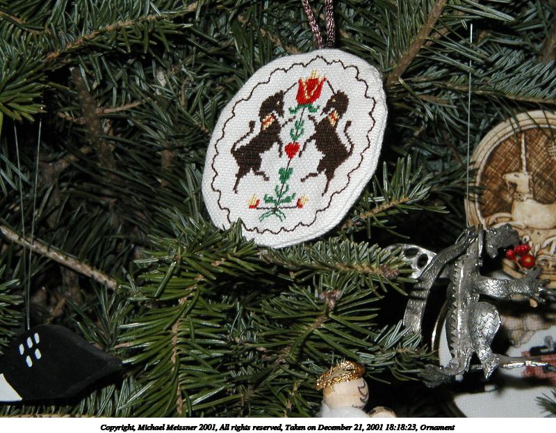 Picture #15: Ornament #6 800x622, 130,989 bytes (128K), (html file) Copyright, Michael Meissner 2001, All rights reserved Olympus D-510Z camera f/4.4, ISO 200, flash, 1/100 sec, 15.7mm, auto mode, HQ, matrix metering 35mm equivalent focal length 102.0mm Taken by Michael Meissner on December 21, 2001 18:28:18 Last modified on June 06, 2002 at 22:43 |
