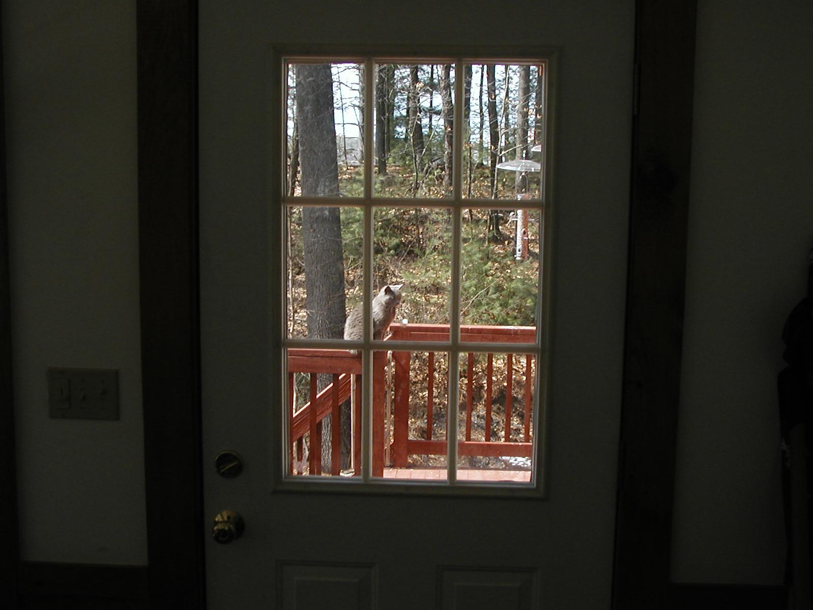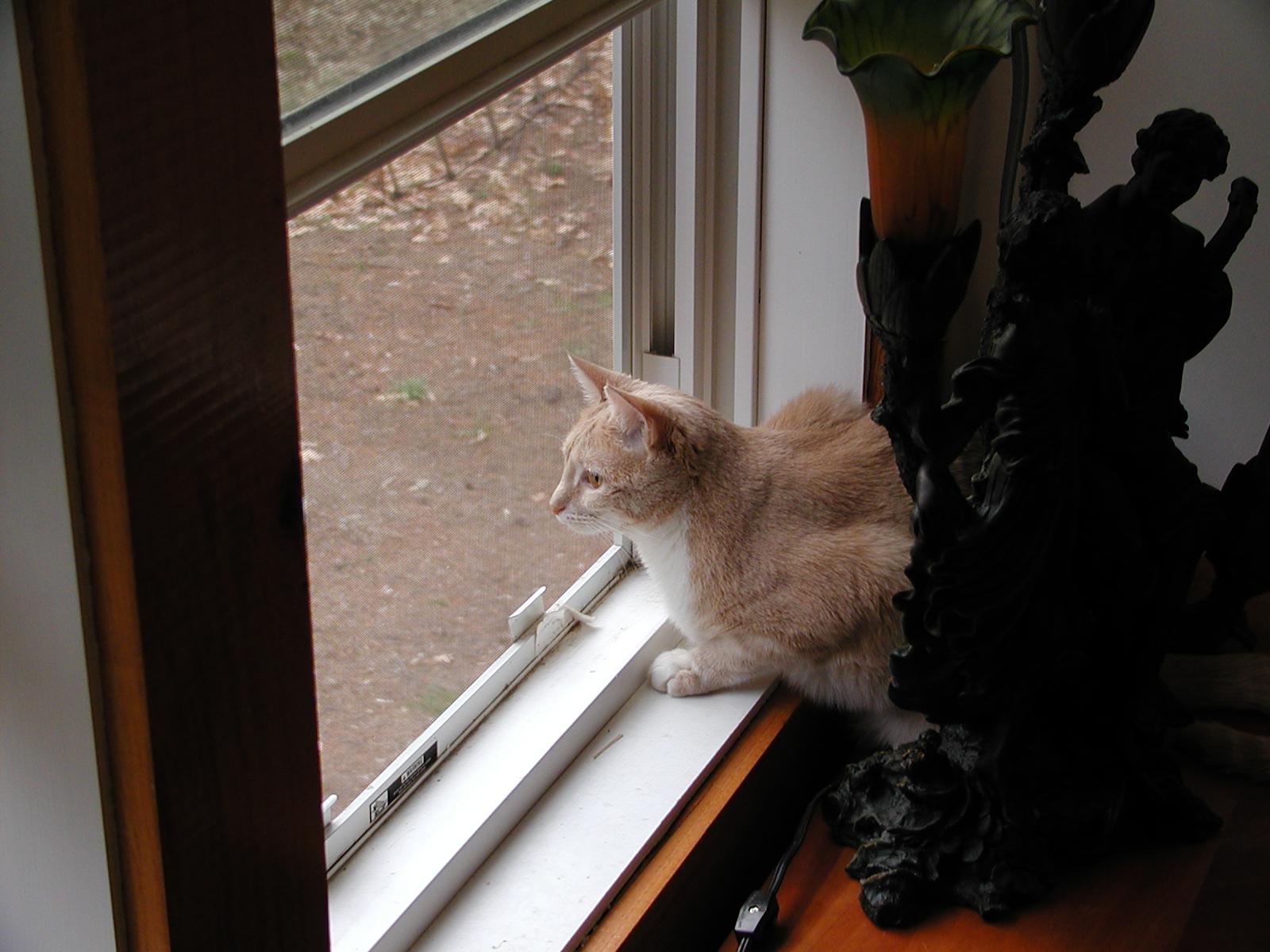 Picture #80: Purrrrgatory (outside, through window) #2 Small: 800x622, 59,143 bytes (58K), (html file) Large: 1600x1200, 144,028 bytes (141K), (html file) Copyright, Elizabeth Meissner 2002, All rights reserved Olympus D-510Z camera f/3.0, ISO 100, 1/320 sec, 6.4mm, auto mode, SHQ, spot metering 35mm equivalent focal length 42.0mm Taken by Elizabeth Meissner on March 31, 2002 12:30:29 Last modified on May 29, 2002 at 21:30 |