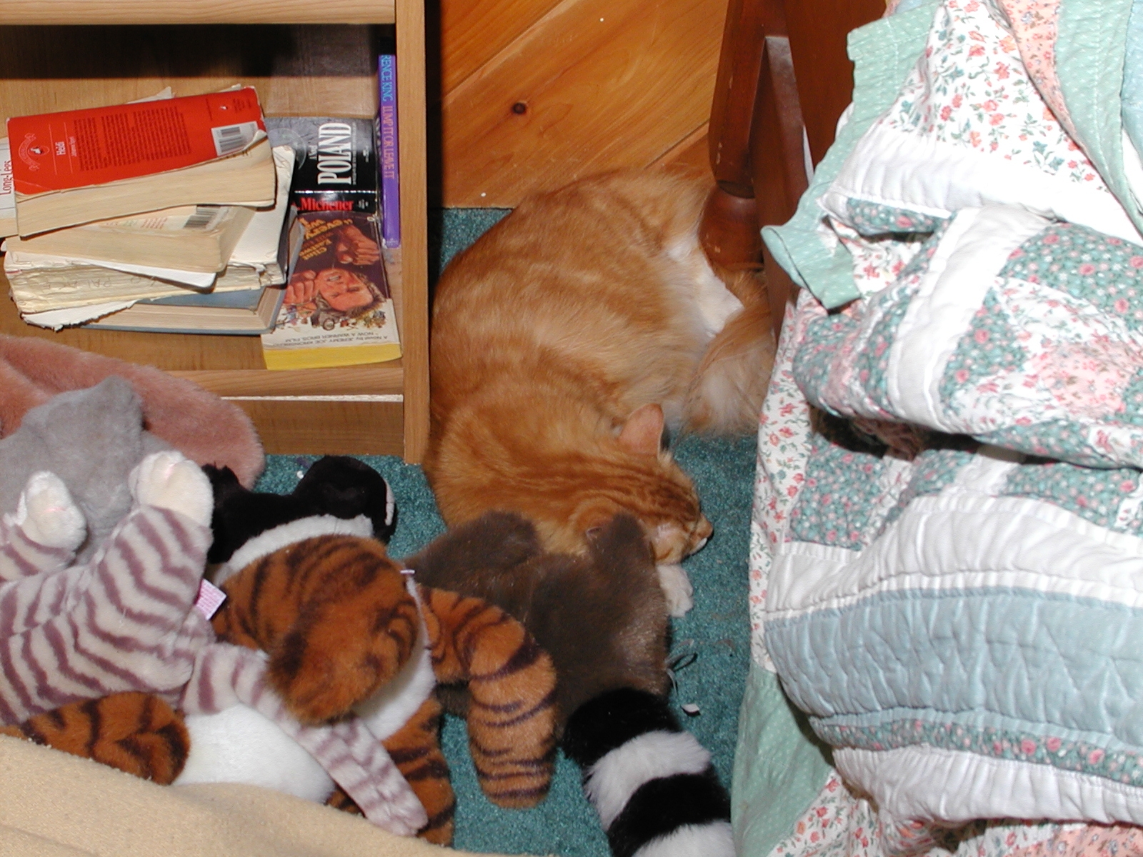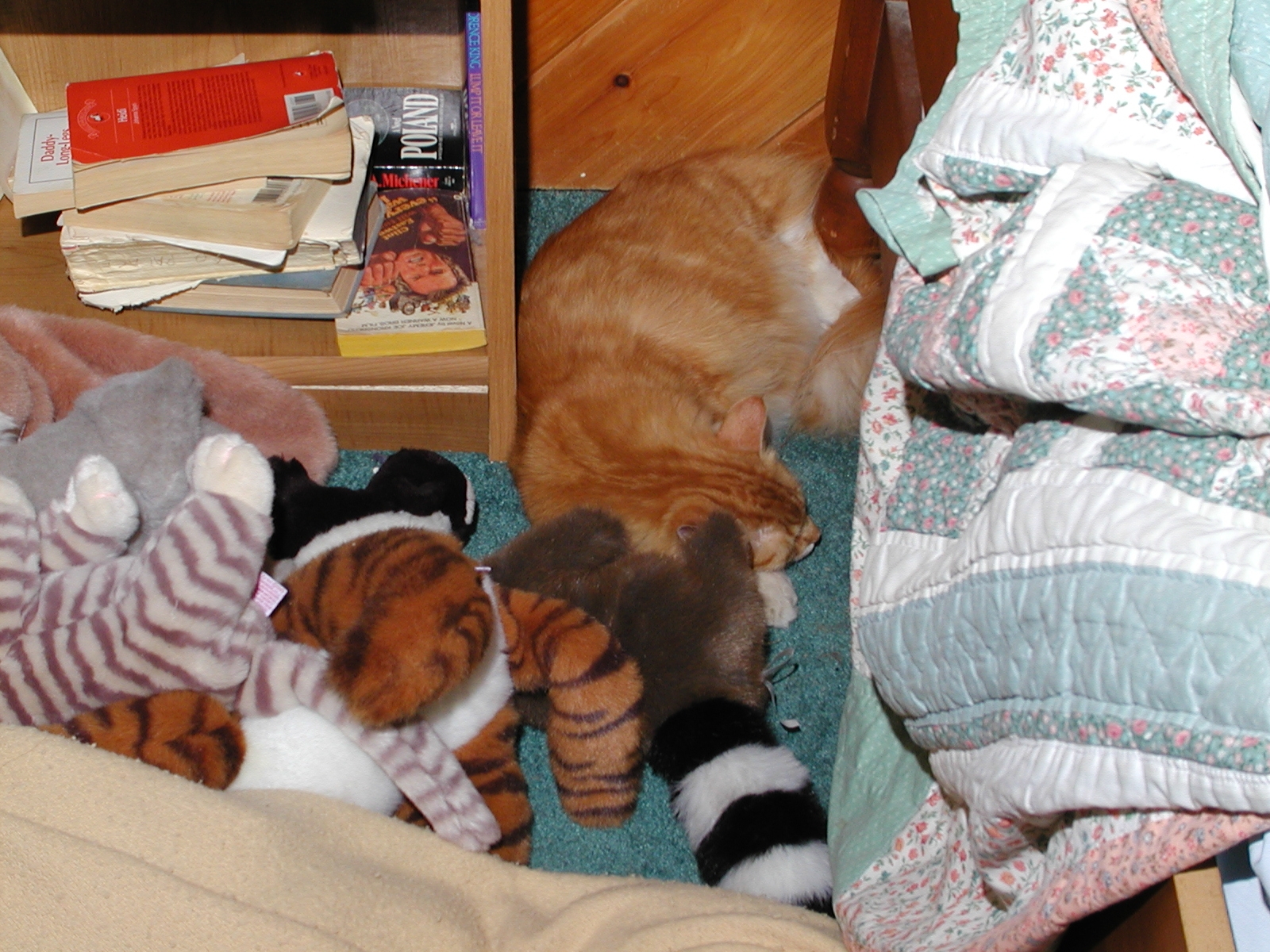 Picture #98: Quiz time, which is the live pet and which is the stuffed animal? Small: 800x622, 92,499 bytes (91K), (html file) Large: 1600x1200, 1,300,888 bytes (1.2M), (html file) Copyright, Michael Meissner 2002, All rights reserved Olympus C-2100UZ camera f/5.6, ISO 100, 1/125 sec, 14.7mm, manual mode, SHQ, matrix metering 35mm equivalent focal length 82.0mm Taken by Michael Meissner on July 09, 2002 15:15:16 Last modified on July 09, 2002 at 15:52 Shutter speed of 1/125 or 1/250 may indicate use of flash |