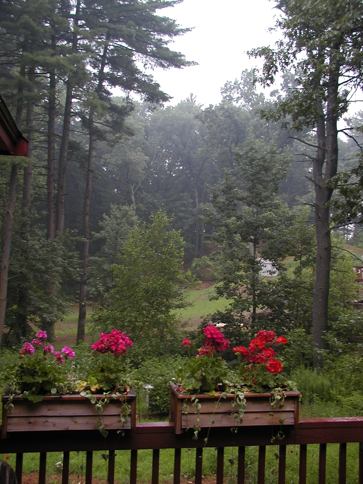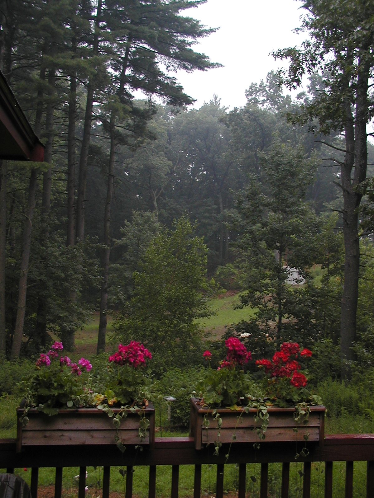 Picture #96: View from our deck of fog after a rainstorm Small: 600x844, 121,348 bytes (119K), (html file) Large: 1200x1600, 1,489,198 bytes (1.4M), (html file) Copyright, Michael Meissner 2002, All rights reserved Olympus C-2100UZ camera f/2.8, ISO 100, 1/10 sec, 8.2mm, auto mode, SHQ, matrix metering 35mm equivalent focal length 46.0mm Taken by Michael Meissner on July 09, 2002 19:37:53 Last modified on July 10, 2002 at 13:47 |