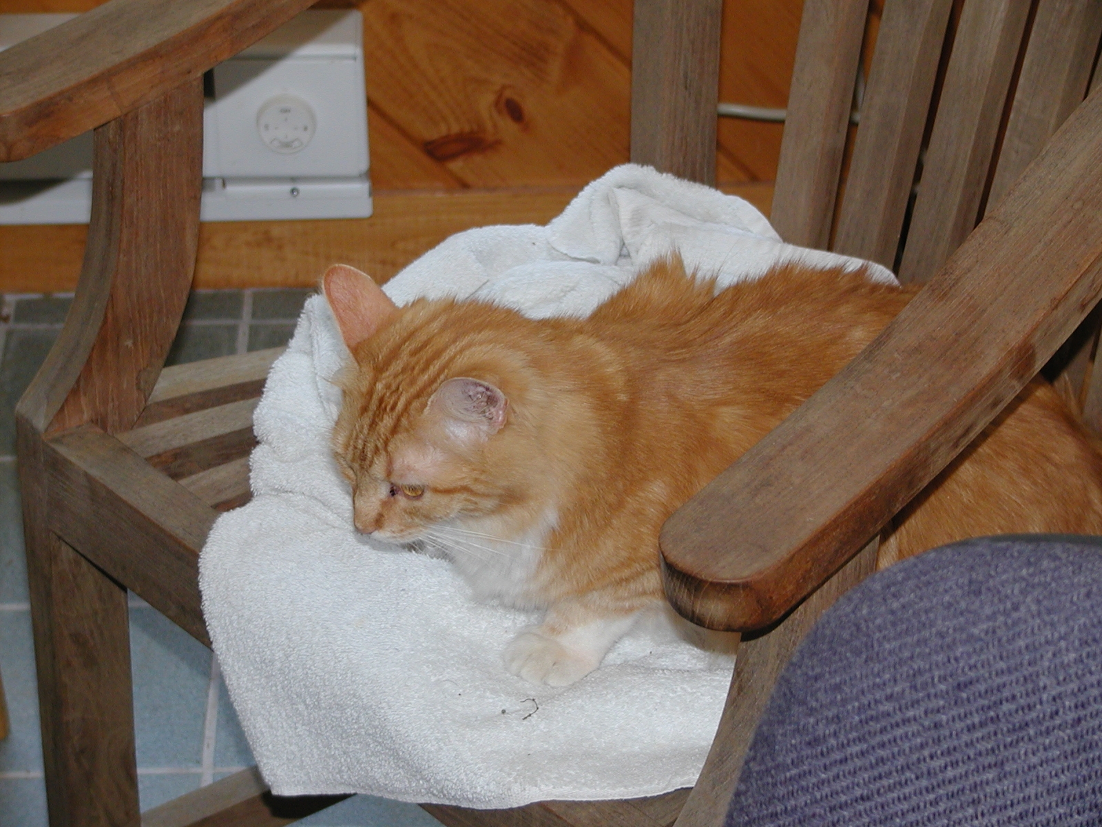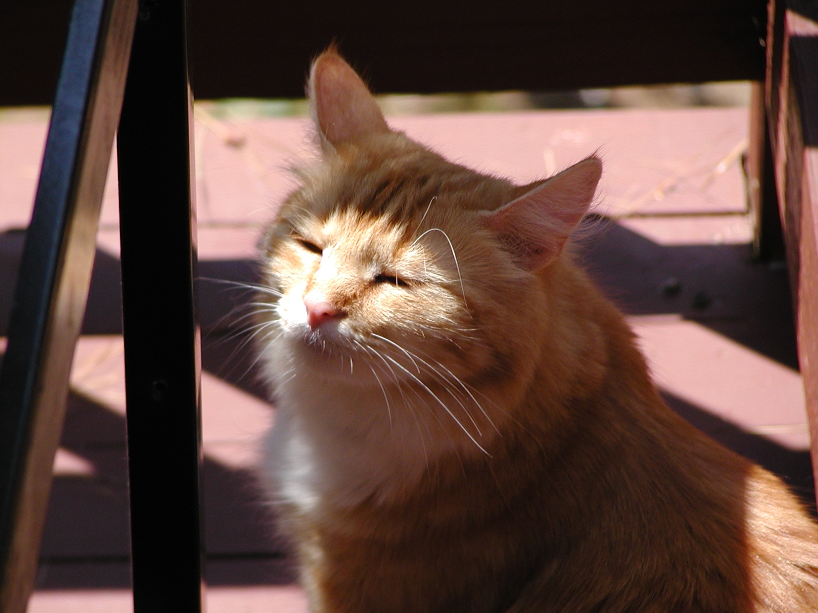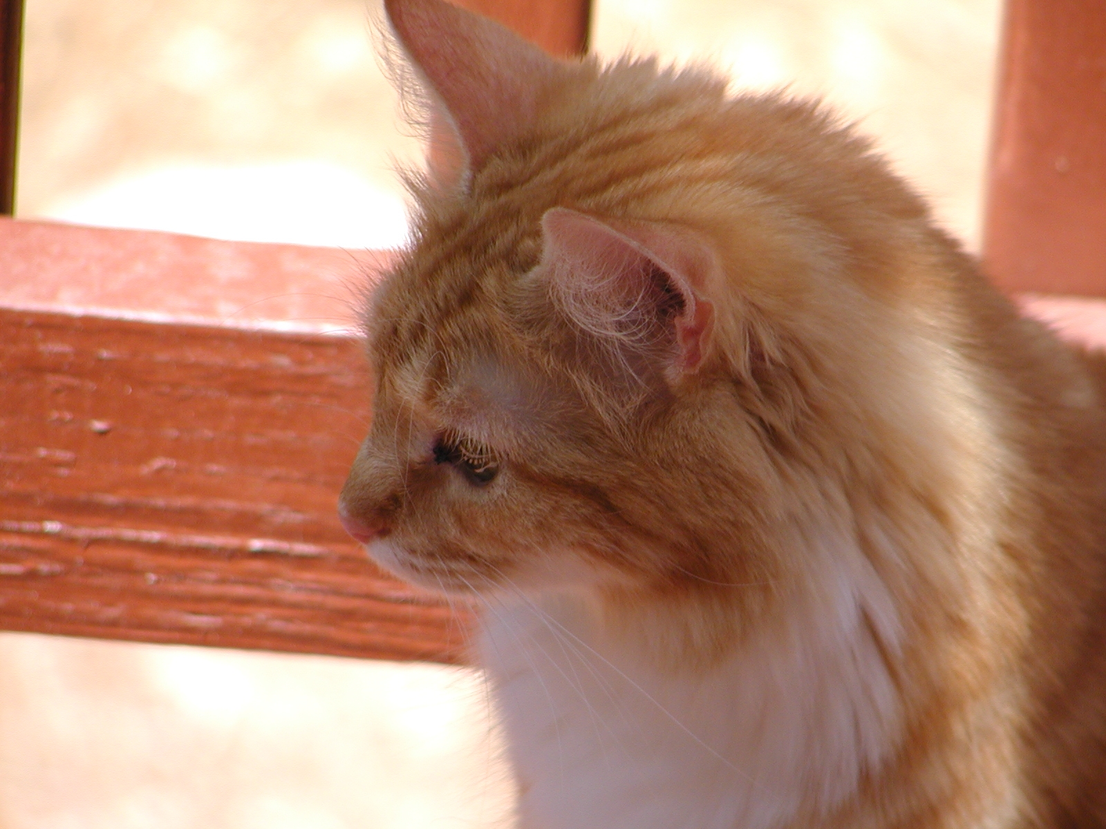 Picture #10: Let sleeping cats lie #3 Small: 600x822, 118,669 bytes (116K), (html file) Large: 1200x1600, 1,480,552 bytes (1.4M), (html file) Copyright, Michael Meissner 2002, All rights reserved Olympus C-2100UZ camera f/5.6, ISO 100, 1/125 sec, 34.1mm, manual mode, SHQ, matrix metering 35mm equivalent focal length 189.0mm Taken by Michael Meissner on July 28, 2002 13:37:23 Last modified on July 30, 2002 at 00:06 Shutter speed of 1/125 or 1/250 may indicate use of flash |