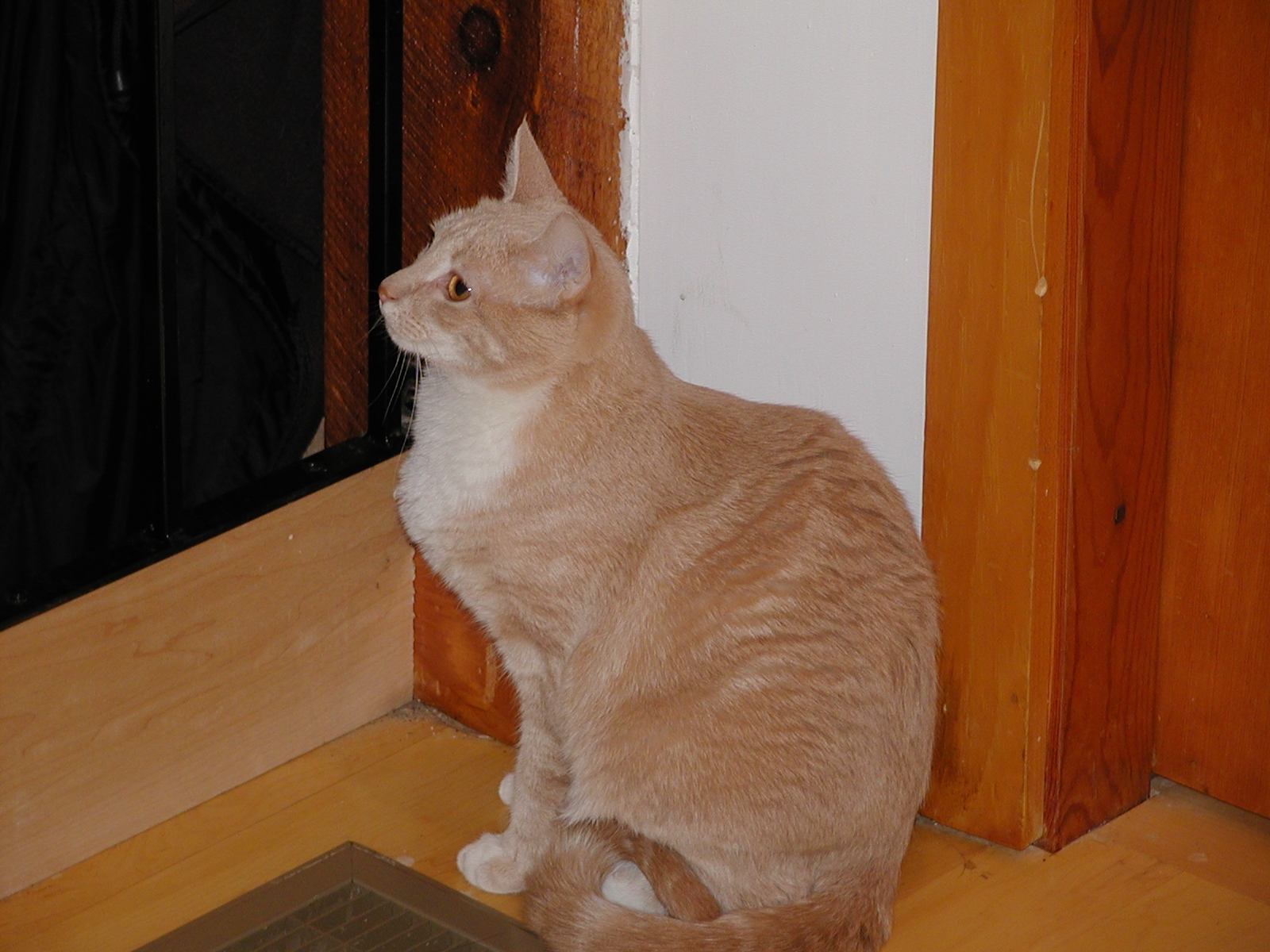 Picture #52: A cat's job is to contemplate the universe Small: 800x622, 120,378 bytes (118K), (html file) Large: 1600x1200, 1,518,502 bytes (1.4M), (html file) Copyright, Michael Meissner 2002, All rights reserved Olympus C-2100UZ camera f/2.8, ISO 100, 1/125 sec, 20.7mm, auto mode, SHQ, matrix metering, bias -0.3 35mm equivalent focal length 115.0mm Taken by Michael Meissner on July 20, 2002 13:53:49 Last modified on July 21, 2002 at 23:54 Shutter speed of 1/125 or 1/250 may indicate use of flash |
