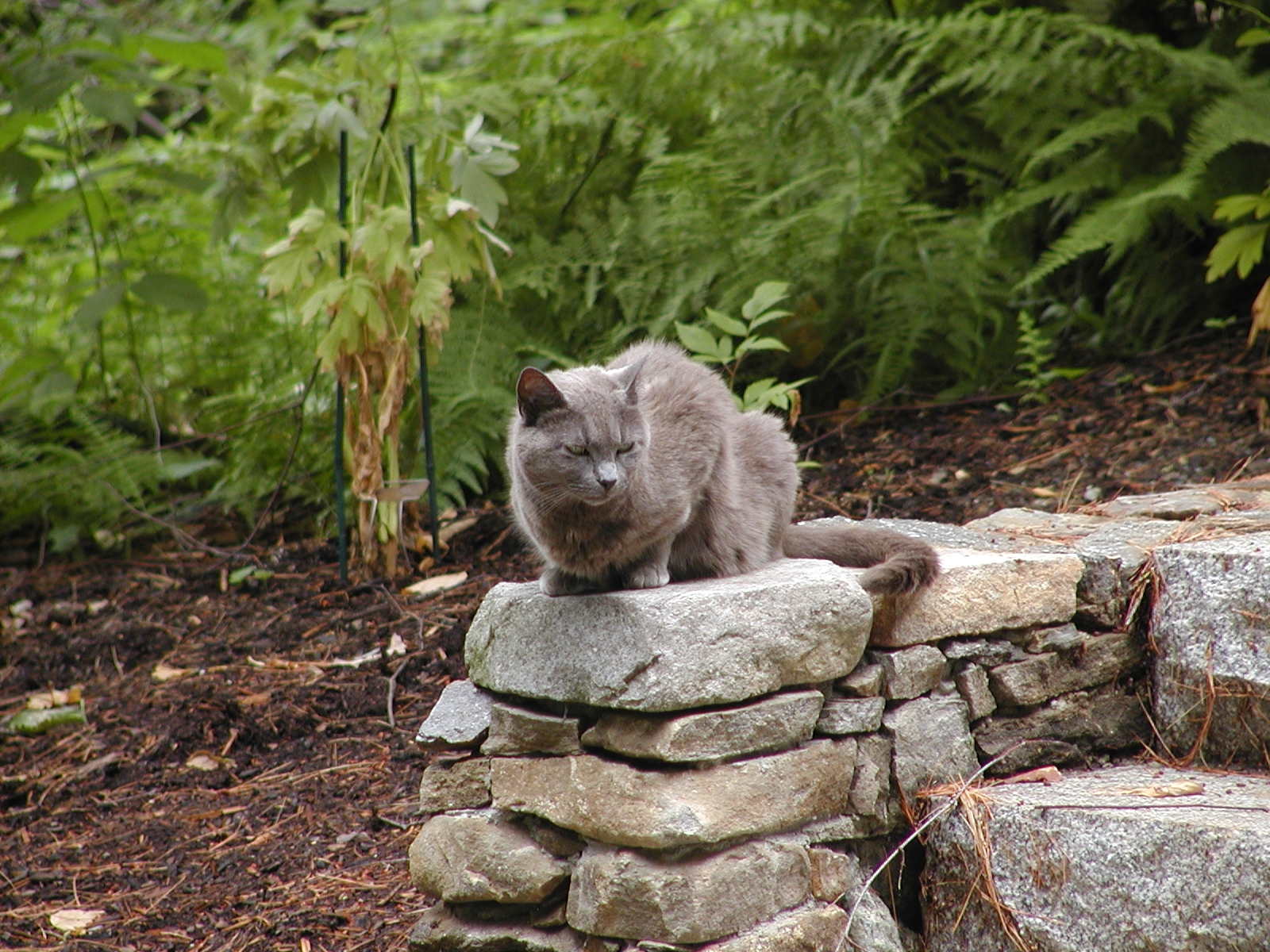 Picture #65: Some people have stone lions upon their stairs, we have gray and grumpy.... #3 Small: 800x622, 122,186 bytes (120K), (html file) Large: 1600x1200, 1,445,137 bytes (1.4M), (html file) Copyright, Michael Meissner 2002, All rights reserved Olympus C-2100UZ camera f/3.2, ISO 100, 1/125 sec, 54.0mm, auto mode, SHQ, matrix metering 35mm equivalent focal length 300.0mm Taken by Michael Meissner on July 19, 2002 12:20:14 Last modified on July 20, 2002 at 10:30 Shutter speed of 1/125 or 1/250 may indicate use of flash |