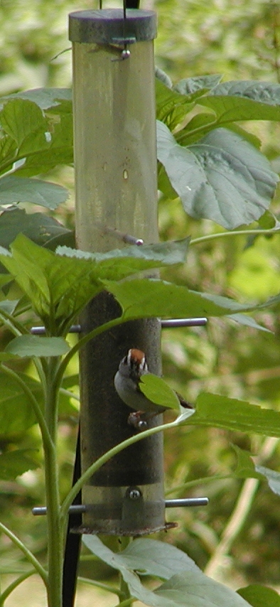 Picture #4: Bird feeder surrounded by sunflowers that have grown up from the seeds the birds dropped Small: 800x644, 129,606 bytes (127K), (html file) Large: 1600x1200, 1,590,571 bytes (1.5M), (html file) Copyright, Michael Meissner 2002, All rights reserved Olympus C-2100UZ camera f/3.2, ISO 100, 1/500 sec, 16.2mm, auto mode, SHQ, matrix metering, bias -0.3 35mm equivalent focal length 90.0mm Taken by Michael Meissner on July 30, 2002 14:40:04 Last modified on July 30, 2002 at 17:14 |