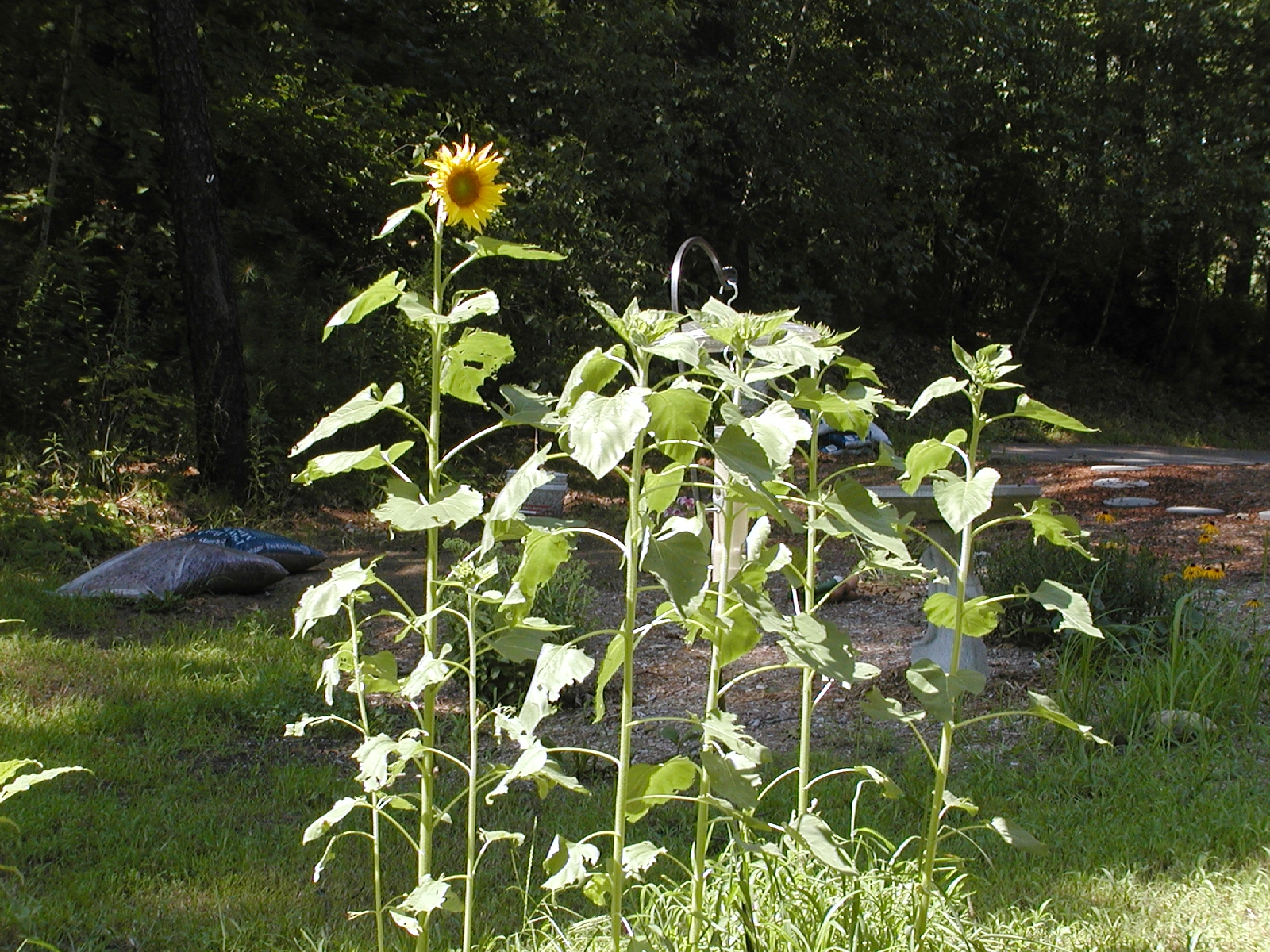 Picture #3: Bird feeder surrounded by sunflowers that have grown up from the seeds the birds dropped #2 Small: 800x644, 146,198 bytes (143K), (html file) Large: 1600x1200, 1,643,171 bytes (1.6M), (html file) Copyright, Michael Meissner 2002, All rights reserved Olympus C-2100UZ camera f/5.6, ISO 100, 1/160 sec, 16.2mm, aperture priority, SHQ, matrix metering, bias -0.3 35mm equivalent focal length 90.0mm Taken by Michael Meissner on July 30, 2002 14:41:01 Last modified on July 30, 2002 at 17:15 |