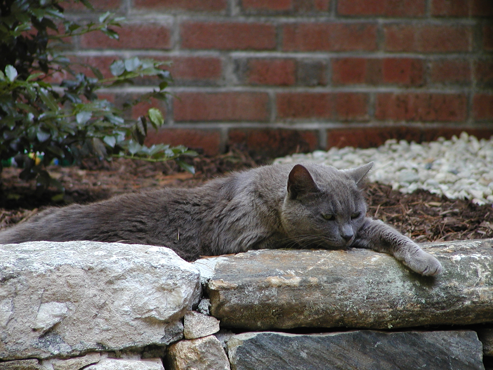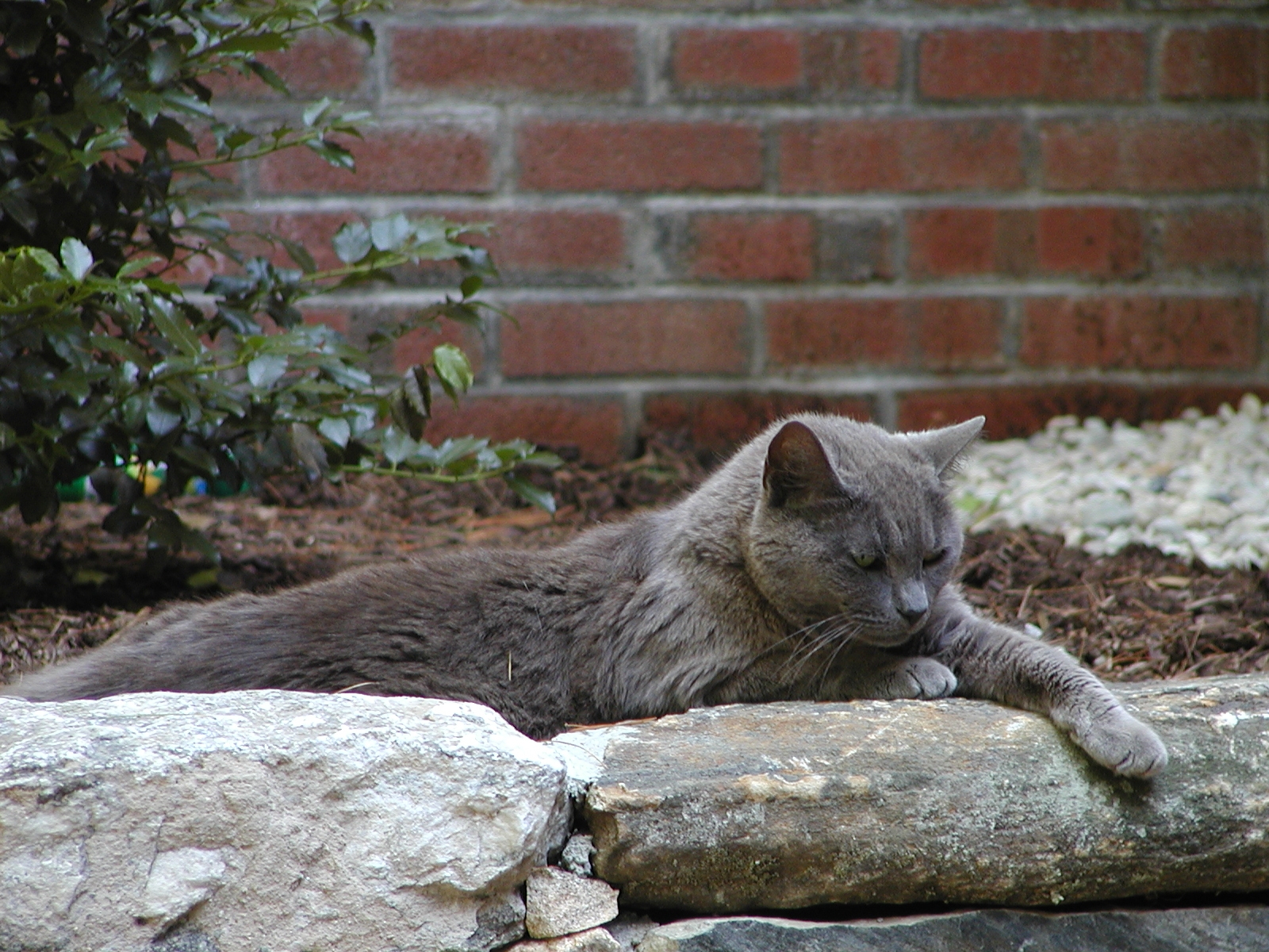Picture #190: Guard kitty #3 Small: 800x622, 97,692 bytes (96K), (html file) Large: 1600x1200, 1,403,725 bytes (1.3M), (html file) Copyright, Michael Meissner 2002, All rights reserved Olympus C-2100UZ camera f/2.8, ISO 100, 1/125 sec, 48.3mm, auto mode, SHQ, matrix metering 35mm equivalent focal length 268.0mm Taken by Michael Meissner on August 04, 2002 14:47:42 Last modified on August 04, 2002 at 18:04 Shutter speed of 1/125 or 1/250 may indicate use of flash |