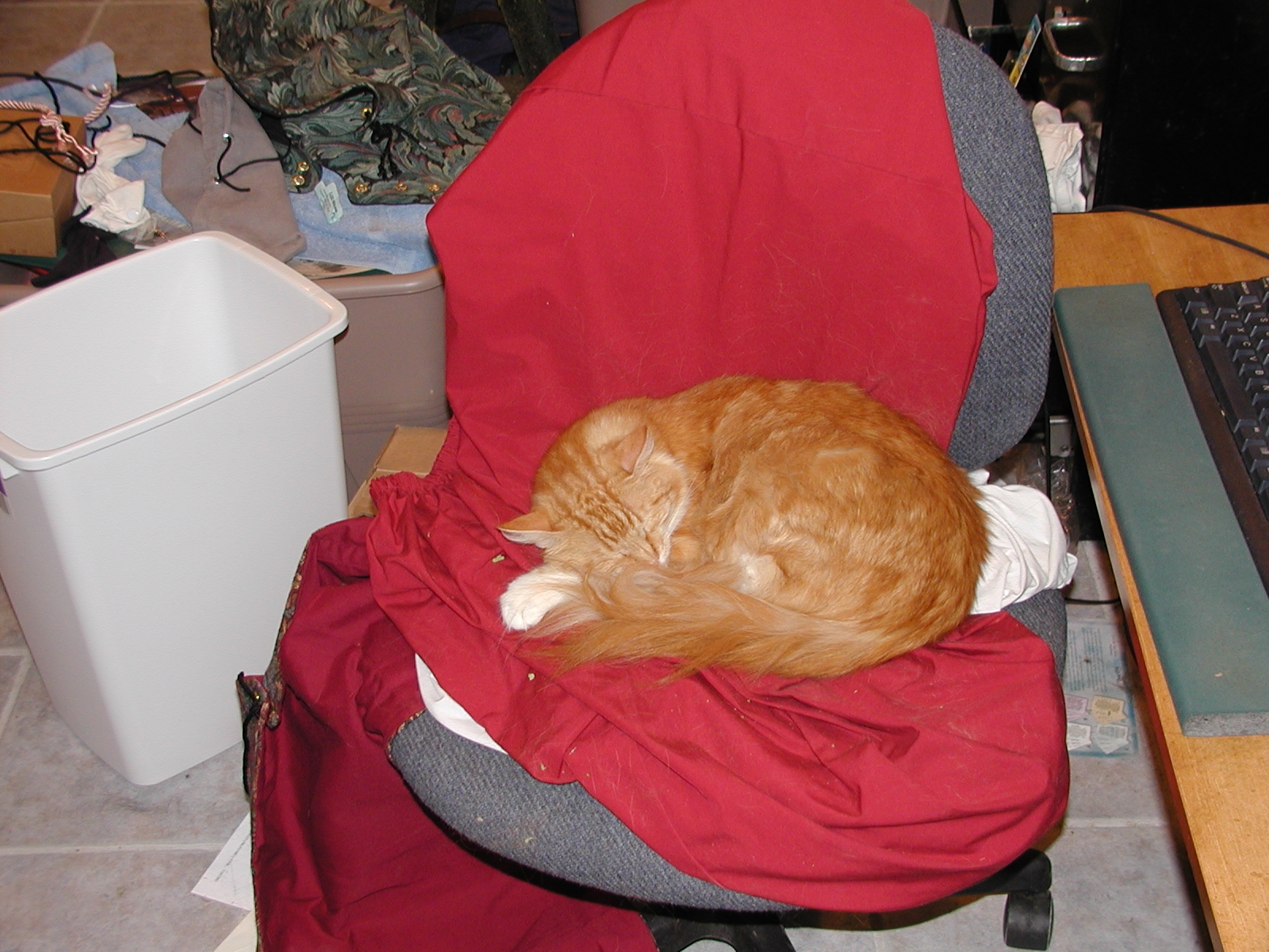 Picture #108: To cats, every surface is a sleeping area Small: 800x622, 81,040 bytes (80K), (html file) Large: 1600x1200, 1,271,906 bytes (1.2M), (html file) Copyright, Michael Meissner 2002, All rights reserved Olympus C-2100UZ camera f/2.8, ISO 100, 1/6 sec, 22.3mm, auto mode, SHQ, matrix metering 35mm equivalent focal length 124.0mm Taken by Michael Meissner on August 18, 2002 02:12:22 Last modified on August 19, 2002 at 00:15 |