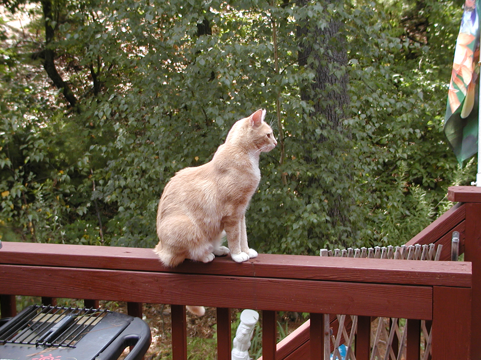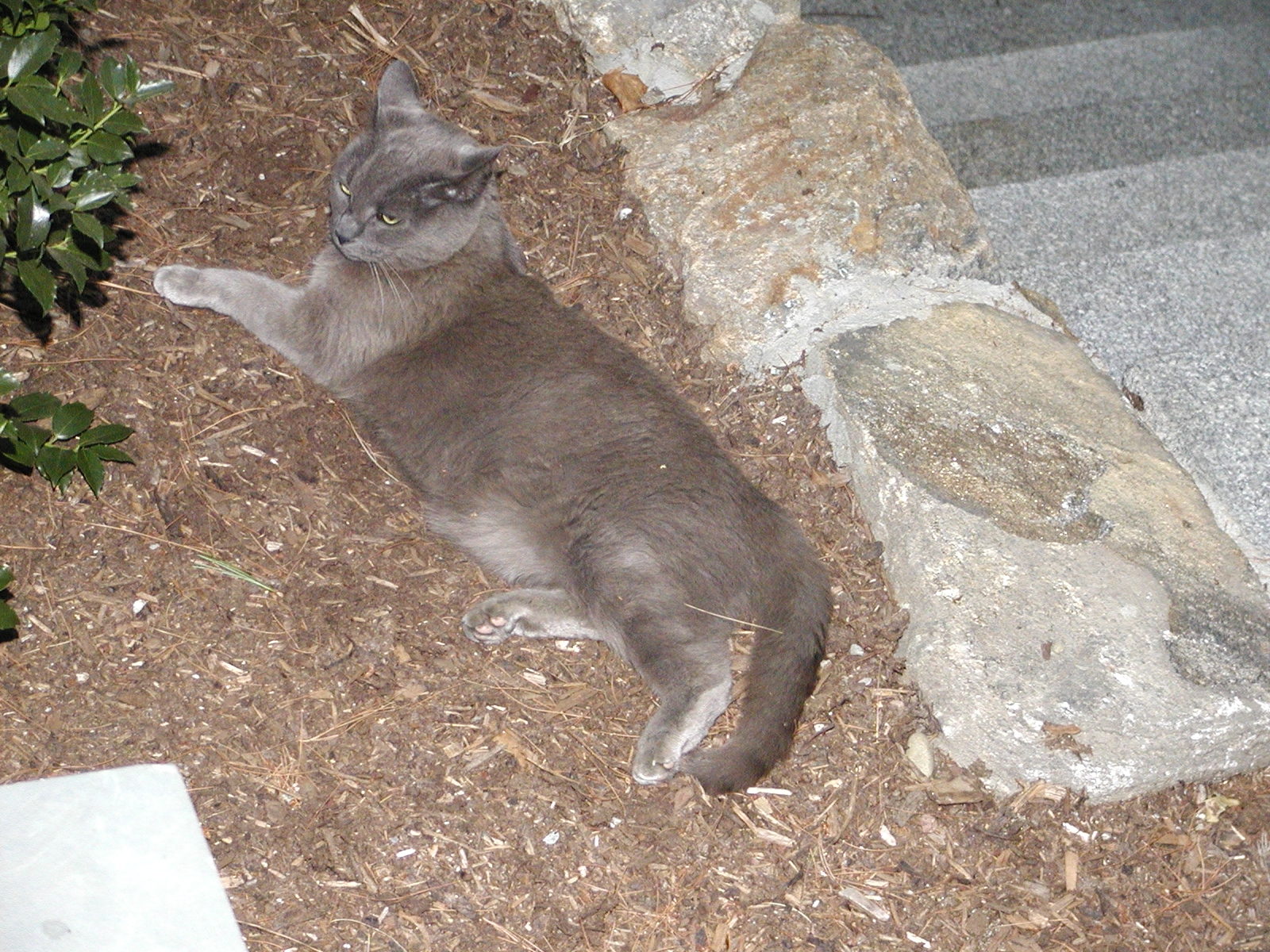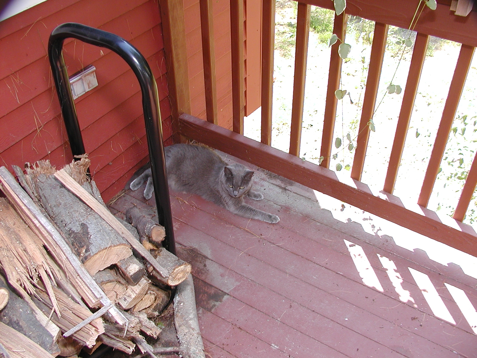 Picture #113: Purrgatory on the porch Small: 600x822, 93,145 bytes (91K), (html file) Large: 1200x1600, 1,440,468 bytes (1.4M), (html file) Copyright, Michael Meissner 2002, All rights reserved Olympus C-2100UZ camera f/2.8, ISO 100, 1/125 sec, 16.8mm, manual mode, SHQ, matrix metering 35mm equivalent focal length 93.0mm Taken by Michael Meissner on August 17, 2002 11:56:44 Last modified on August 18, 2002 at 00:57 Shutter speed of 1/125 or 1/250 may indicate use of flash |