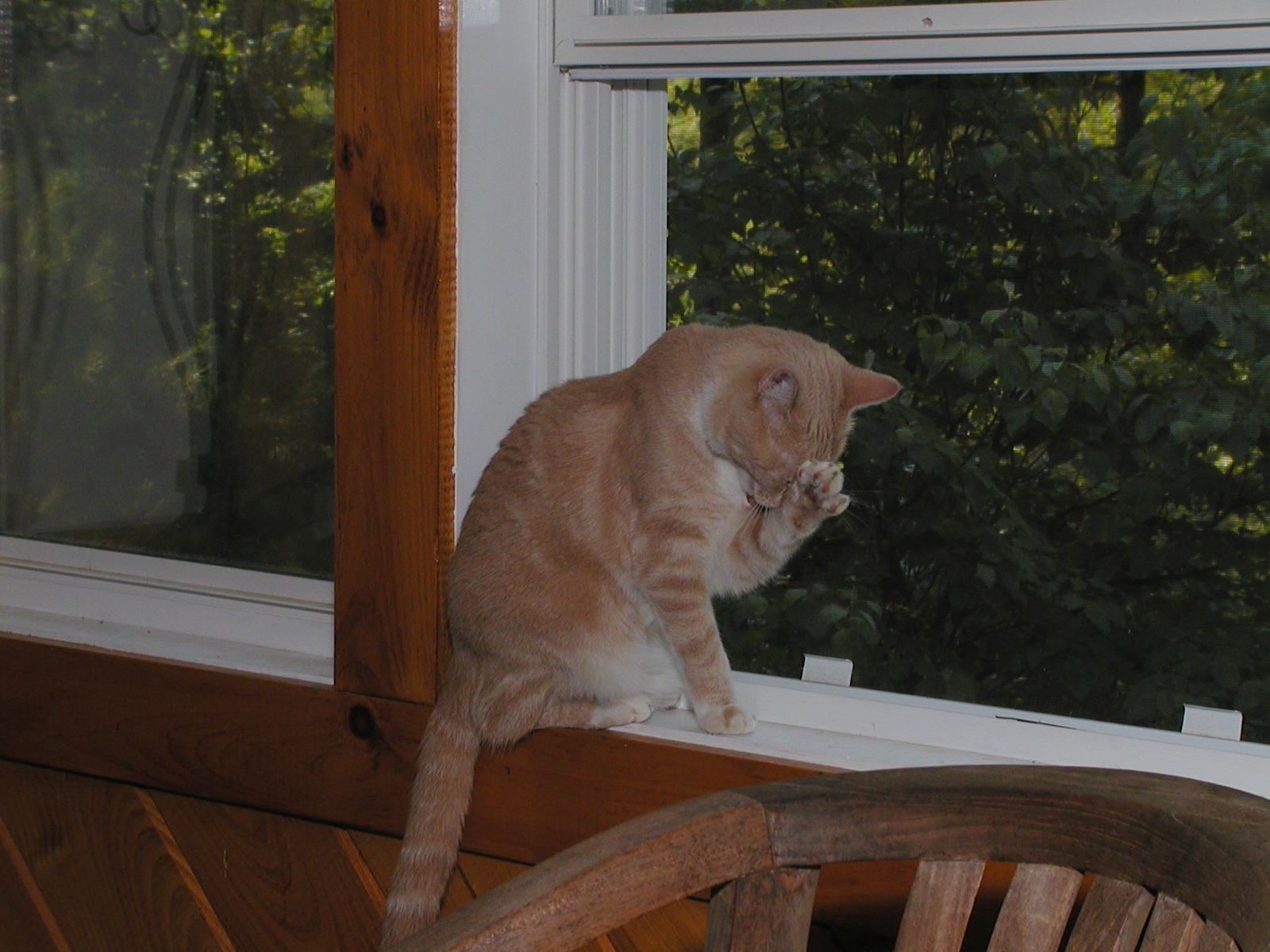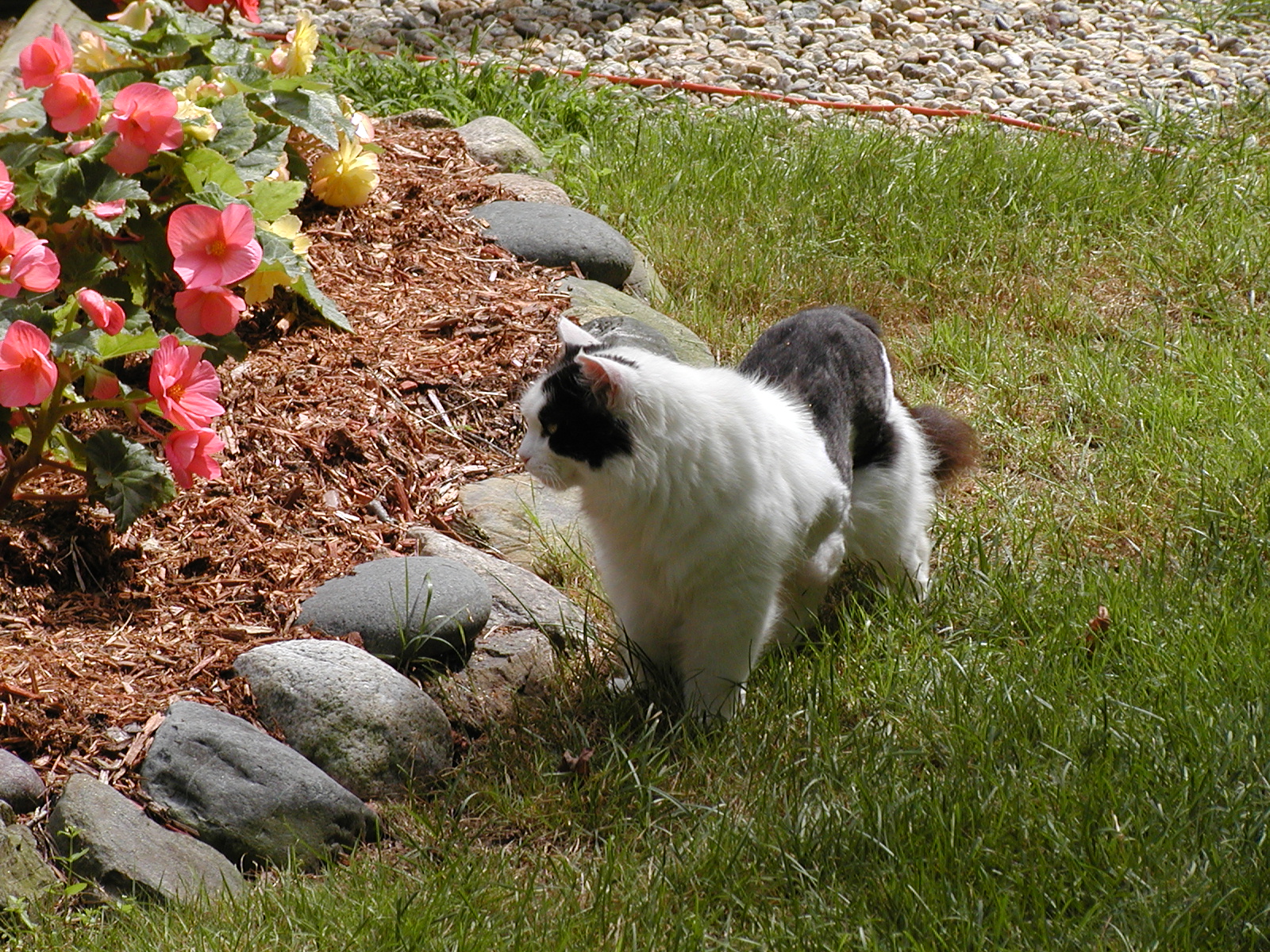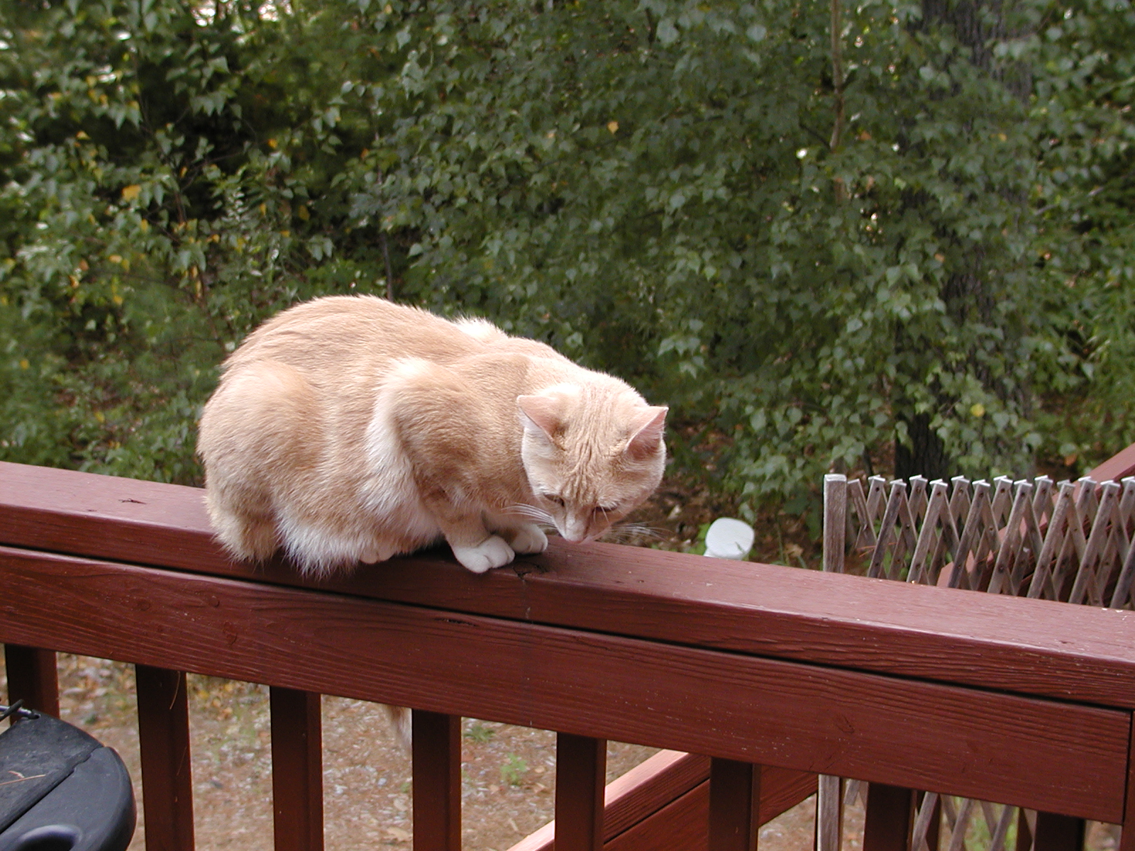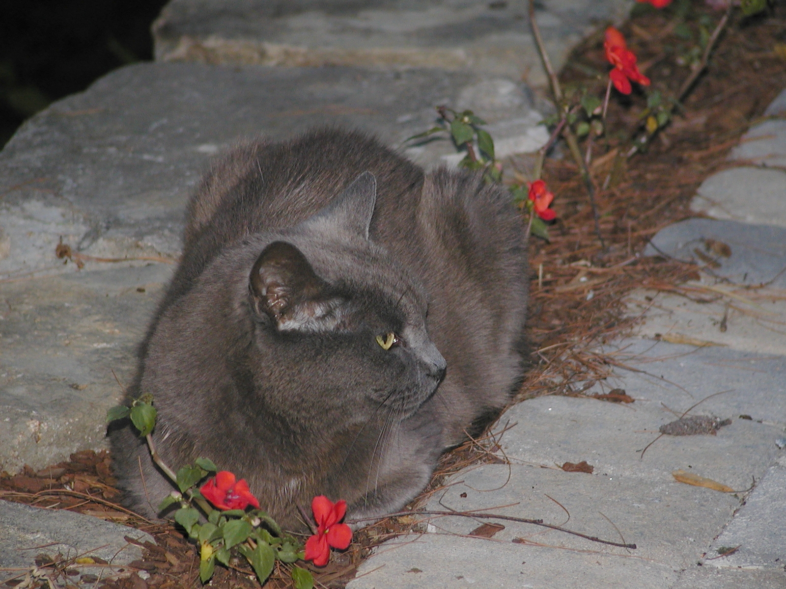 Picture #113: Purrgatory on the porch Small: 600x822, 93,145 bytes (91K), (html file) Large: 1200x1600, 1,440,468 bytes (1.4M), (html file) Copyright, Michael Meissner 2002, All rights reserved Olympus C-2100UZ camera f/2.8, ISO 100, 1/125 sec, 16.8mm, manual mode, SHQ, matrix metering 35mm equivalent focal length 93.0mm Taken by Michael Meissner on August 17, 2002 11:56:44 Last modified on August 18, 2002 at 00:57 Shutter speed of 1/125 or 1/250 may indicate use of flash |