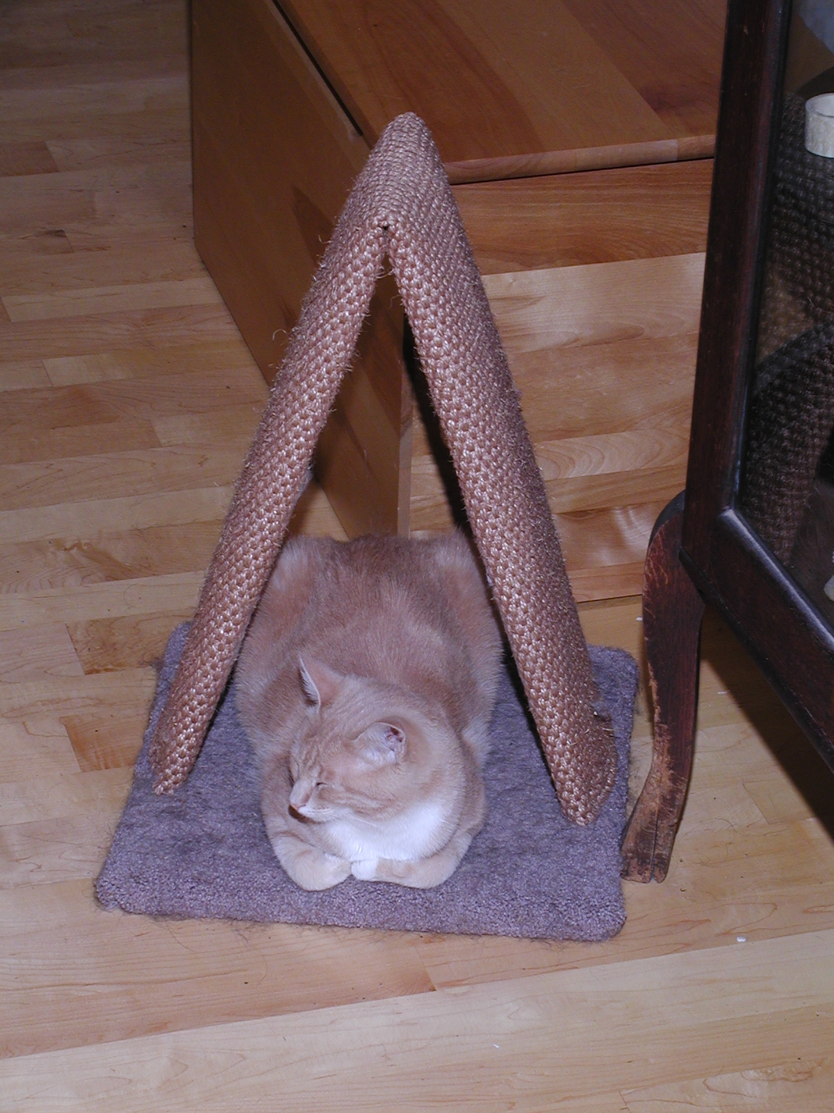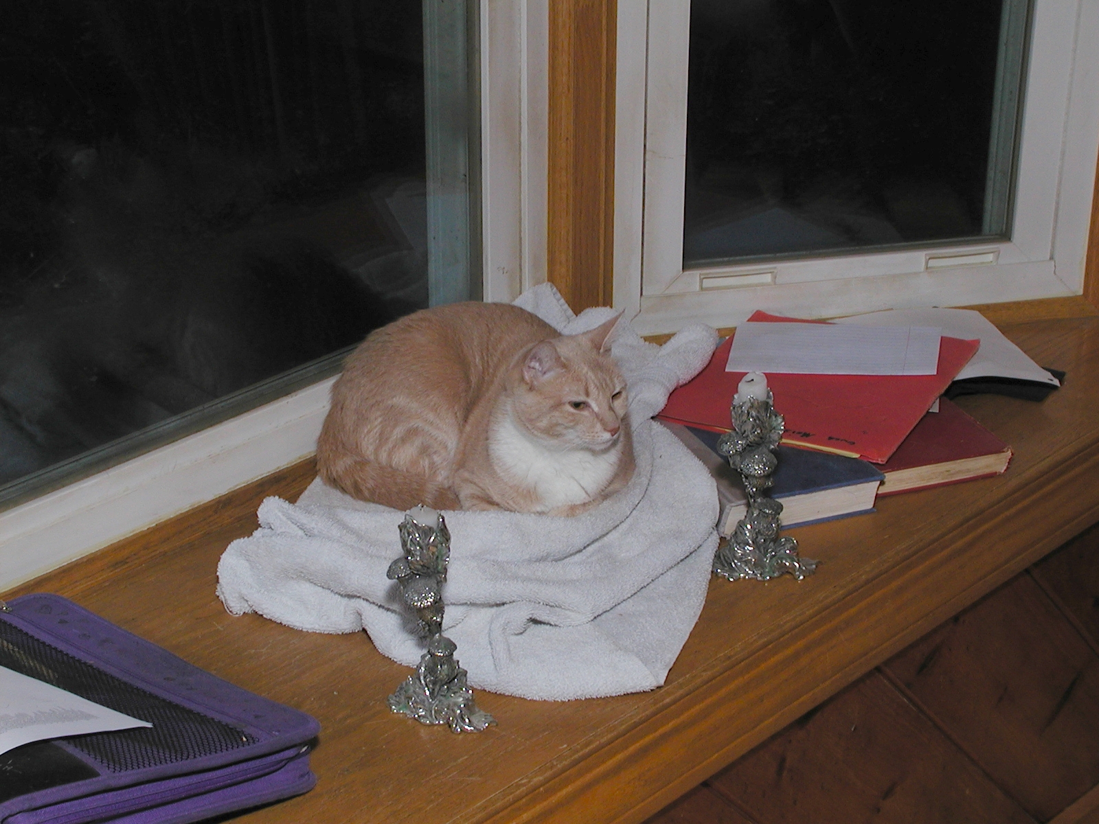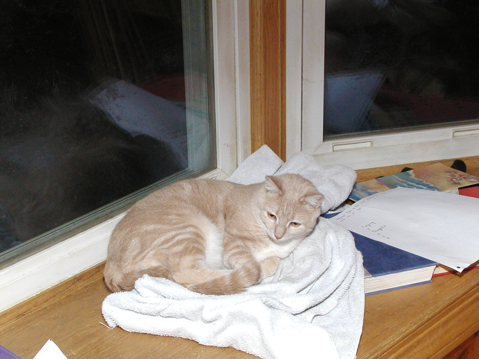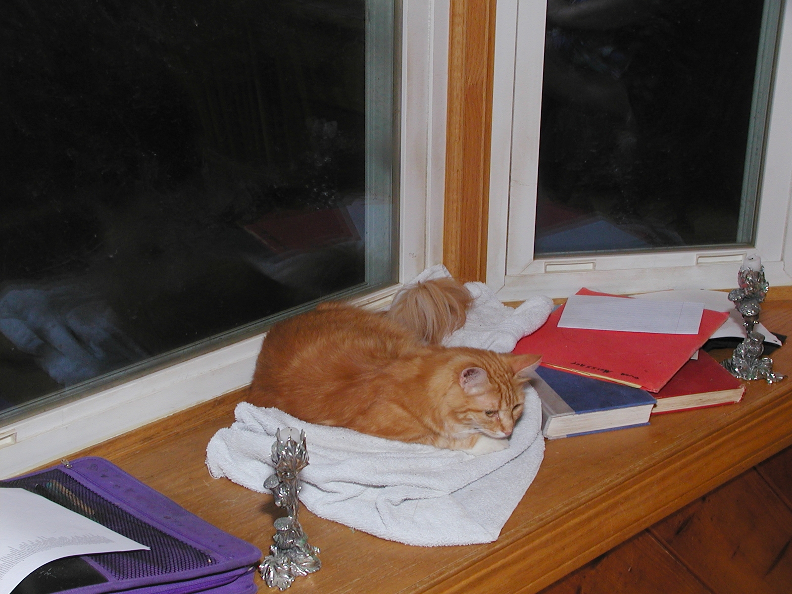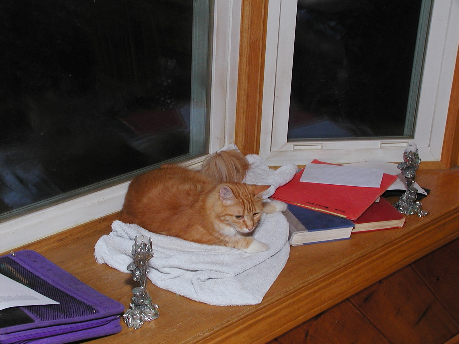 Picture #152: Purrgatory Small: 800x622, 115,865 bytes (114K), (html file) Large: 1600x1200, 1,557,276 bytes (1.5M), (html file) Copyright, Michael Meissner 2002, All rights reserved Olympus C-2100UZ camera f/3.5, ISO 100, 1/125 sec, 25.2mm, manual mode, SHQ, matrix metering 35mm equivalent focal length 140.0mm Taken by Michael Meissner on August 08, 2002 19:34:59 Last modified on August 09, 2002 at 01:20 Shutter speed of 1/125 or 1/250 may indicate use of flash |