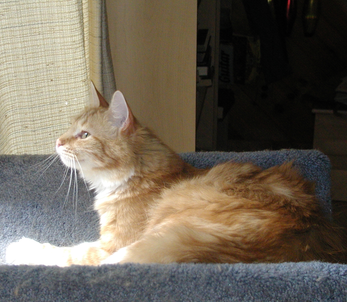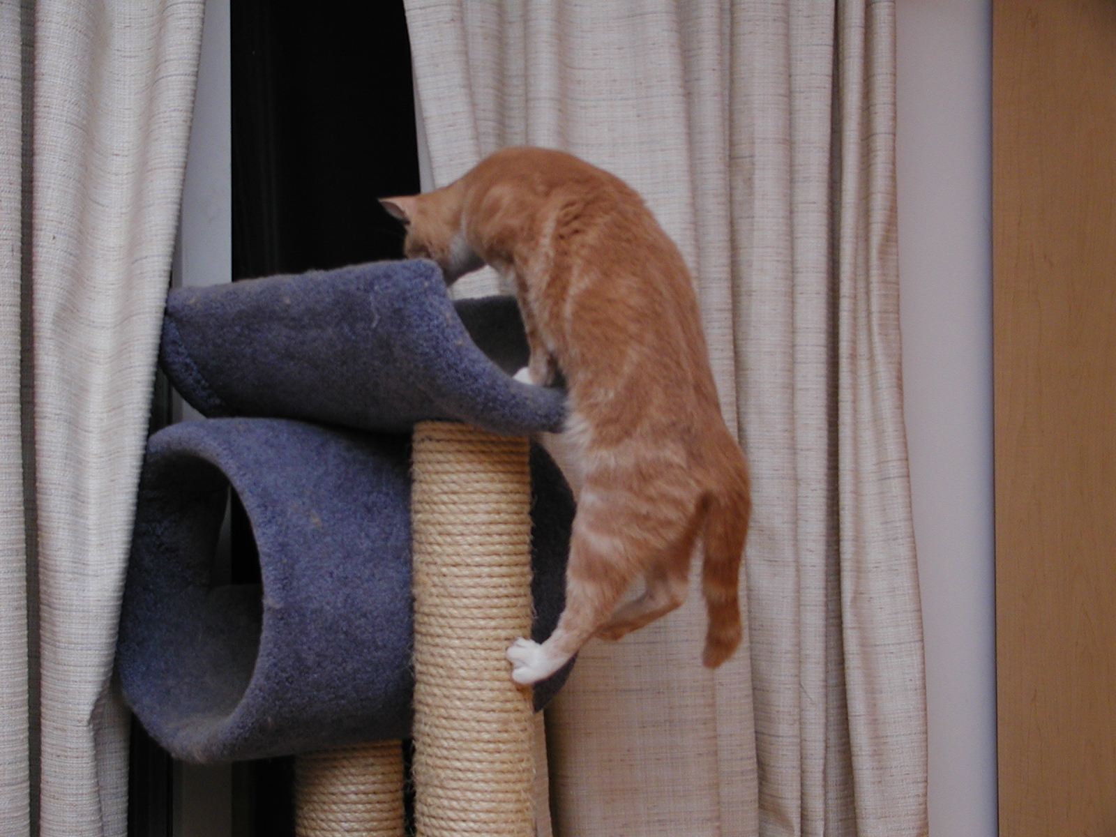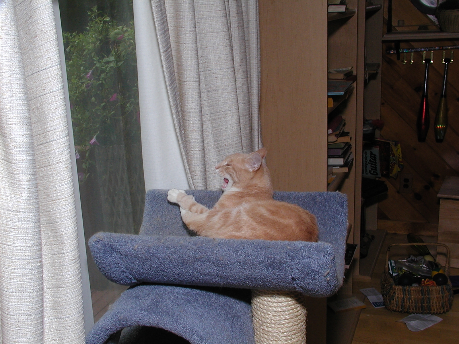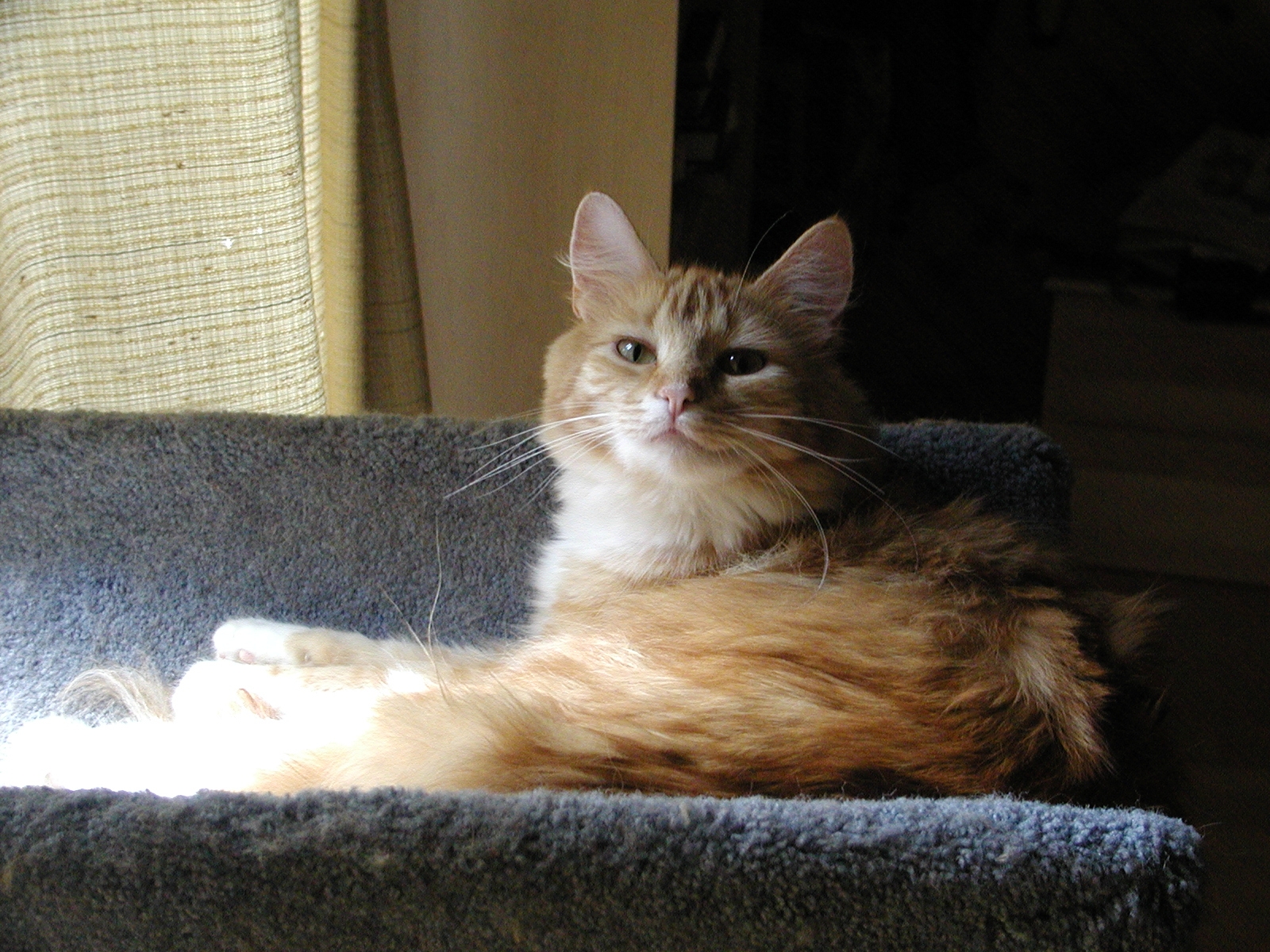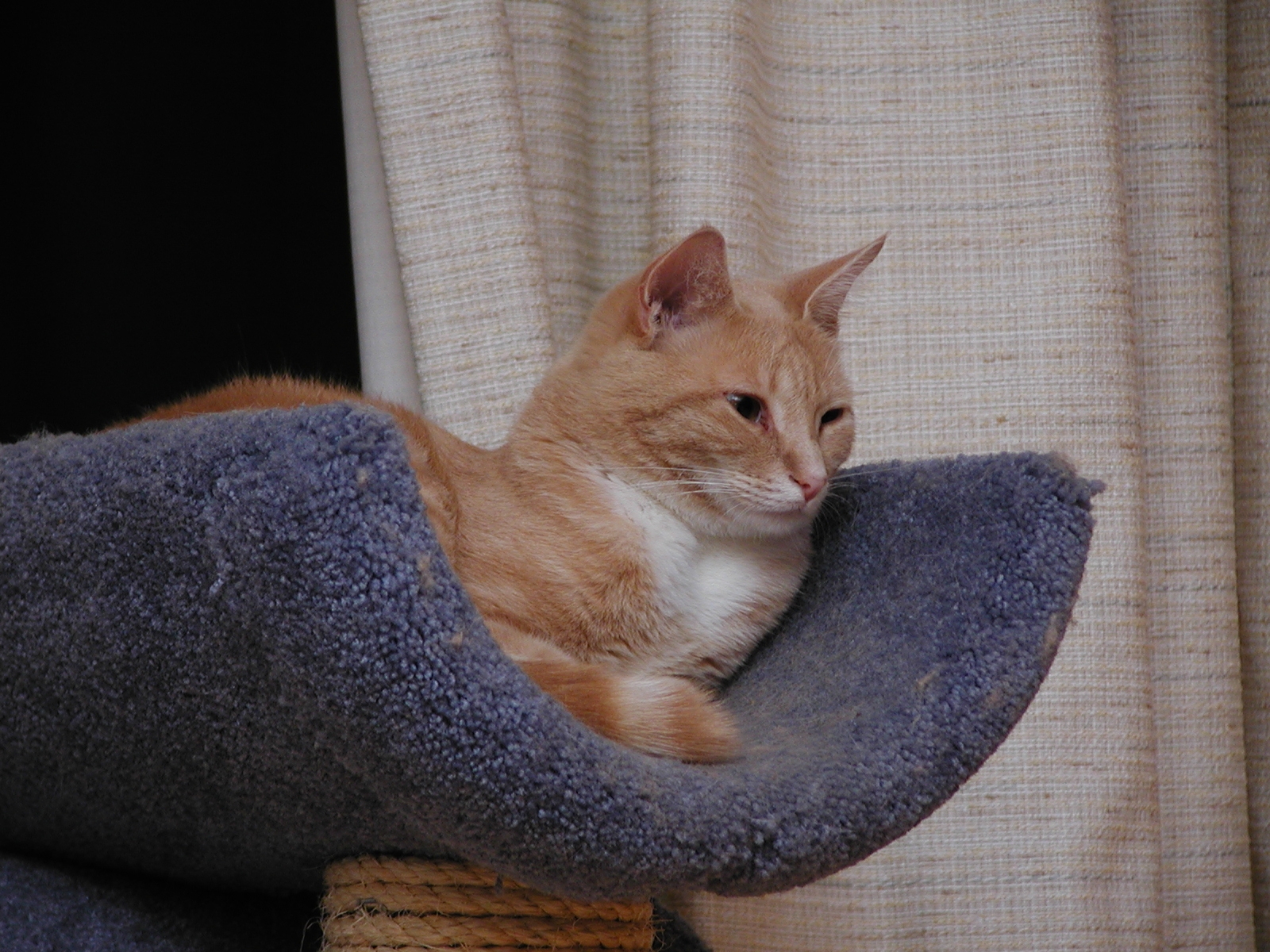 Picture #152: Purrgatory Small: 800x622, 115,865 bytes (114K), (html file) Large: 1600x1200, 1,557,276 bytes (1.5M), (html file) Copyright, Michael Meissner 2002, All rights reserved Olympus C-2100UZ camera f/3.5, ISO 100, 1/125 sec, 25.2mm, manual mode, SHQ, matrix metering 35mm equivalent focal length 140.0mm Taken by Michael Meissner on August 08, 2002 19:34:59 Last modified on August 09, 2002 at 01:20 Shutter speed of 1/125 or 1/250 may indicate use of flash |