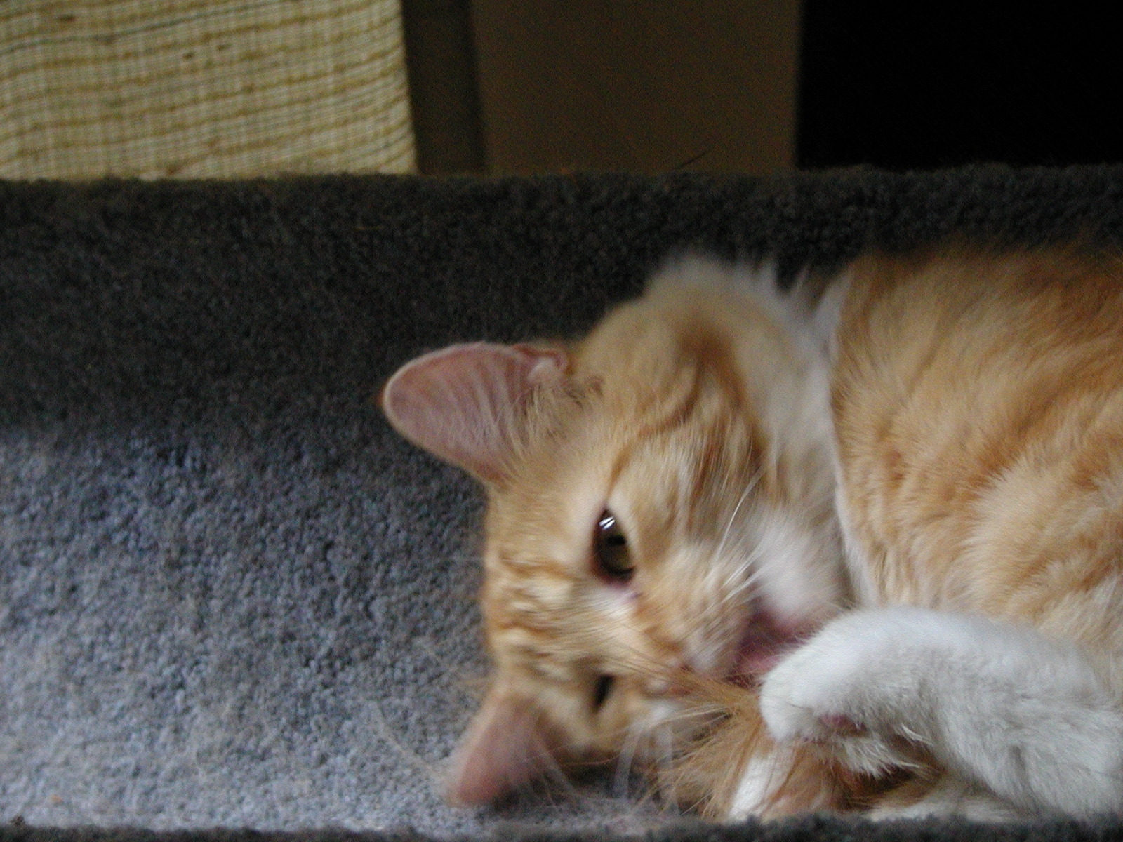 Picture #123: Got to keep that paw clean Small: 800x622, 104,886 bytes (103K), (html file) Large: 1600x1200, 1,494,100 bytes (1.4M), (html file) Copyright, Michael Meissner 2002, All rights reserved Olympus C-2100UZ camera f/5.6, ISO 100, 1/125 sec, 21.5mm, manual mode, SHQ, matrix metering 35mm equivalent focal length 119.0mm Taken by Michael Meissner on August 17, 2002 02:37:00 Last modified on August 18, 2002 at 00:41 Shutter speed of 1/125 or 1/250 may indicate use of flash |
