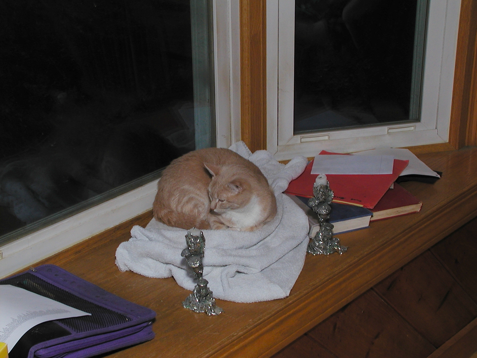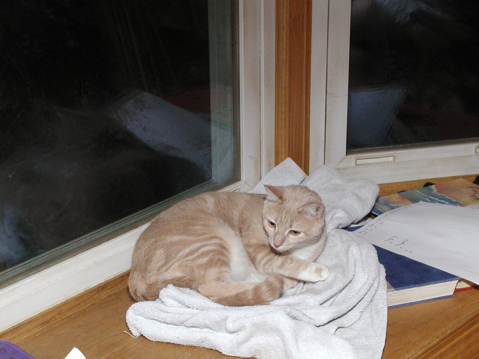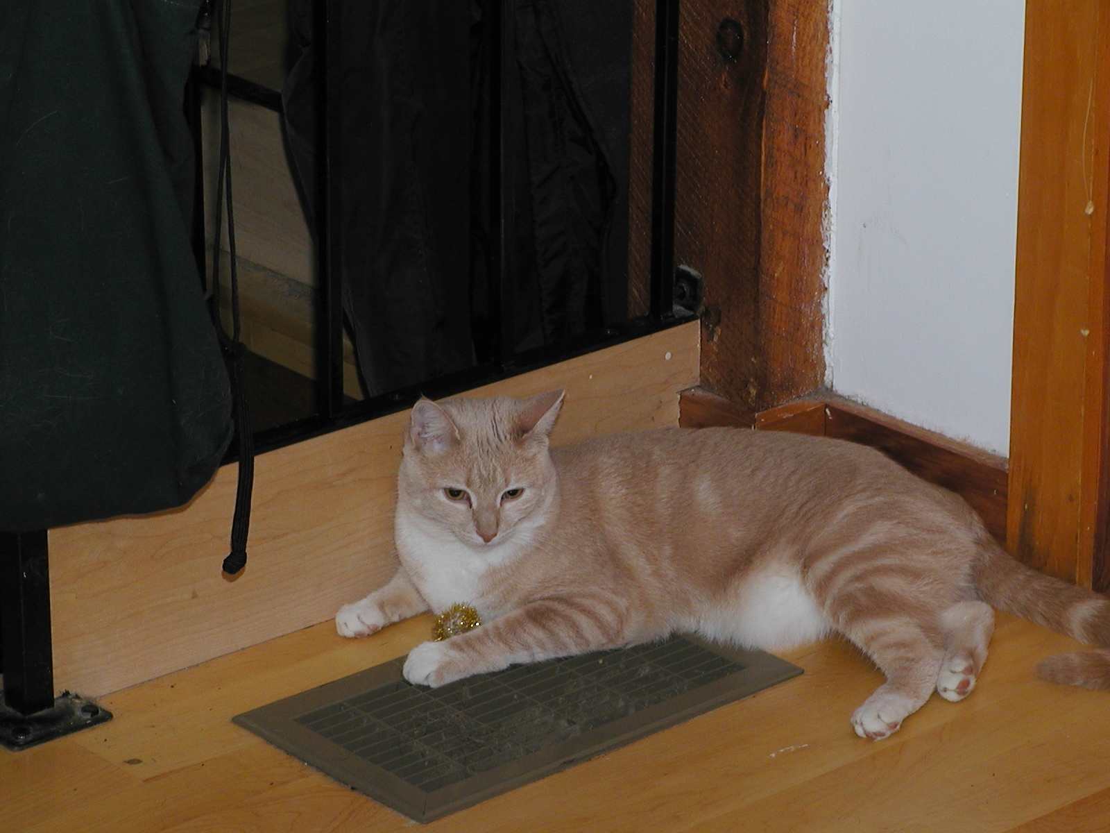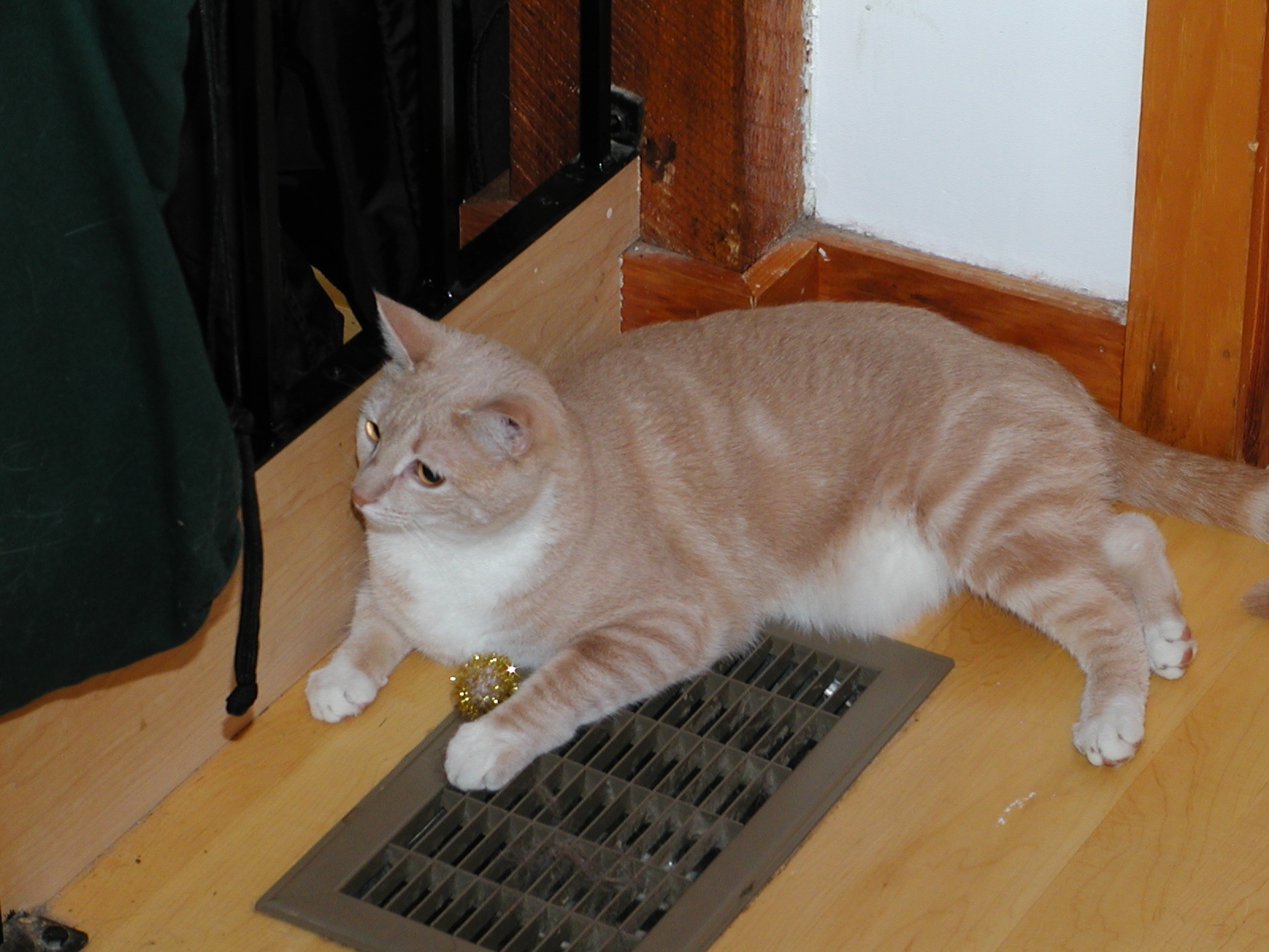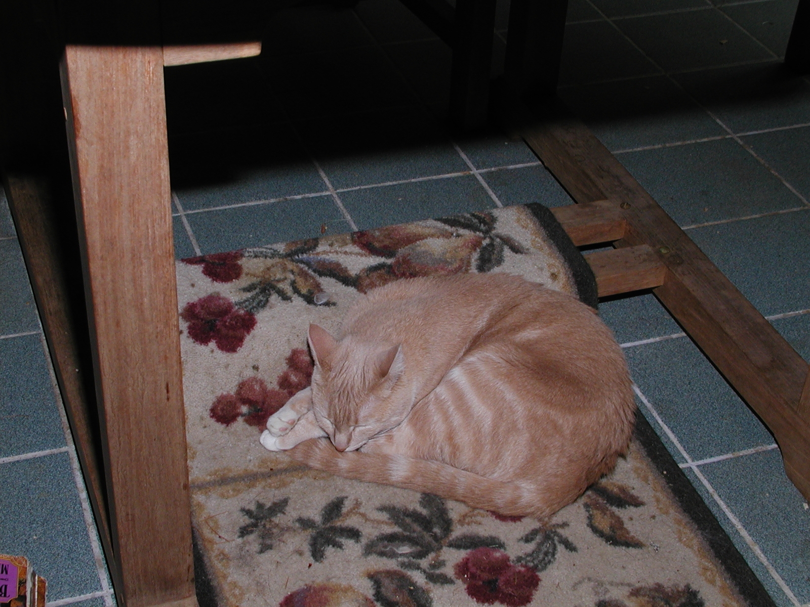 Picture #119: Fireplace kitty #2 Small: 800x622, 56,922 bytes (56K), (html file) Large: 1600x1200, 1,221,746 bytes (1.2M), (html file) Copyright, Michael Meissner 2002, All rights reserved Olympus C-2100UZ camera f/5.6, ISO 100, 1/125 sec, 20.0mm, manual mode, SHQ, matrix metering 35mm equivalent focal length 111.0mm Taken by Michael Meissner on August 17, 2002 02:50:03 Last modified on August 18, 2002 at 00:47 Shutter speed of 1/125 or 1/250 may indicate use of flash |