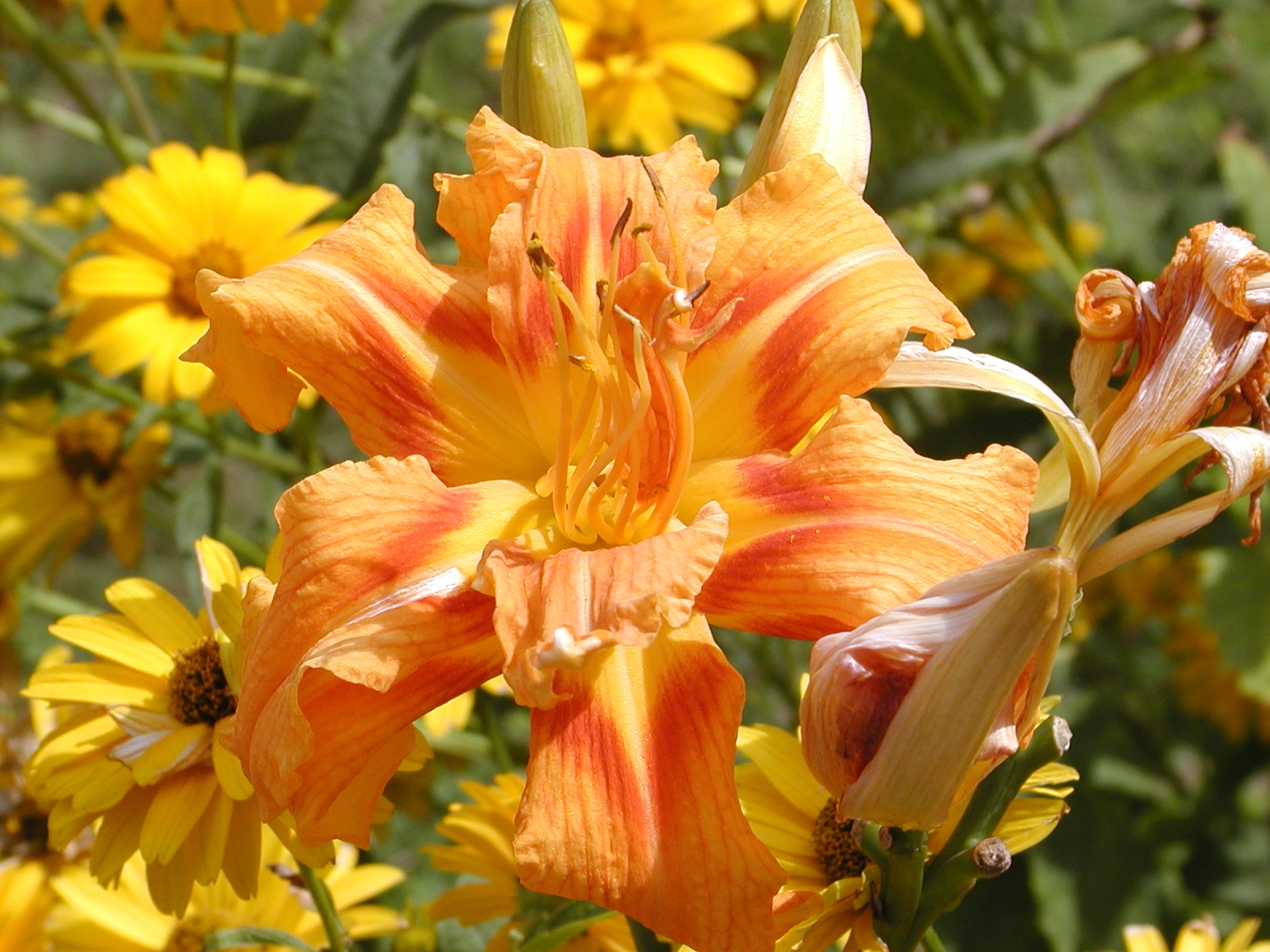 Picture #59: Black-eyed susans and dasies Small: 800x622, 179,545 bytes (176K), (html file) Large: 1600x1200, 1,259,190 bytes (1.2M), (html file) Copyright, Michael Meissner 2002, All rights reserved Olympus C-2100UZ camera f/5.6, ISO 100, 1/250 sec, 24.2mm, s-prog mode, SHQ, matrix metering, bias -0.7 35mm equivalent focal length 134.0mm Taken by Michael Meissner on August 28, 2002 13:55:21 Last modified on August 28, 2002 at 21:14 Shutter speed of 1/125 or 1/250 may indicate use of flash |
