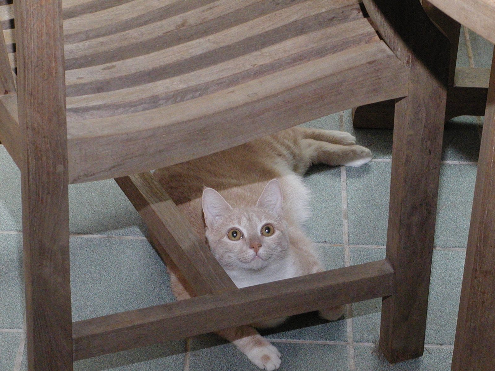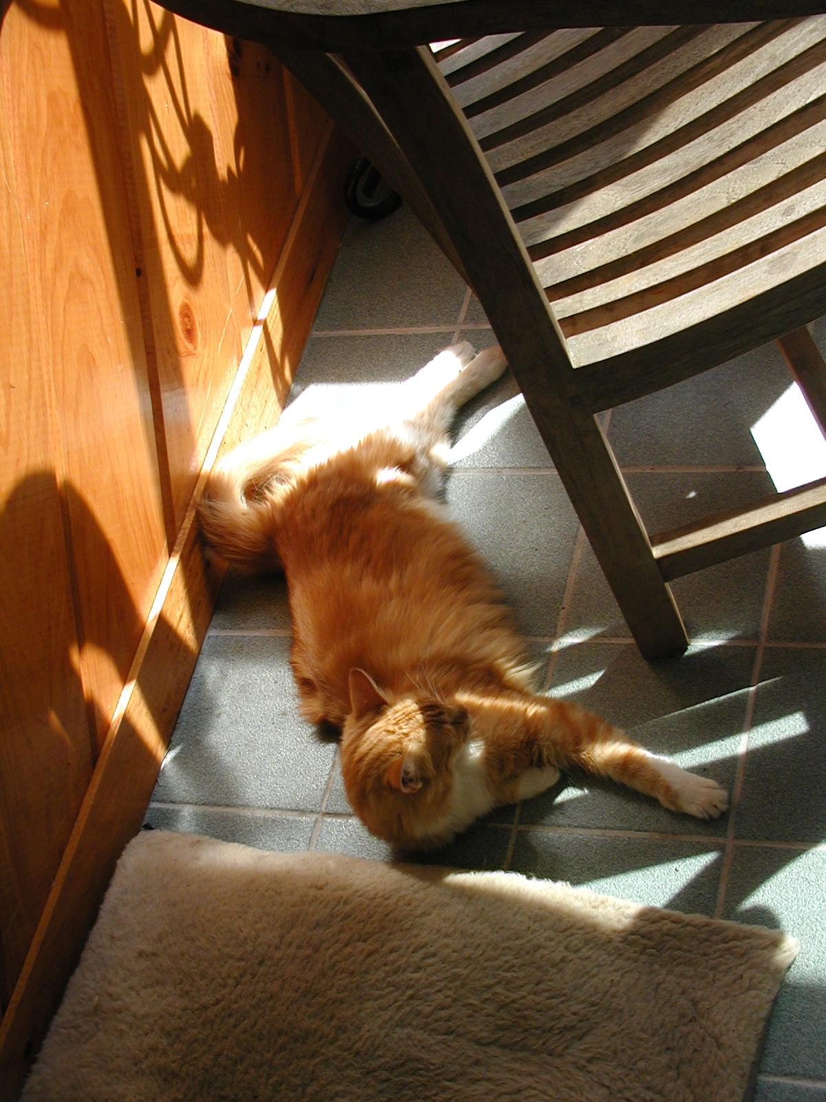Picture #135: Watch where you move that chair! #2 Small: 800x622, 83,727 bytes (82K), (html file) Large: 1600x1200, 1,519,046 bytes (1.4M), (html file) Copyright, Michael Meissner 2002, All rights reserved Olympus C-2100UZ camera f/5.6, ISO 400, 1/125 sec, 23.2mm, manual mode, SHQ, matrix metering 35mm equivalent focal length 129.0mm Taken by Michael Meissner on August 13, 2002 14:01:09 Last modified on August 13, 2002 at 16:23 Shutter speed of 1/125 or 1/250 may indicate use of flash |
