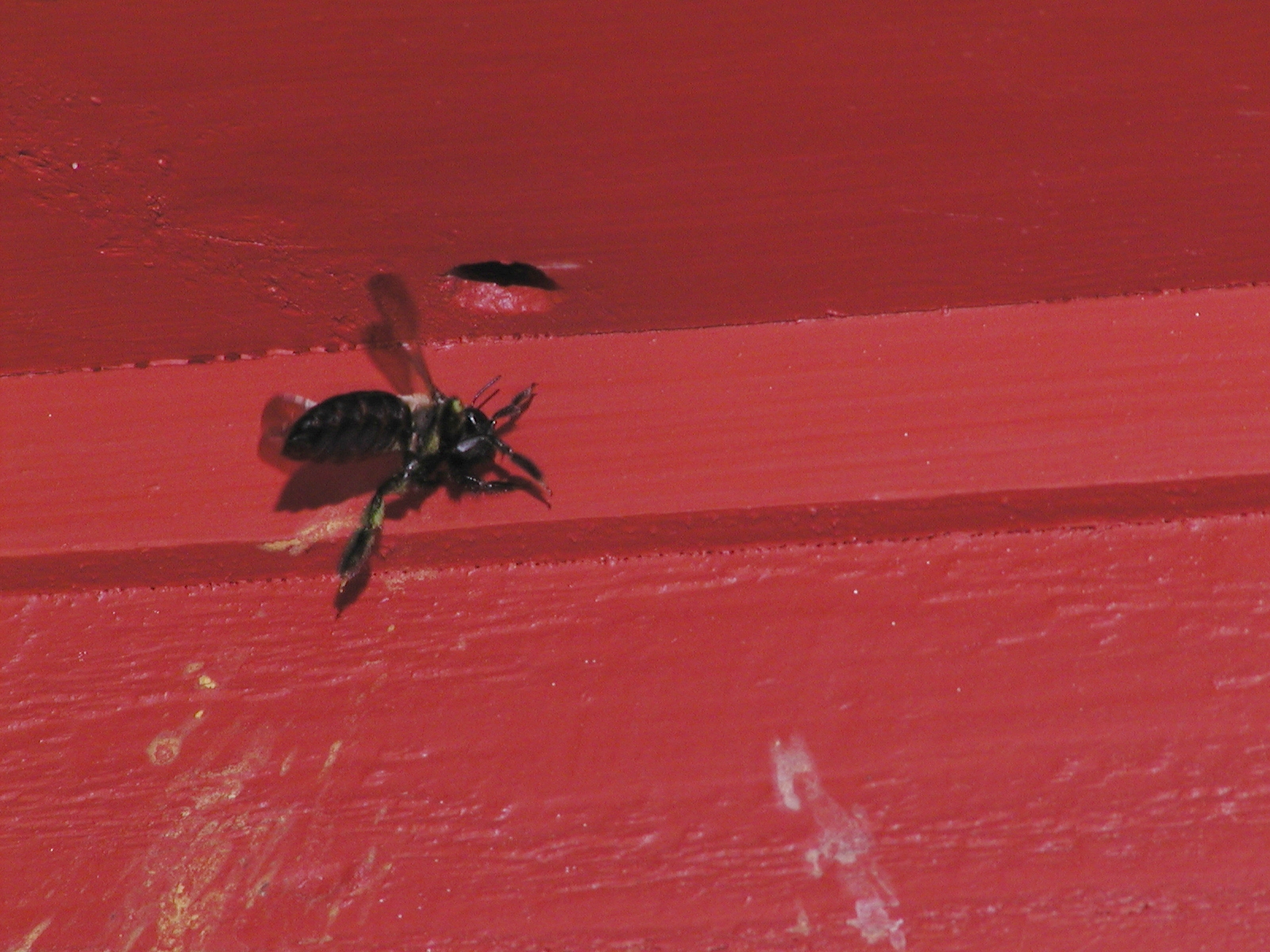 Picture #112: Hornet on our house Small: 800x622, 50,146 bytes (49K), (html file) Large: 1600x1200, 1,288,007 bytes (1.2M), (html file) Copyright, Michael Meissner 2002, All rights reserved Olympus C-2100UZ camera f/5.6, ISO 100, 1/125 sec, 70.0mm, manual mode, SHQ, matrix metering, macro 35mm equivalent focal length 388.0mm Taken by Michael Meissner on August 17, 2002 12:11:22 Last modified on August 18, 2002 at 00:58 Shutter speed of 1/125 or 1/250 may indicate use of flash |
