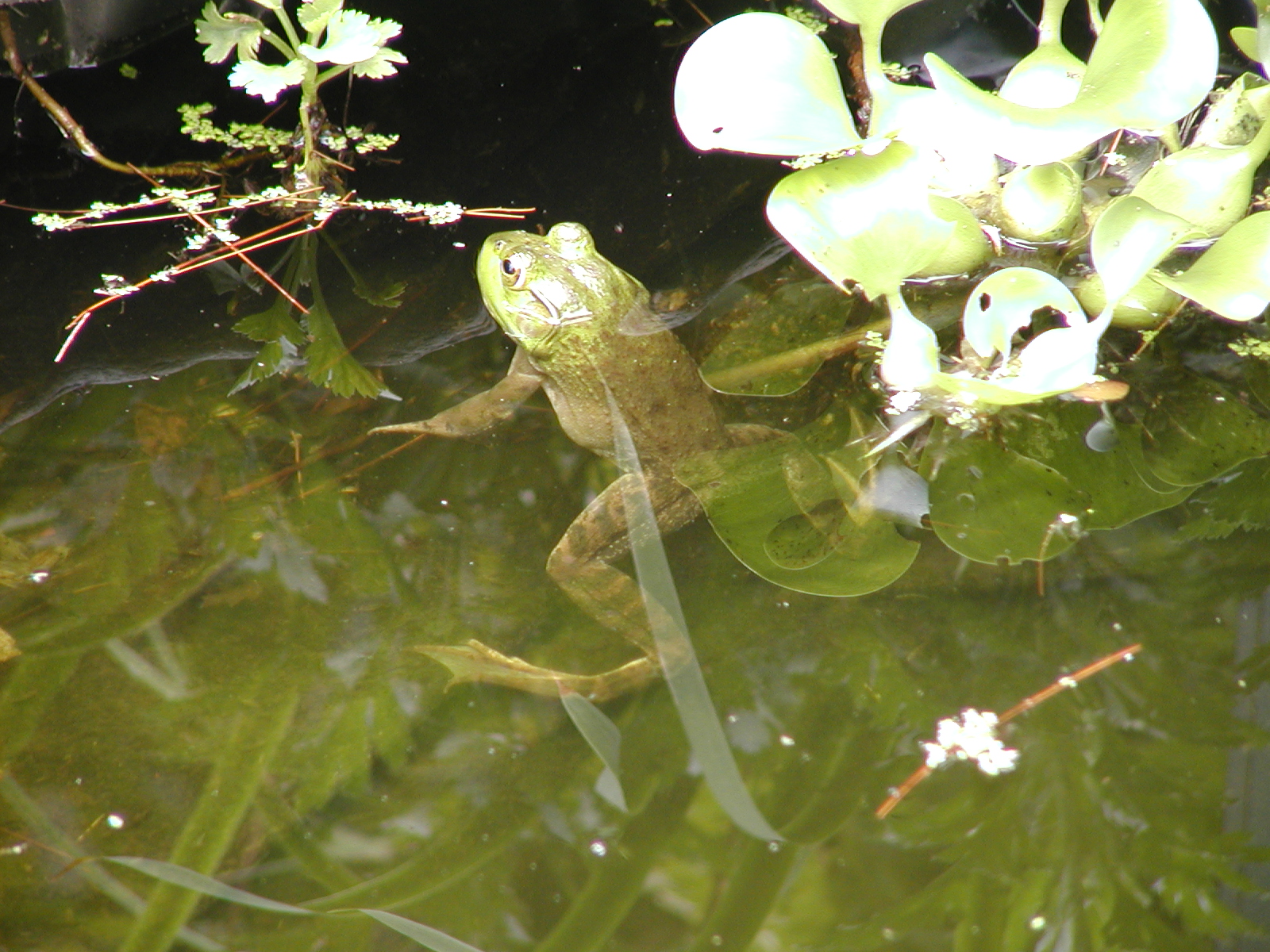 Picture #22: Frog at home in the frog pond #6 Small: 800x622, 76,794 bytes (75K), (html file) Large: 1600x1200, 1,089,205 bytes (1.0M), (html file) Copyright, Michael Meissner 2002, All rights reserved Olympus C-2100UZ camera f/2.8, ISO 100, 1/160 sec, 48.3mm, auto mode, SHQ, matrix metering, macro 35mm equivalent focal length 268.0mm Taken by Michael Meissner on August 28, 2002 14:15:21 Last modified on August 28, 2002 at 21:40 |