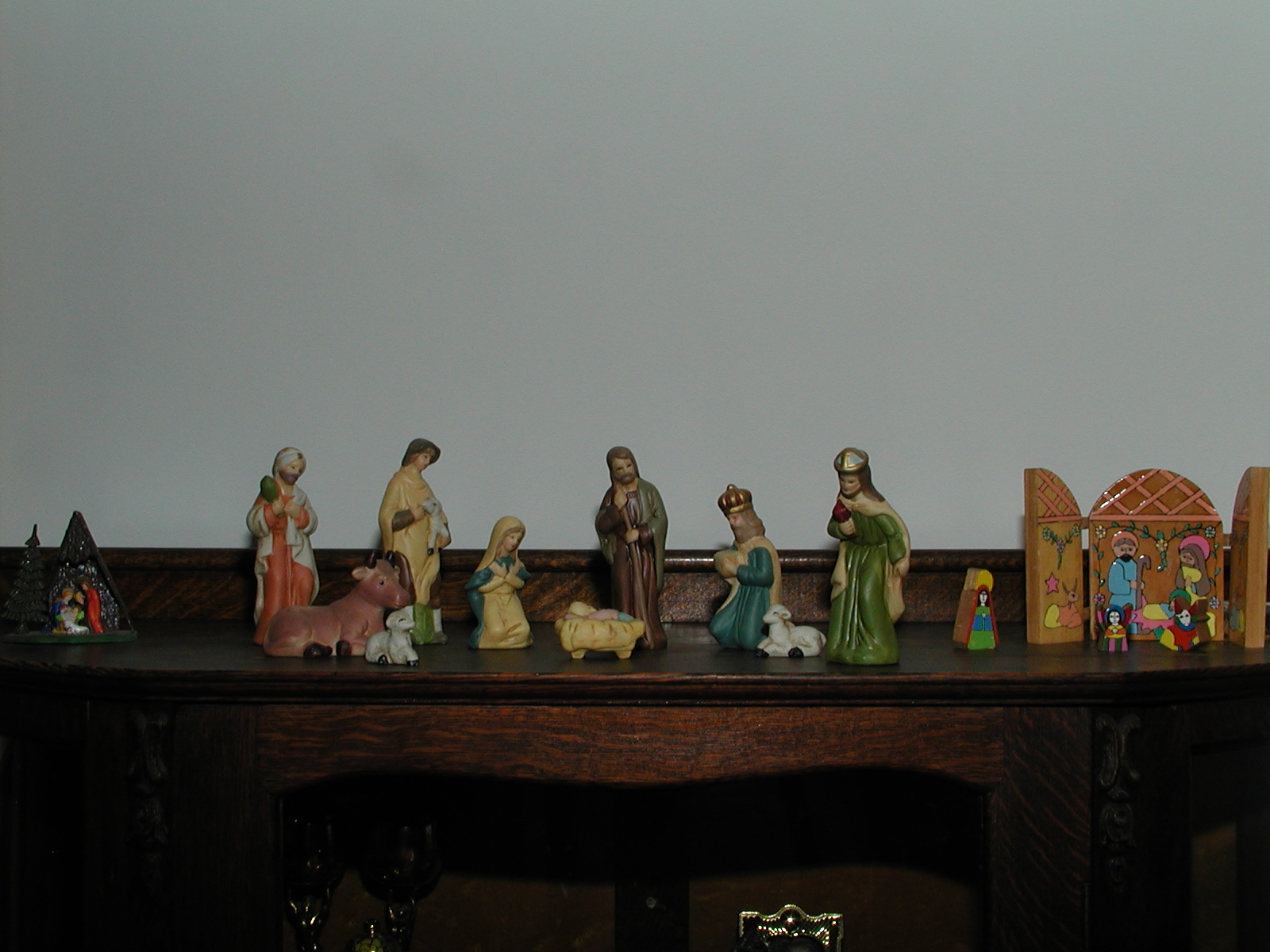 Picture #93: Christmas creche #2 Small: 800x622, 43,979 bytes (43K), (html file) Large: 1600x1200, 820,158 bytes (801K), (html file) Copyright, Michael Meissner 2002, All rights reserved Olympus C-2100UZ camera f/8.0, ISO 100, 1/40 sec, 9.0mm, aperture priority, SHQ, cloudy, matrix metering 35mm equivalent focal length 50.0mm Taken by Michael Meissner on December 03, 2002 23:33:06 Last modified on December 04, 2002 at 07:30 |
