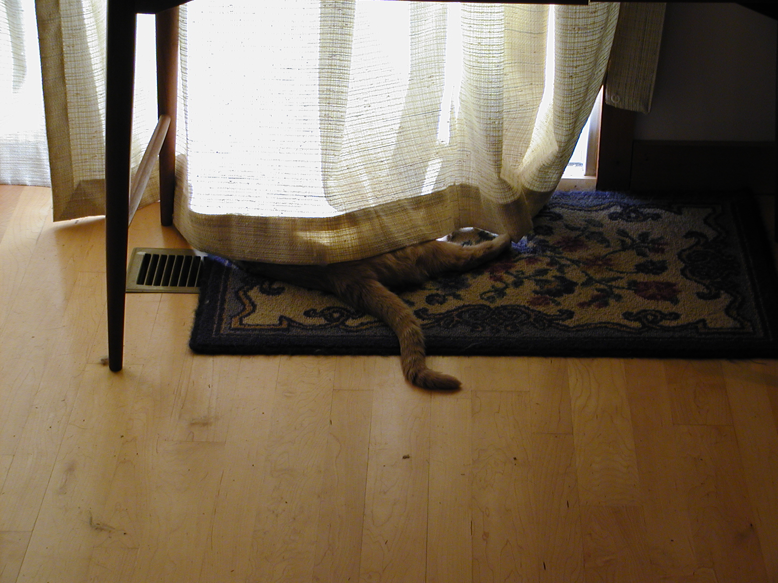 Picture #88: I know there is a cat in there somewhere... Small: 800x622, 70,094 bytes (69K), (html file) Large: 1600x1200, 1,102,330 bytes (1.1M), (html file) Copyright, Michael Meissner 2002, All rights reserved Olympus C-2100UZ camera f/2.8, ISO 100, 1/60 sec, 15.2mm, auto mode, SHQ, matrix metering 35mm equivalent focal length 84.0mm Taken by Michael Meissner on December 15, 2002 14:06:41 Last modified on December 16, 2002 at 07:53 |