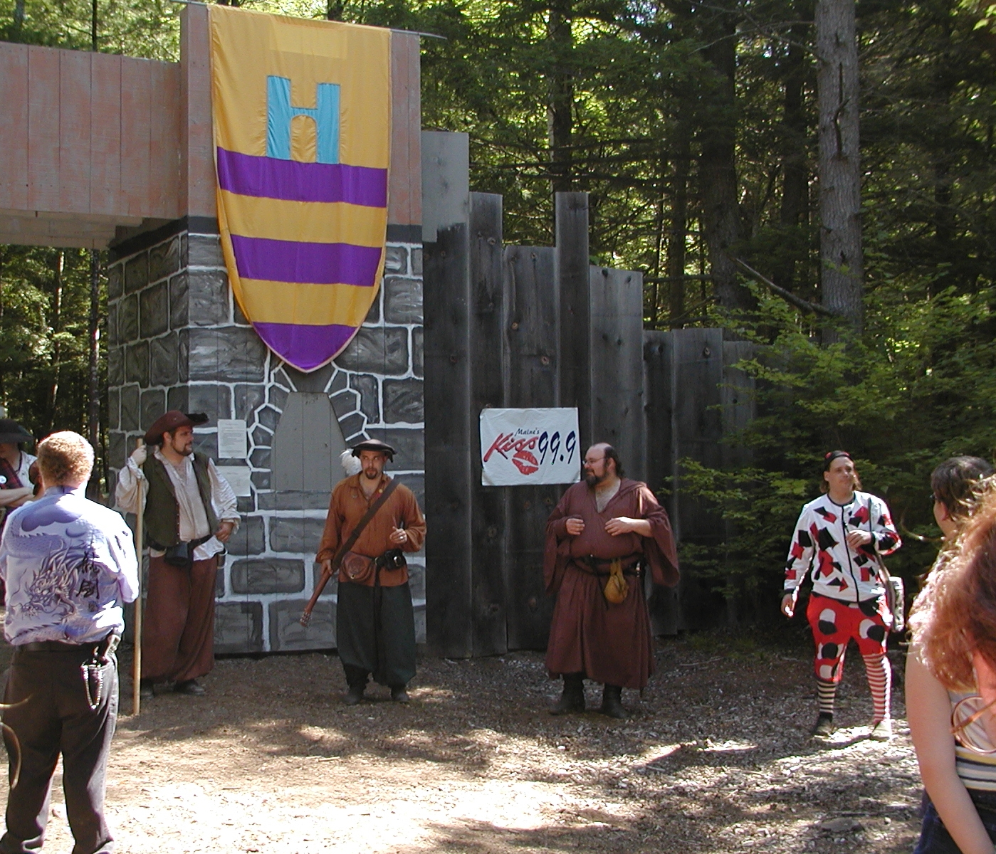 Picture #3: Alan a Dale, Little John, and Friar Tuck at the front gate Small: 800x622, 154,268 bytes (151K), (html file) Large: 1600x1200, 1,614,957 bytes (1.5M), (html file) Copyright, Michael Meissner 2002, All rights reserved Olympus C-2100UZ camera f/2.8, ISO 100, 1/320 sec, 7.0mm, auto mode, SHQ, matrix metering, bias -0.7 35mm equivalent focal length 39.0mm Taken by Michael Meissner on August 03, 2002 09:59:59 Last modified on August 04, 2002 at 21:29 |
