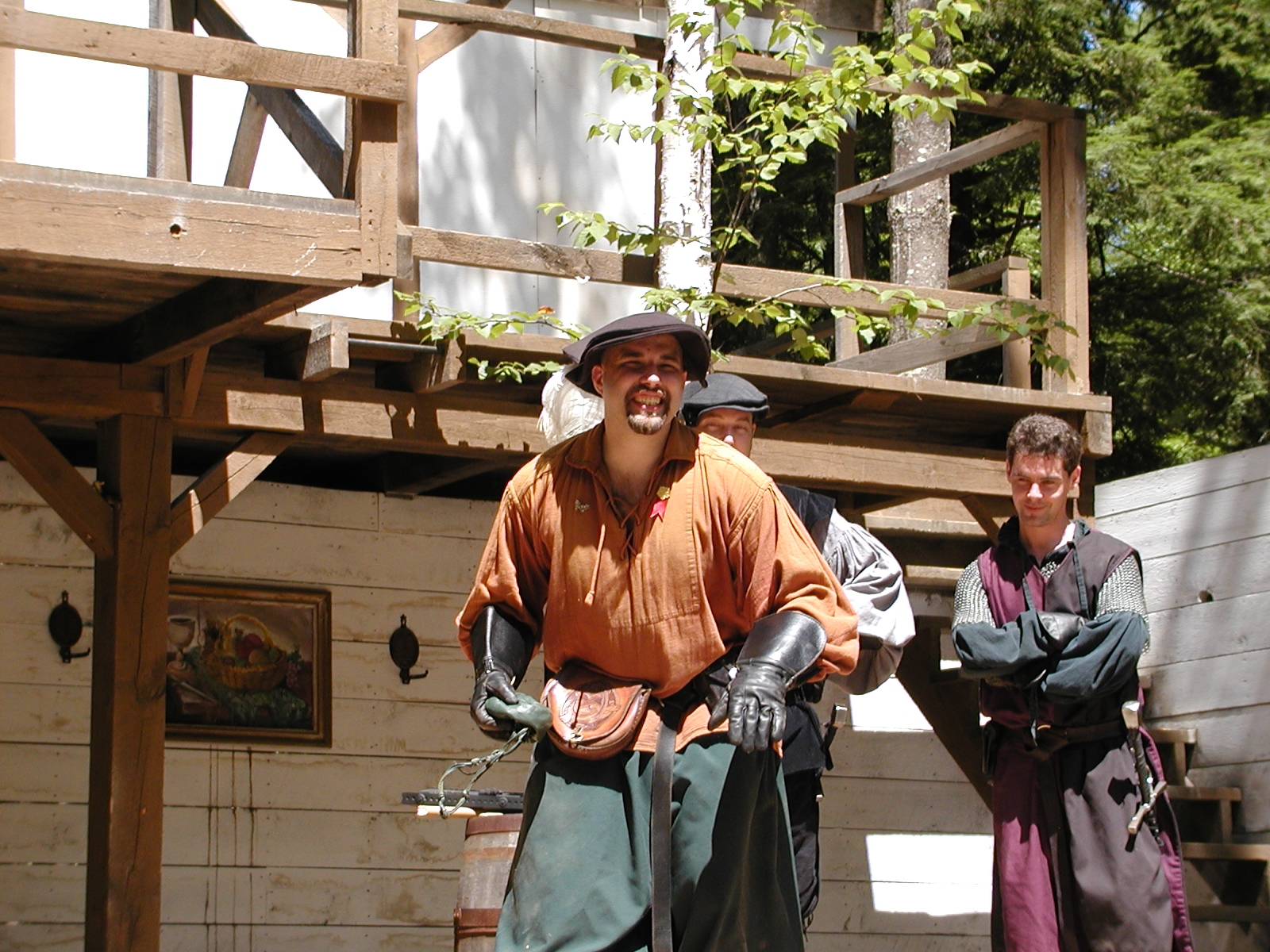 Picture #5: Little John, Friar Tuck, and Alan a Dale at the front gate #2 Small: 800x622, 69,259 bytes (68K), (html file) Large: 1600x1200, 1,111,519 bytes (1.1M), (html file) Copyright, Michael Meissner 2002, All rights reserved Olympus C-2100UZ camera f/2.8, ISO 100, 1/400 sec, 26.2mm, auto mode, SHQ, matrix metering, bias -0.7 35mm equivalent focal length 145.0mm Taken by Michael Meissner on August 03, 2002 10:00:39 Last modified on August 04, 2002 at 21:36 |