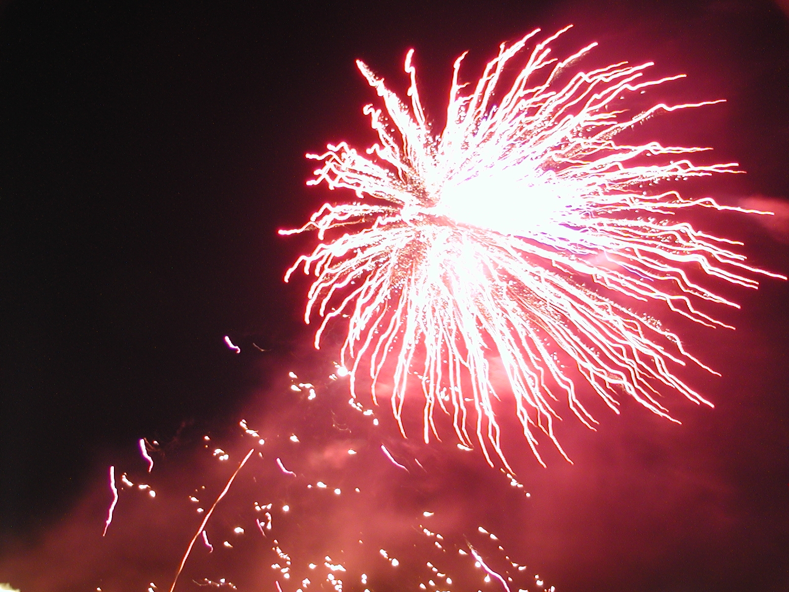 Picture #11: Fireworks #4 Small: 800x622, 72,410 bytes (71K), (html file) Large: 1600x1200, 1,221,054 bytes (1.2M), (html file) Copyright, Michael Meissner 2002, All rights reserved Olympus C-2100UZ camera f/2.8, ISO 100, 1.6 sec, 11.6mm, manual mode, SHQ, matrix metering 35mm equivalent focal length 64.0mm Taken by Michael Meissner on July 04, 2002 22:00:06 Last modified on July 10, 2002 at 00:00 |