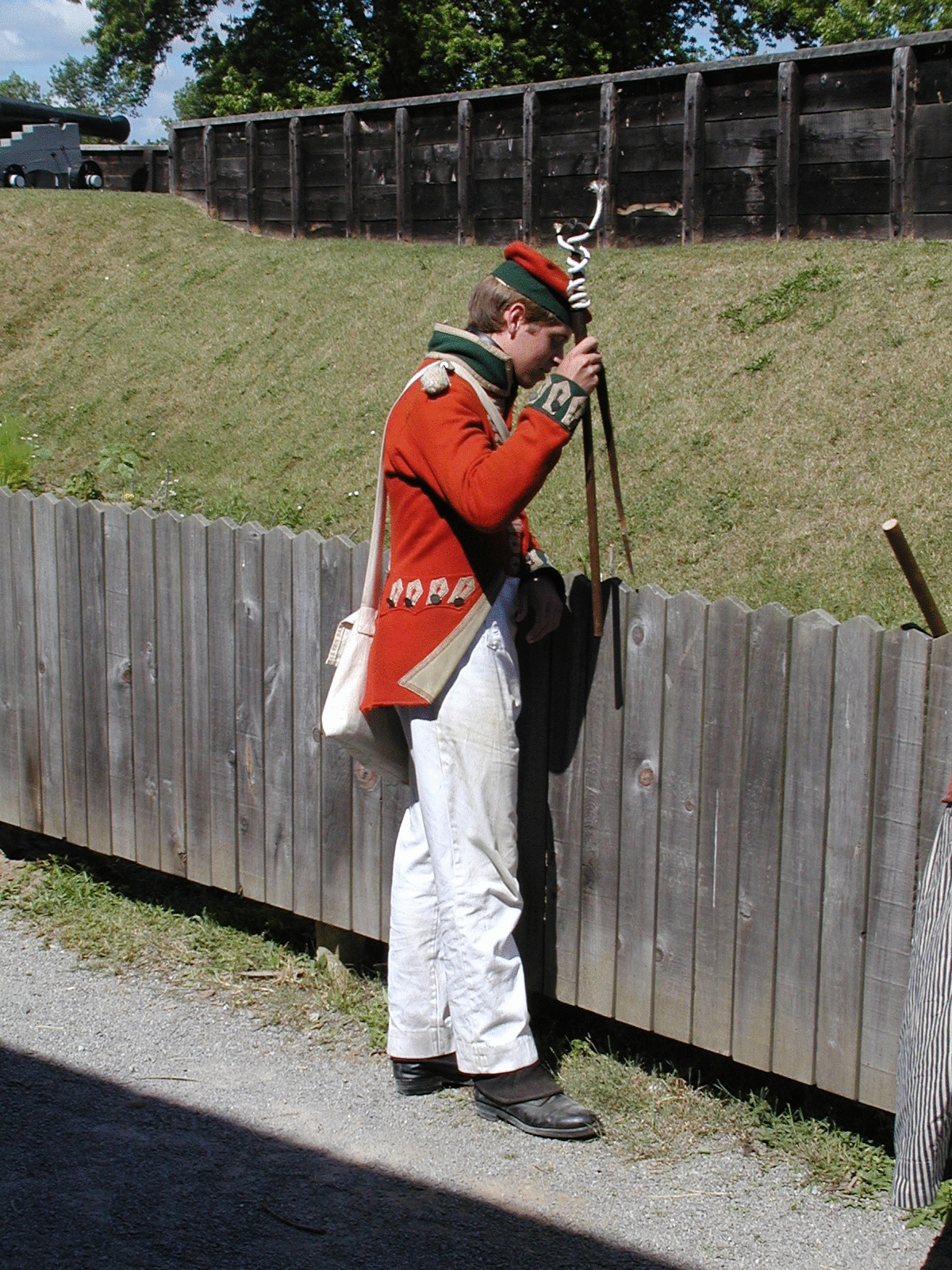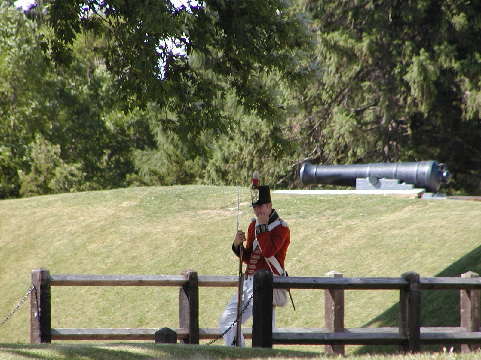 Picture #29: Interpreter dressed as a British redcoat Small: 800x622, 113,895 bytes (112K), (html file) Large: 1600x1200, 1,489,472 bytes (1.4M), (html file) Copyright, Michael Meissner 2002, All rights reserved Olympus C-2100UZ camera f/3.5, ISO 100, 1/500 sec, 65.2mm, auto mode, SHQ, matrix metering 35mm equivalent focal length 362.0mm Taken by Michael Meissner on July 05, 2002 10:10:44 Last modified on July 09, 2002 at 21:25 |