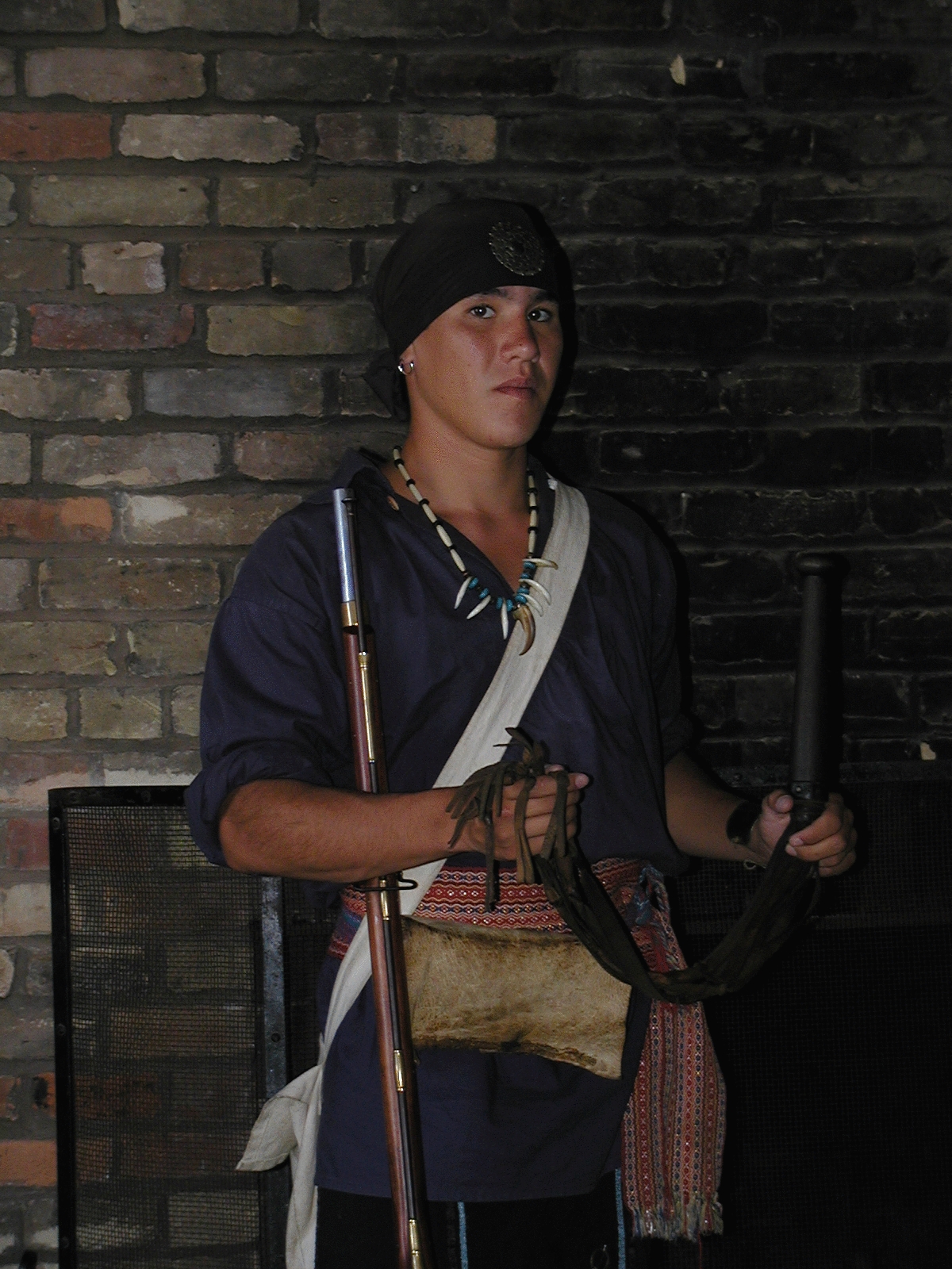 Picture #30: Tour guide representing an Iroquois warrier Small: 600x844, 163,442 bytes (160K), (html file) Large: 1200x1600, 1,889,367 bytes (1.8M), (html file) Copyright, Michael Meissner 2002, All rights reserved Olympus C-2100UZ camera f/3.5, ISO 100, 1/500 sec, 11.0mm, auto mode, SHQ, matrix metering, bias 0.7 35mm equivalent focal length 61.0mm Taken by Michael Meissner on July 05, 2002 10:06:04 Last modified on July 09, 2002 at 21:24 |