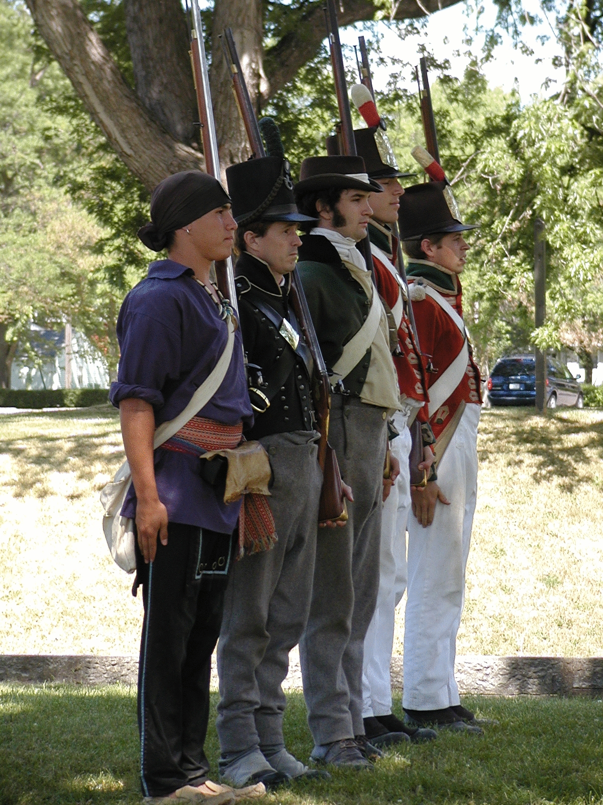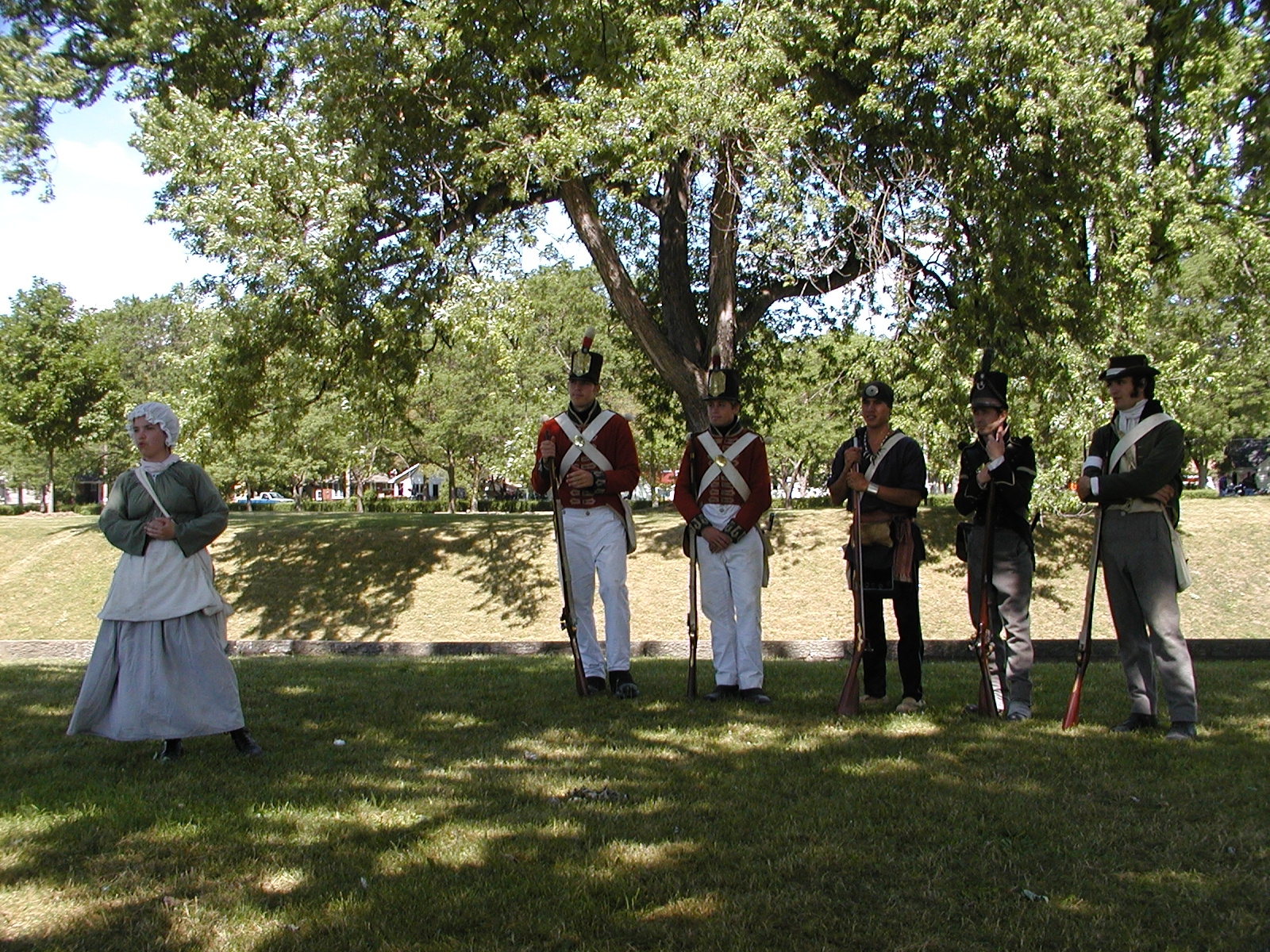 Picture #12: Interpreters dressed as soldier's wife, British redcoats, Iroquois warrier, Canadian warrier, Canadian militia Small: 800x644, 177,835 bytes (174K), (html file) Large: 1600x1200, 1,703,871 bytes (1.6M), (html file) Copyright, Michael Meissner 2002, All rights reserved Olympus C-2100UZ camera f/3.5, ISO 100, 1/650 sec, 8.8mm, auto mode, SHQ, matrix metering 35mm equivalent focal length 49.0mm Taken by Michael Meissner on July 05, 2002 11:05:12 Last modified on July 09, 2002 at 22:53 |