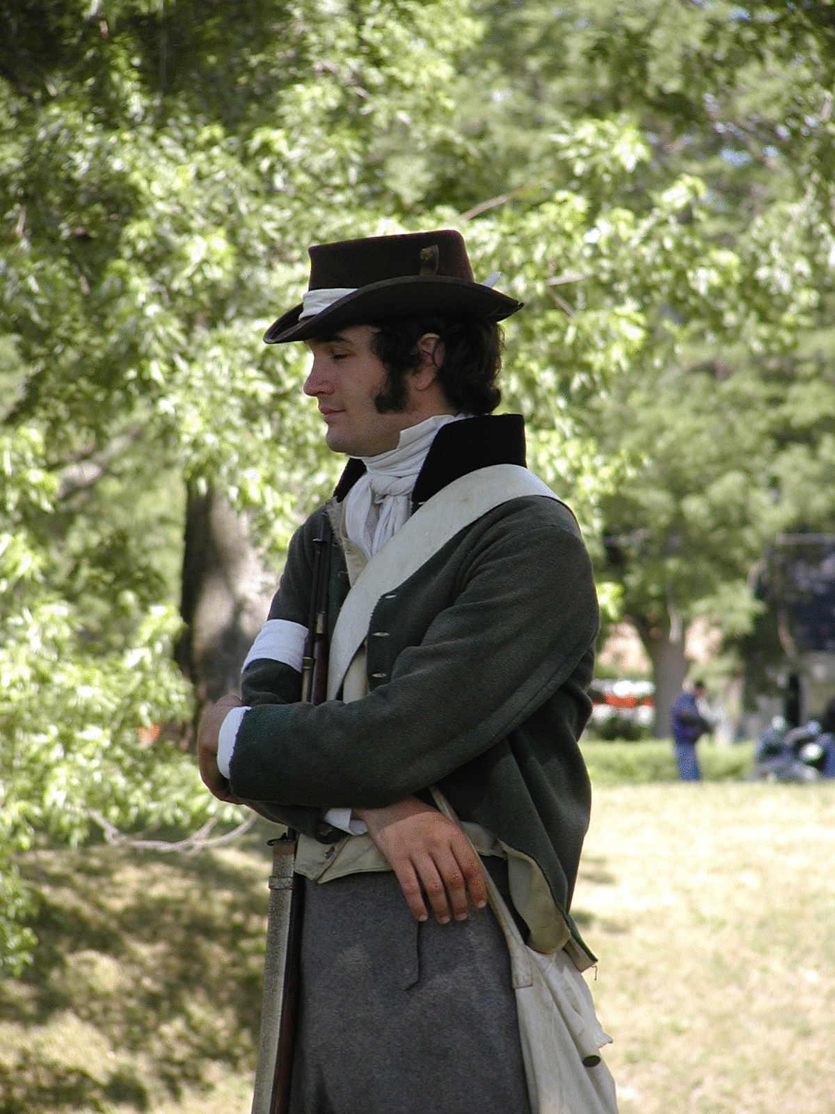Picture #2: Costumed interpreter Small: 600x822, 125,655 bytes (123K), (html file) Large: 1200x1600, 1,720,883 bytes (1.6M), (html file) Copyright, Michael Meissner 2002, All rights reserved Olympus C-2100UZ camera f/4.5, ISO 100, 1/650 sec, 13.0mm, auto mode, SHQ, matrix metering 35mm equivalent focal length 72.0mm Taken by Michael Meissner on July 05, 2002 11:17:39 Last modified on July 09, 2002 at 23:11 |