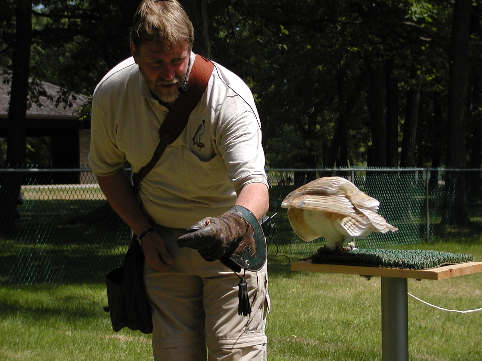 Picture #6: Barn owl demonstration #3 Small: 800x622, 88,451 bytes (87K), (html file) Large: 1600x1200, 1,268,178 bytes (1.2M), (html file) Copyright, Michael Meissner 2002, All rights reserved Olympus C-2100UZ camera f/2.8, ISO 100, 1/500 sec, 17.9mm, s-prog mode, SHQ, matrix metering 35mm equivalent focal length 99.0mm Taken by Michael Meissner on July 04, 2002 11:51:05 Last modified on July 05, 2002 at 23:25 |