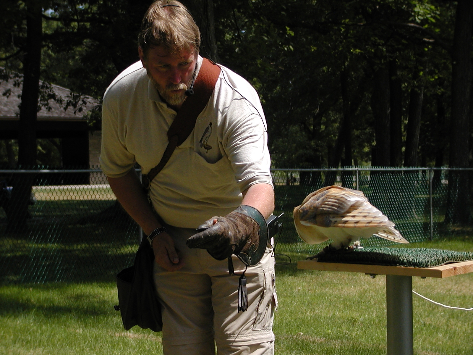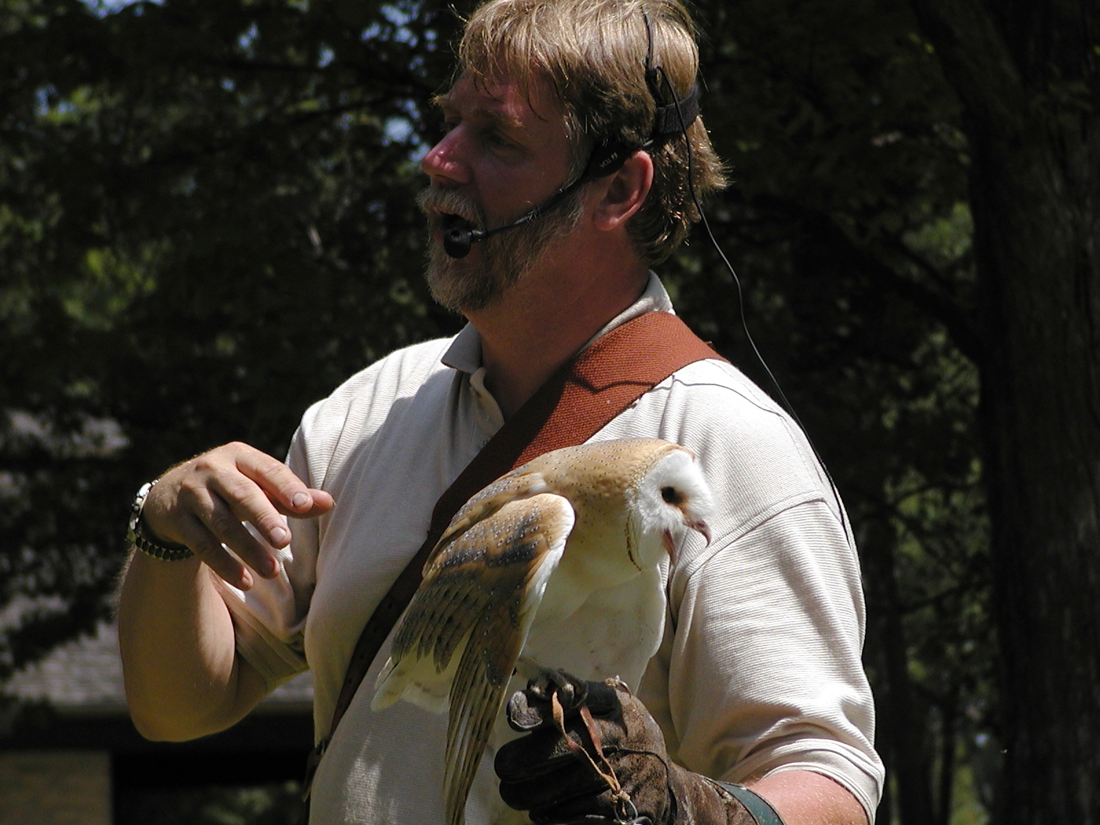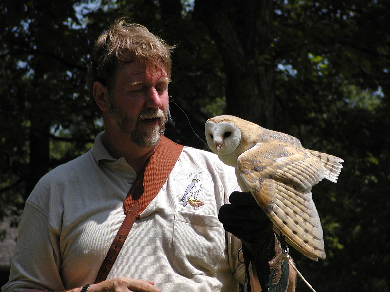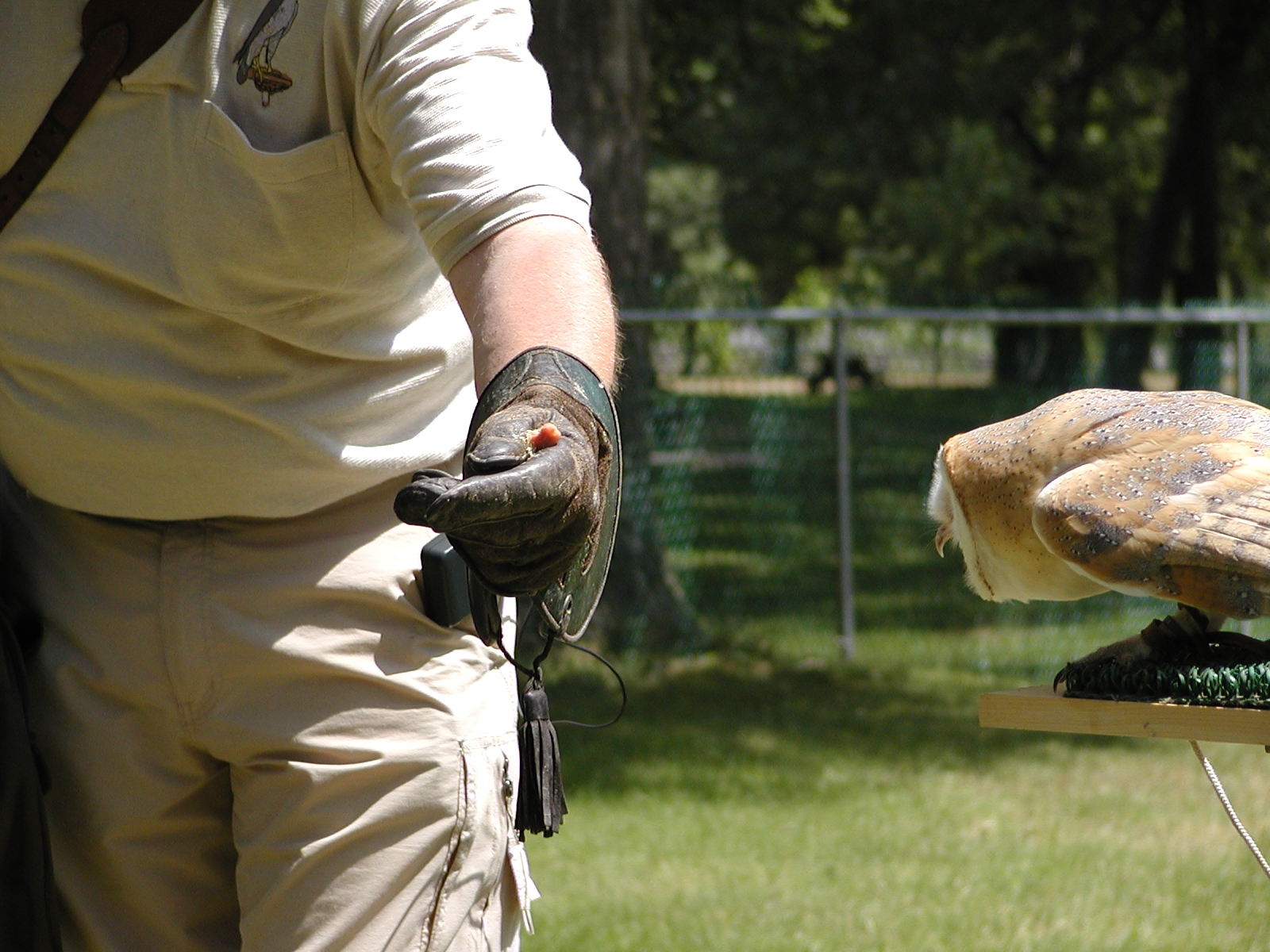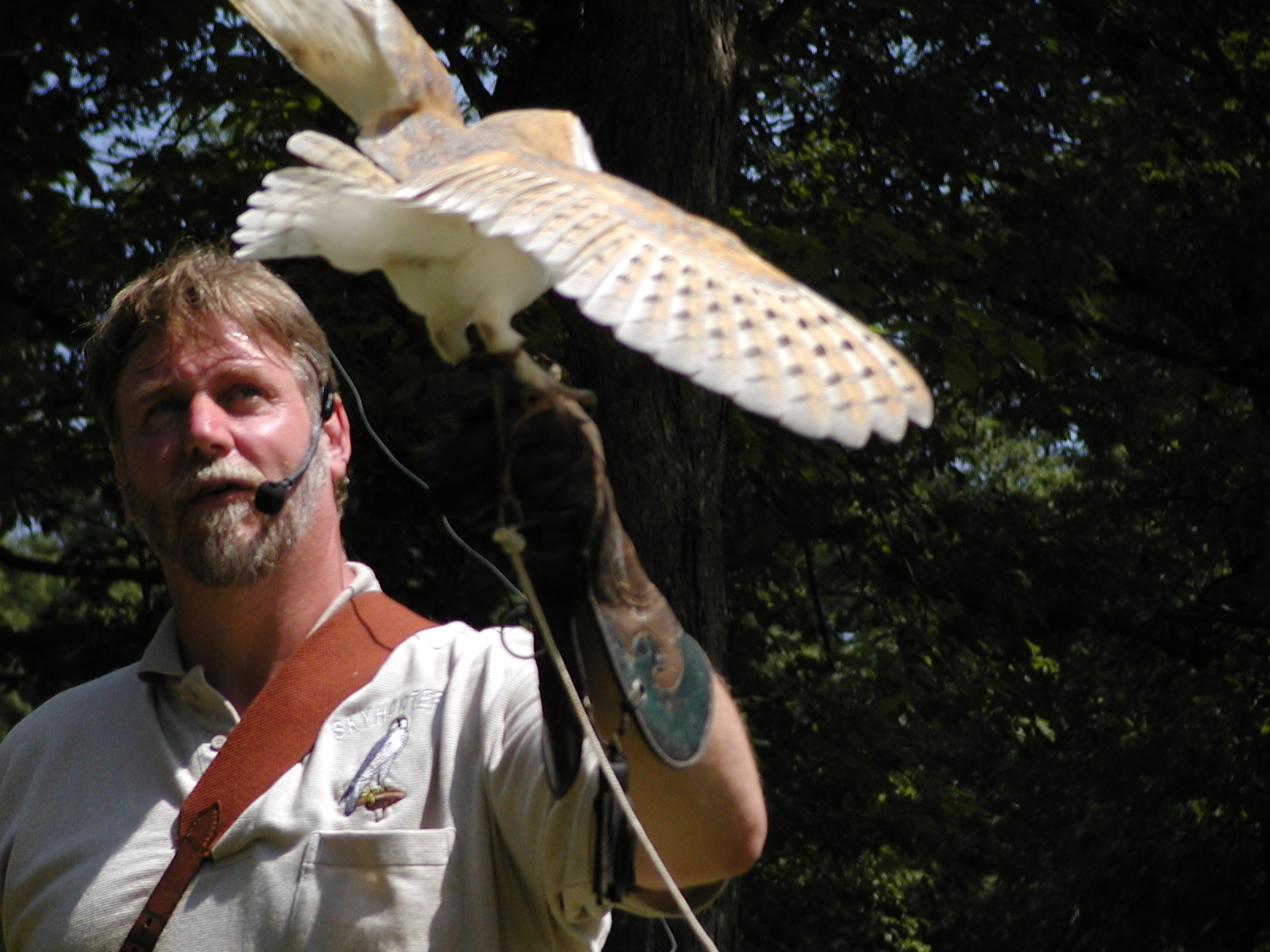 Picture #5: Barn owl demonstration #2 Small: 800x622, 89,348 bytes (88K), (html file) Large: 1600x1200, 1,273,776 bytes (1.2M), (html file) Copyright, Michael Meissner 2002, All rights reserved Olympus C-2100UZ camera f/2.8, ISO 100, 1/500 sec, 17.9mm, s-prog mode, SHQ, matrix metering 35mm equivalent focal length 99.0mm Taken by Michael Meissner on July 04, 2002 11:51:05 Last modified on July 05, 2002 at 23:24 |