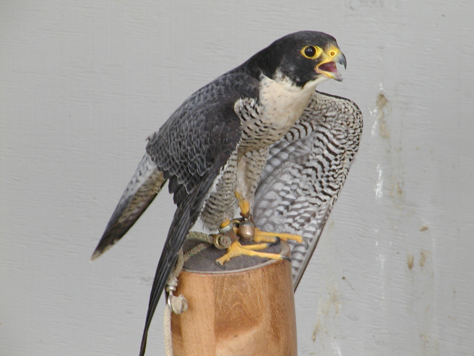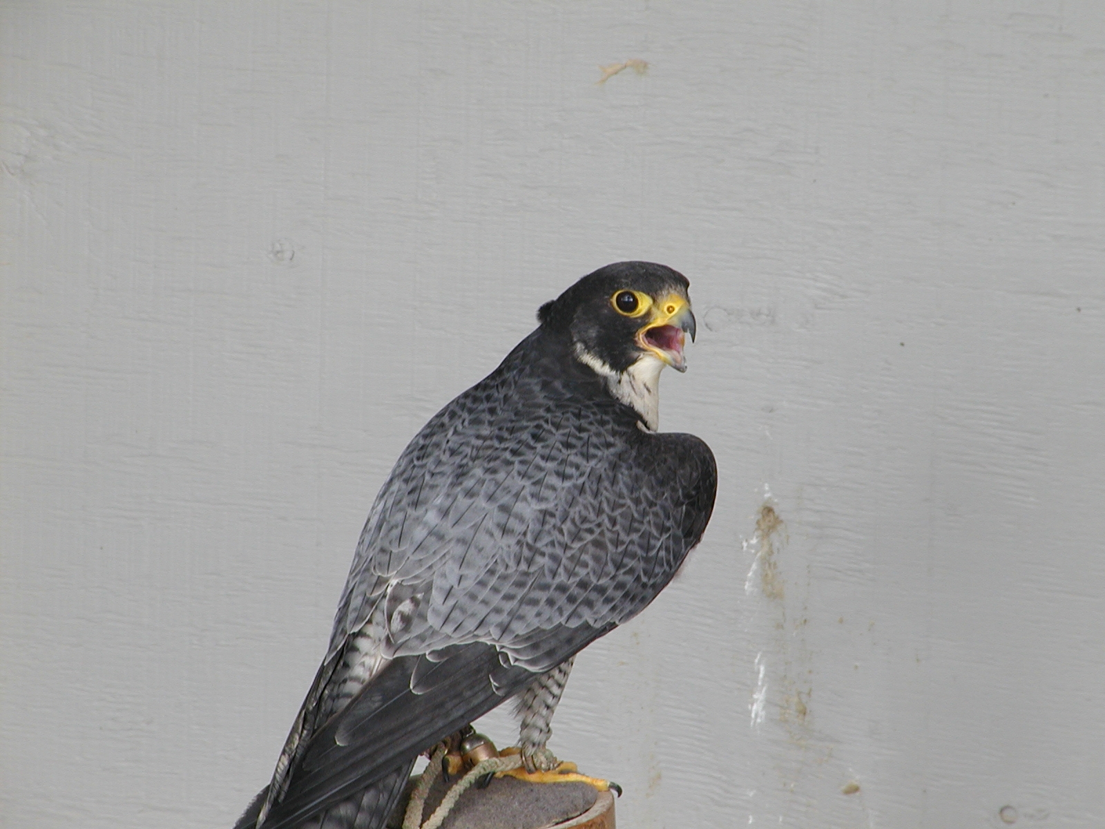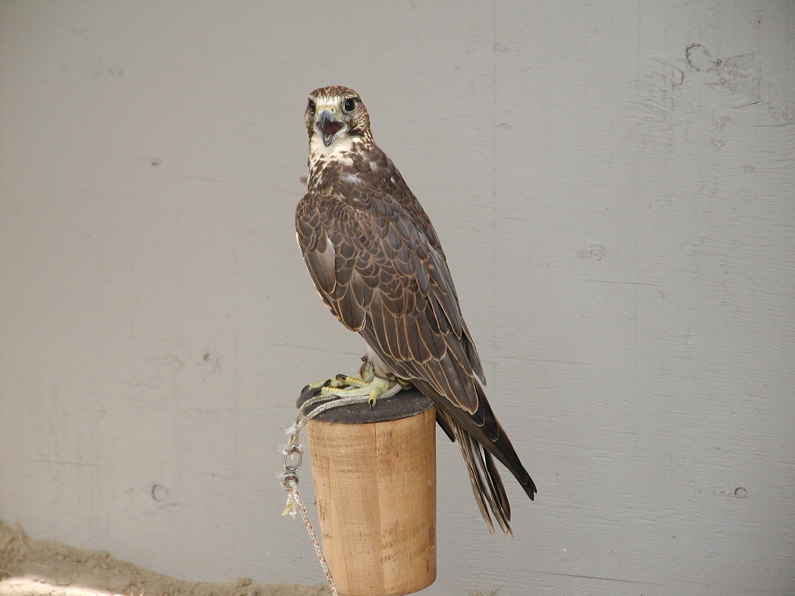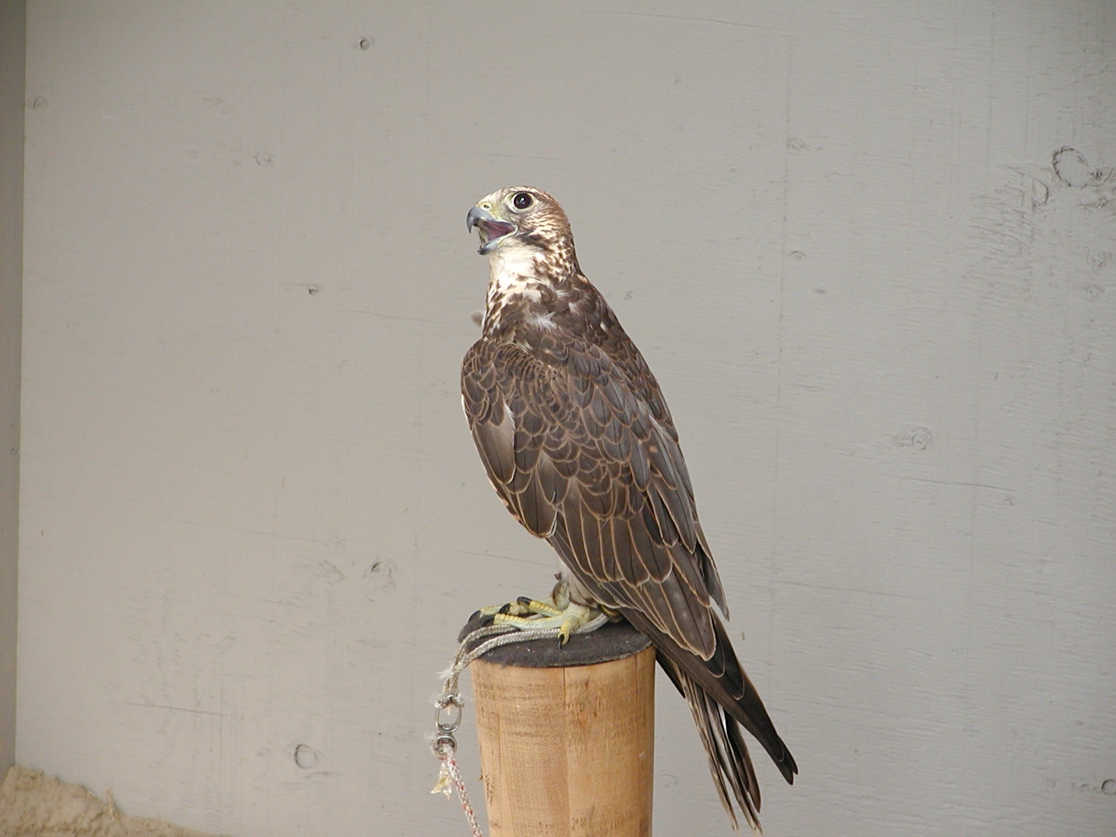 Picture #2: Saker falcon #2 Small: 800x622, 47,162 bytes (47K), (html file) Large: 1600x1200, 1,094,377 bytes (1.0M), (html file) Copyright, Michael Meissner 2002, All rights reserved Olympus C-2100UZ camera f/2.8, ISO 100, 1/250 sec, 32.5mm, s-prog mode, SHQ, matrix metering 35mm equivalent focal length 180.0mm Taken by Michael Meissner on July 04, 2002 10:54:27 Last modified on July 09, 2002 at 12:37 Shutter speed of 1/125 or 1/250 may indicate use of flash |