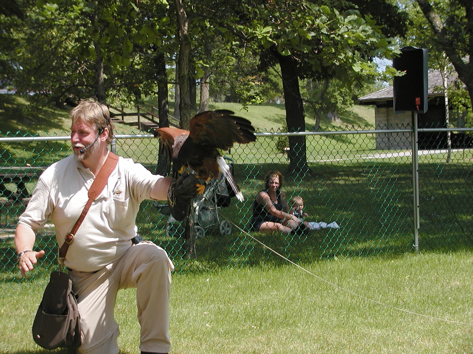 Picture #6: Harris hawk demonstration #2 Small: 800x622, 146,307 bytes (143K), (html file) Large: 1600x1200, 1,845,187 bytes (1.8M), (html file) Copyright, Michael Meissner 2002, All rights reserved Olympus C-2100UZ camera f/2.8, ISO 100, 1/320 sec, 13.0mm, s-prog mode, SHQ, matrix metering 35mm equivalent focal length 72.0mm Taken by Michael Meissner on July 04, 2002 11:44:55 Last modified on July 09, 2002 at 12:55 |