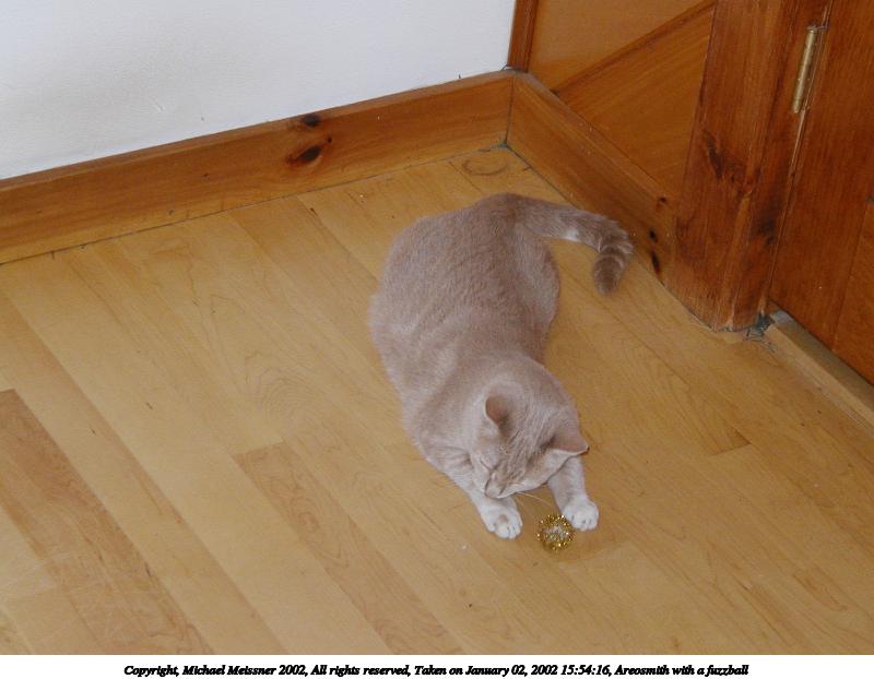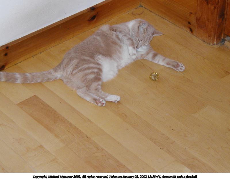 Picture #2: Areosmith with a fuzzball #2 800x622, 54,037 bytes (53K), (html file) Copyright, Michael Meissner 2002, All rights reserved Olympus D-510Z camera f/4.4, ISO 200, flash, 1/100 sec, 15.7mm, auto mode, HQ, spot metering 35mm equivalent focal length 102.0mm Taken by Michael Meissner on January 02, 2002 15:54:16 Last modified on June 06, 2002 at 22:39 |