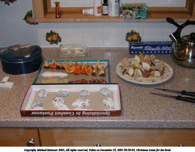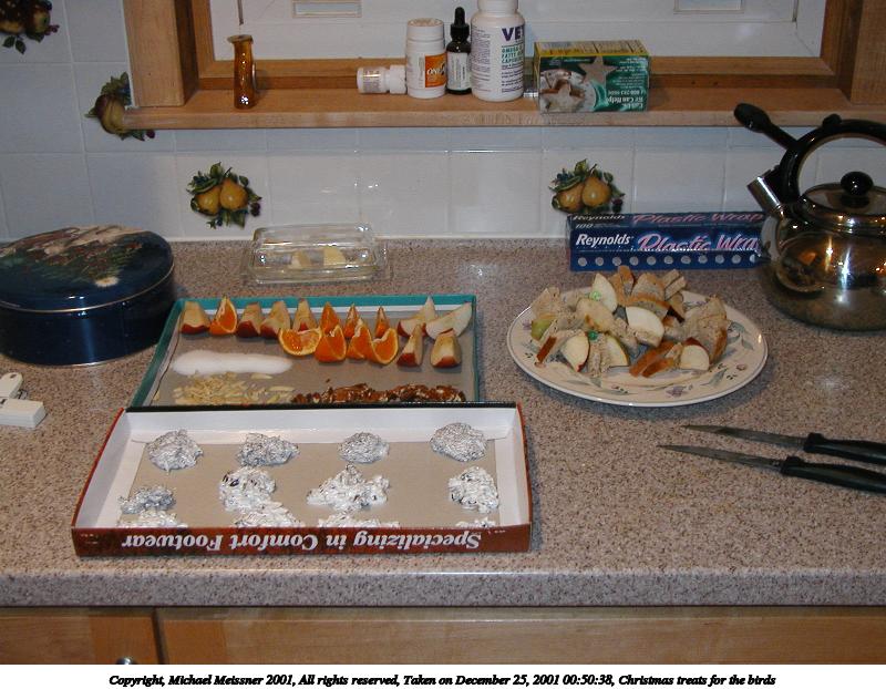 Picture #10: Christmas treats for the birds #2 800x622, 100,027 bytes (98K), (html file) Copyright, Michael Meissner 2001, All rights reserved Olympus D-510Z camera f/3.4, ISO 200, flash, 1/40 sec, 7.5mm, auto mode, HQ, matrix metering 35mm equivalent focal length 49.0mm Taken by Michael Meissner on December 25, 2001 00:50:43 Last modified on June 06, 2002 at 22:39 |