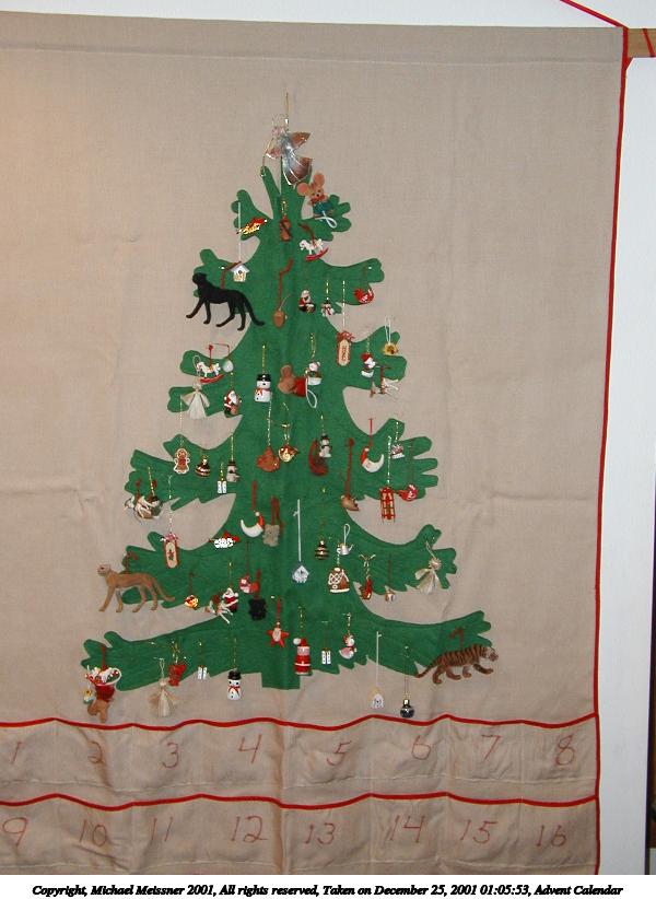 Picture #1: Advent Calendar 600x822, 68,732 bytes (68K), (html file) Copyright, Michael Meissner 2001, All rights reserved Olympus D-510Z camera f/3.4, ISO 200, flash, 1/40 sec, 7.7mm, auto mode, HQ, matrix metering 35mm equivalent focal length 50.0mm Taken by Michael Meissner on December 25, 2001 01:05:53 Last modified on June 06, 2002 at 22:39 |