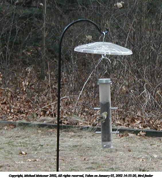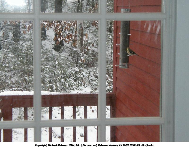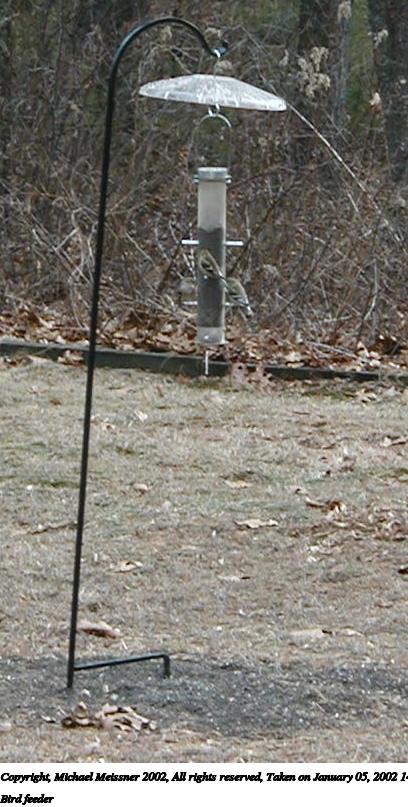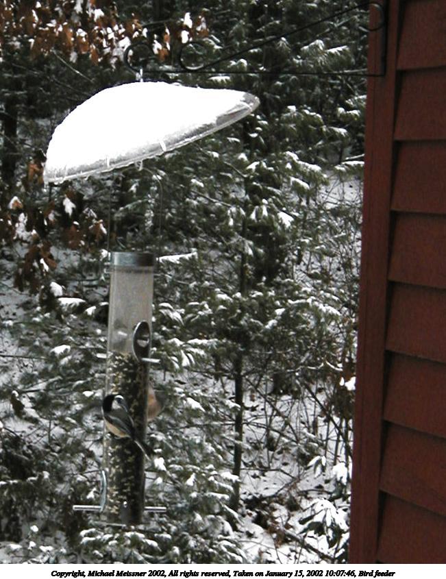 Picture #9: Bird feeder #9 651x845, 116,937 bytes (115K), (html file) Copyright, Michael Meissner 2002, All rights reserved Olympus D-510Z camera f/4.4, ISO 100, 1/200 sec, 15.7mm, auto mode, HQ, matrix metering, bias -1.0 35mm equivalent focal length 102.0mm Taken by Michael Meissner on January 15, 2002 10:07:46 Last modified on June 06, 2002 at 22:39 |