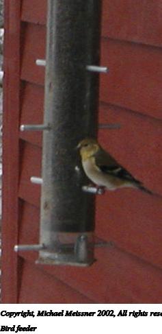 Picture #3: Bird feeder #3 440x996, 98,242 bytes (96K), (html file) Copyright, Michael Meissner 2002, All rights reserved Olympus D-510Z camera f/4.4, ISO 175, 1/100 sec, 15.7mm, auto mode, HQ, spot metering 35mm equivalent focal length 102.0mm Taken by Michael Meissner on January 05, 2002 14:32:46 Last modified on June 06, 2002 at 22:39 |