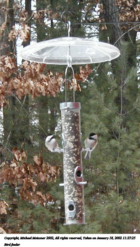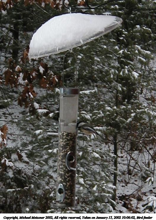 Picture #10: Bird feeder #10 597x814, 95,217 bytes (93K), (html file) Copyright, Michael Meissner 2002, All rights reserved Olympus D-510Z camera f/4.4, ISO 138, 1/100 sec, 15.7mm, auto mode, SHQ, spot metering 35mm equivalent focal length 102.0mm Taken by Michael Meissner on January 18, 2002 11:22:25 Last modified on June 06, 2002 at 22:39 |